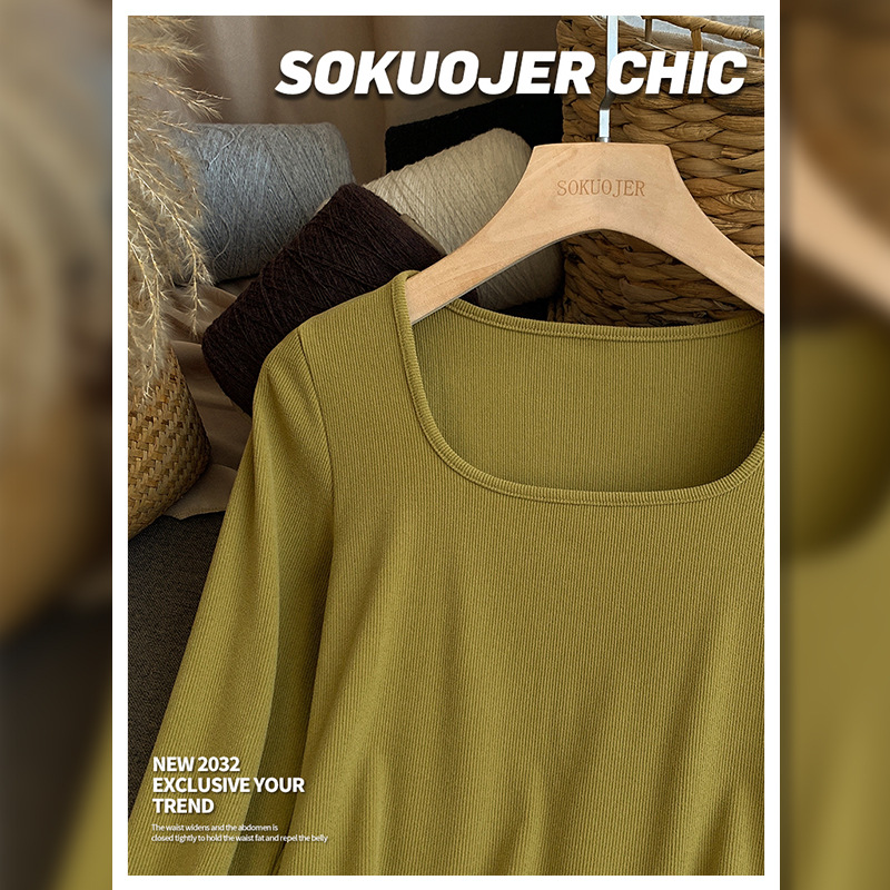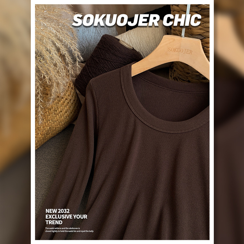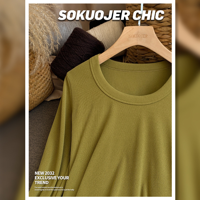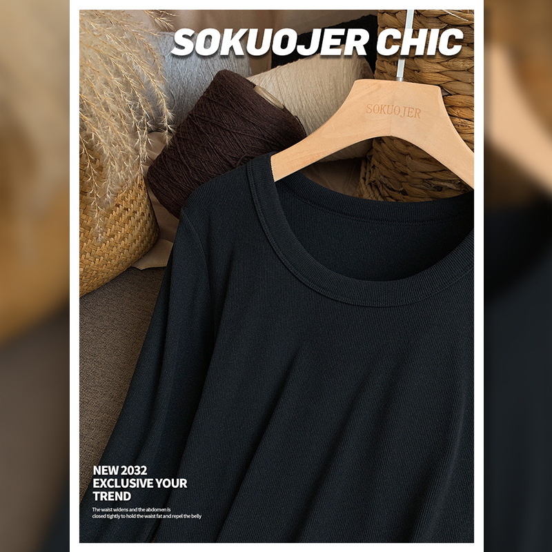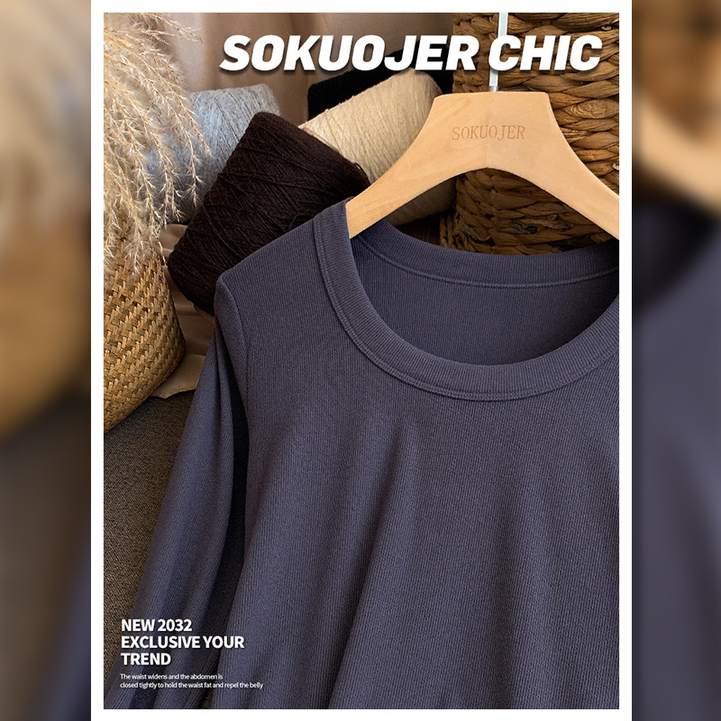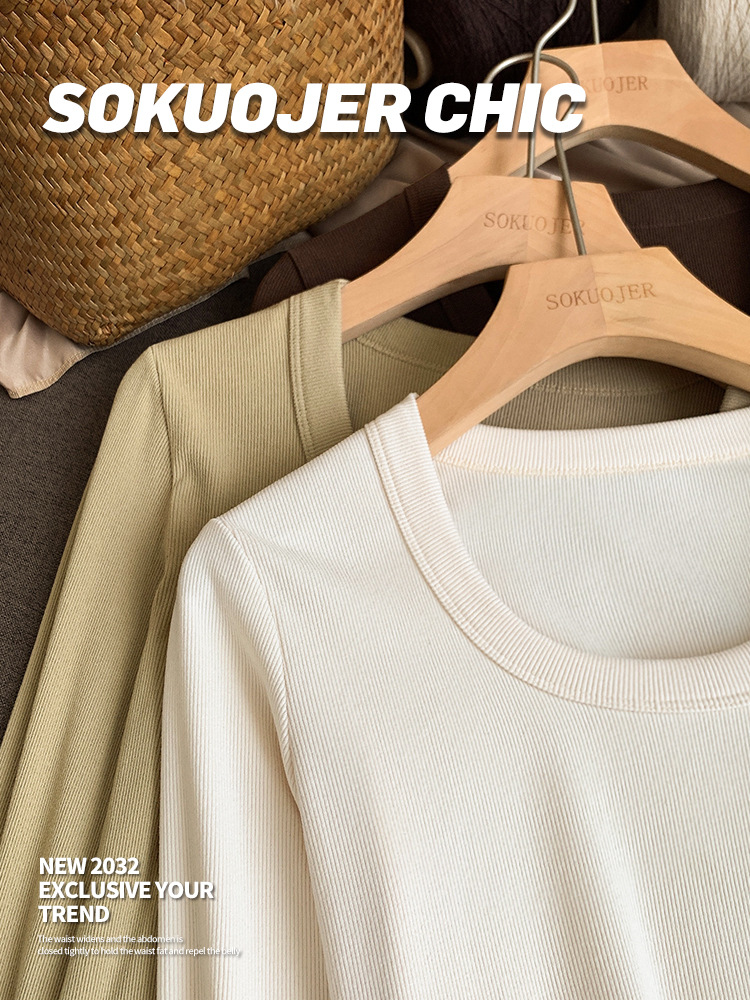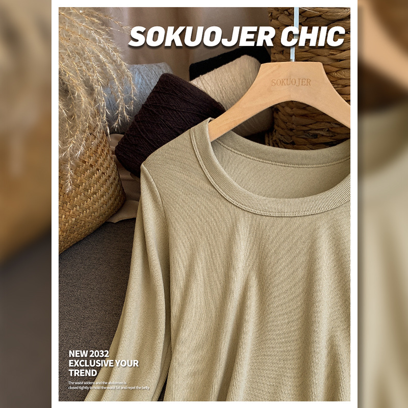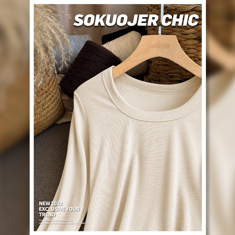 高品质螺纹打底衫女秋冬双面磨毛内搭高弹修身显瘦保暖长袖肌底衣
