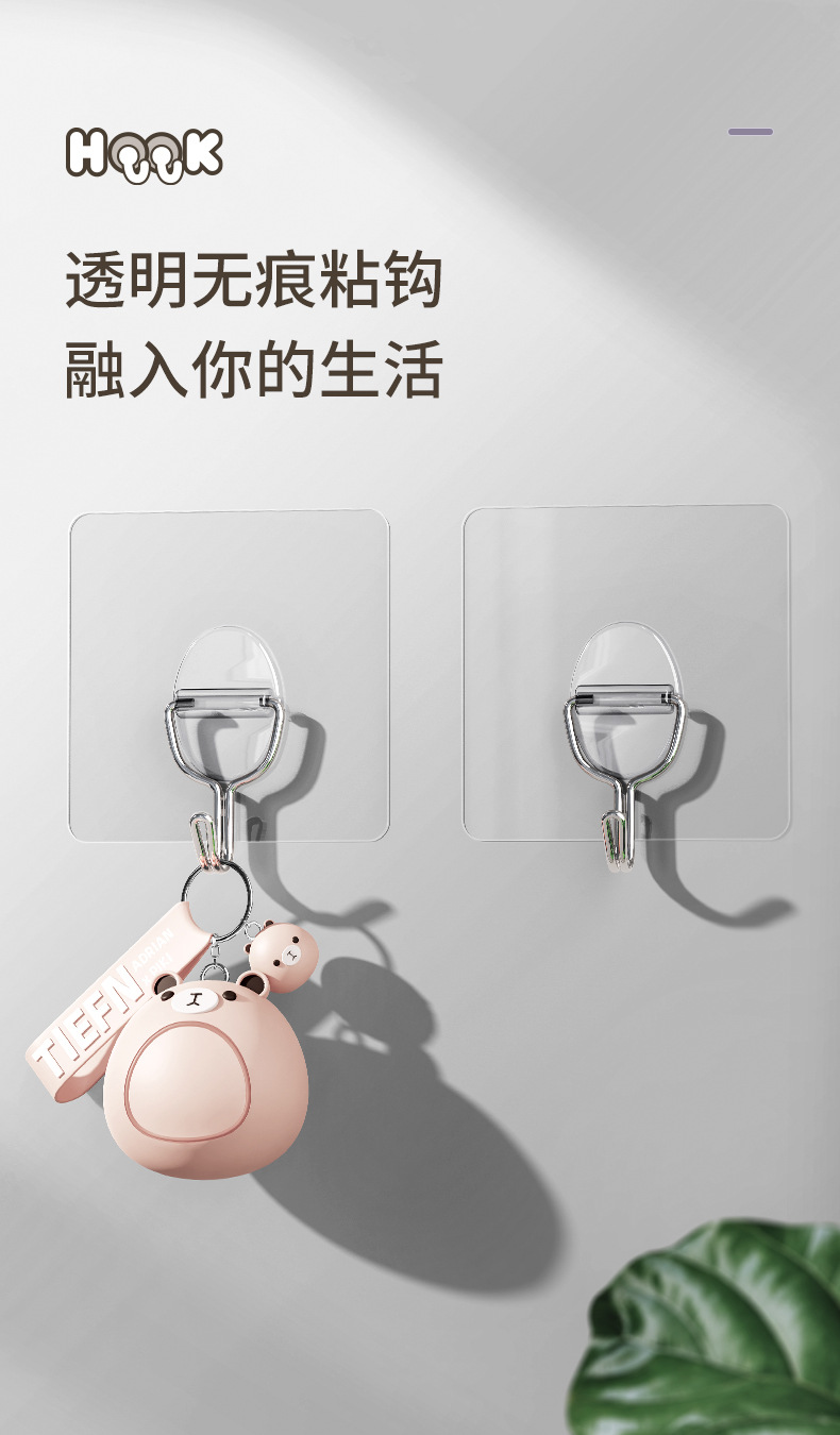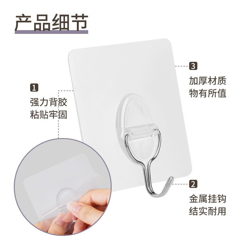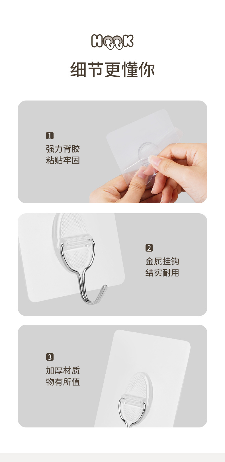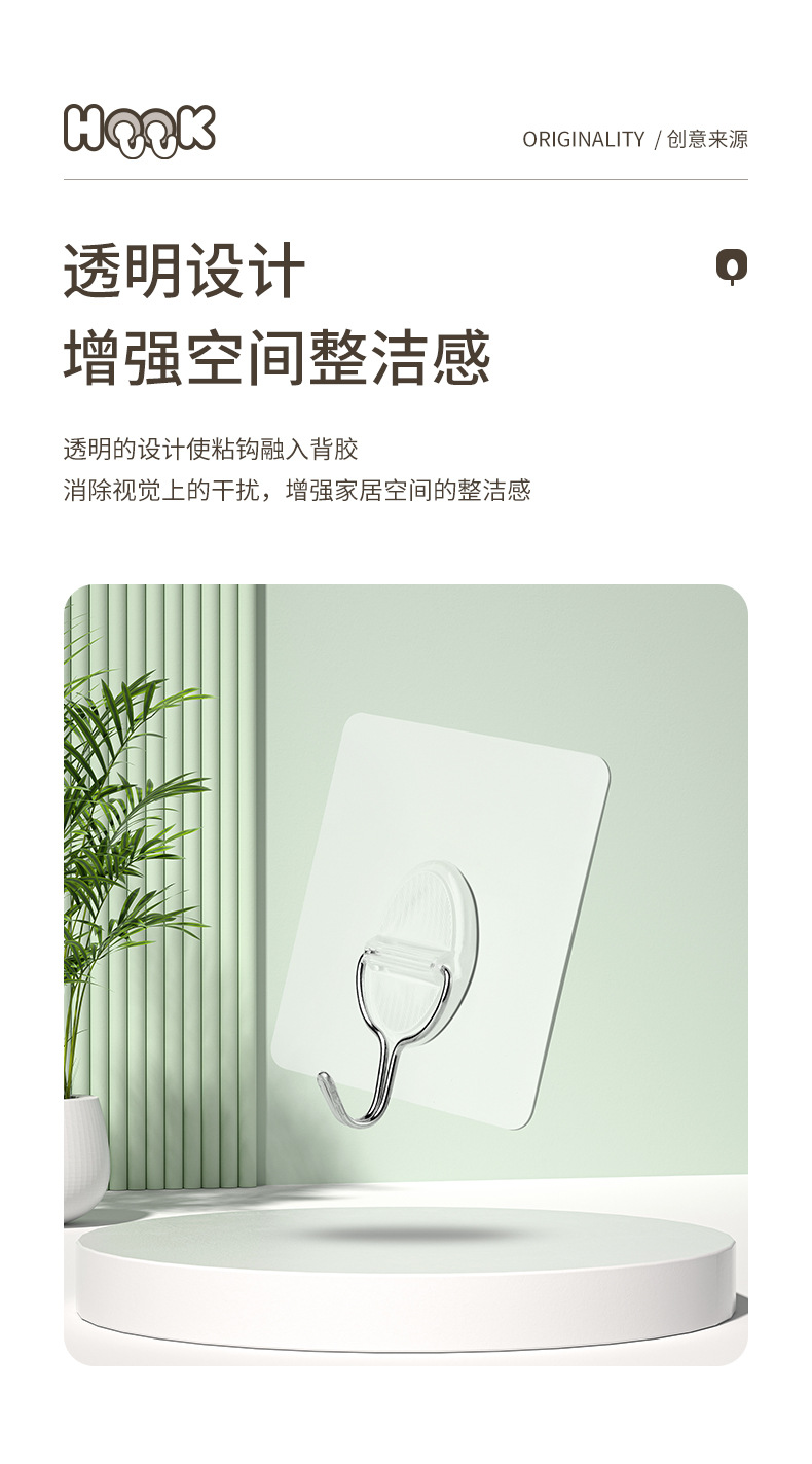 浴室挂钩免打孔透明粘钩 透明无痕强力粘胶挂钩门后超市钩子