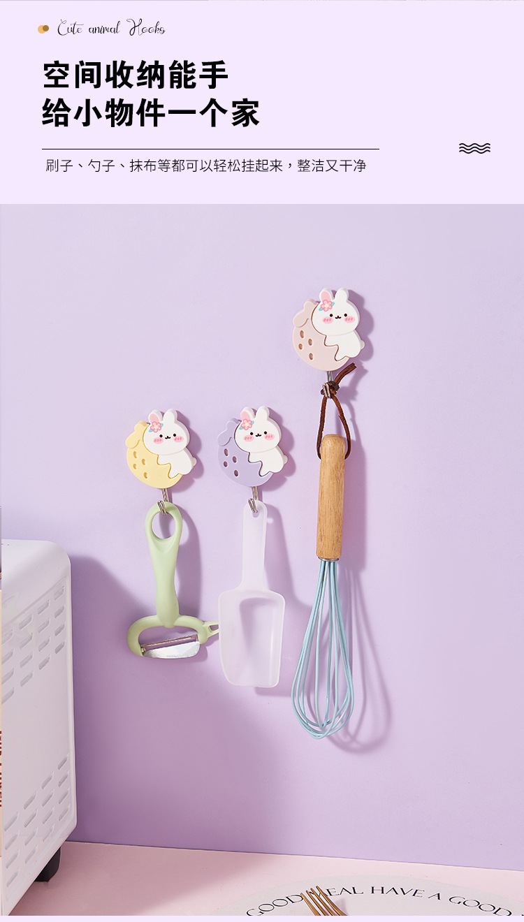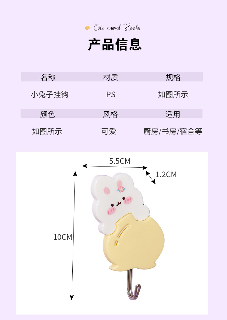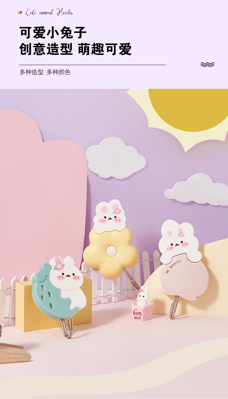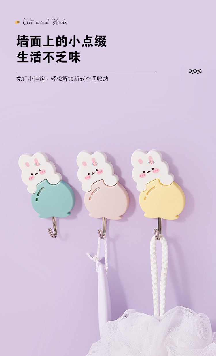 新款可爱风兔子挂钩粘胶无痕墙壁挂墙卡通萌趣家用厨房免打孔粘钩