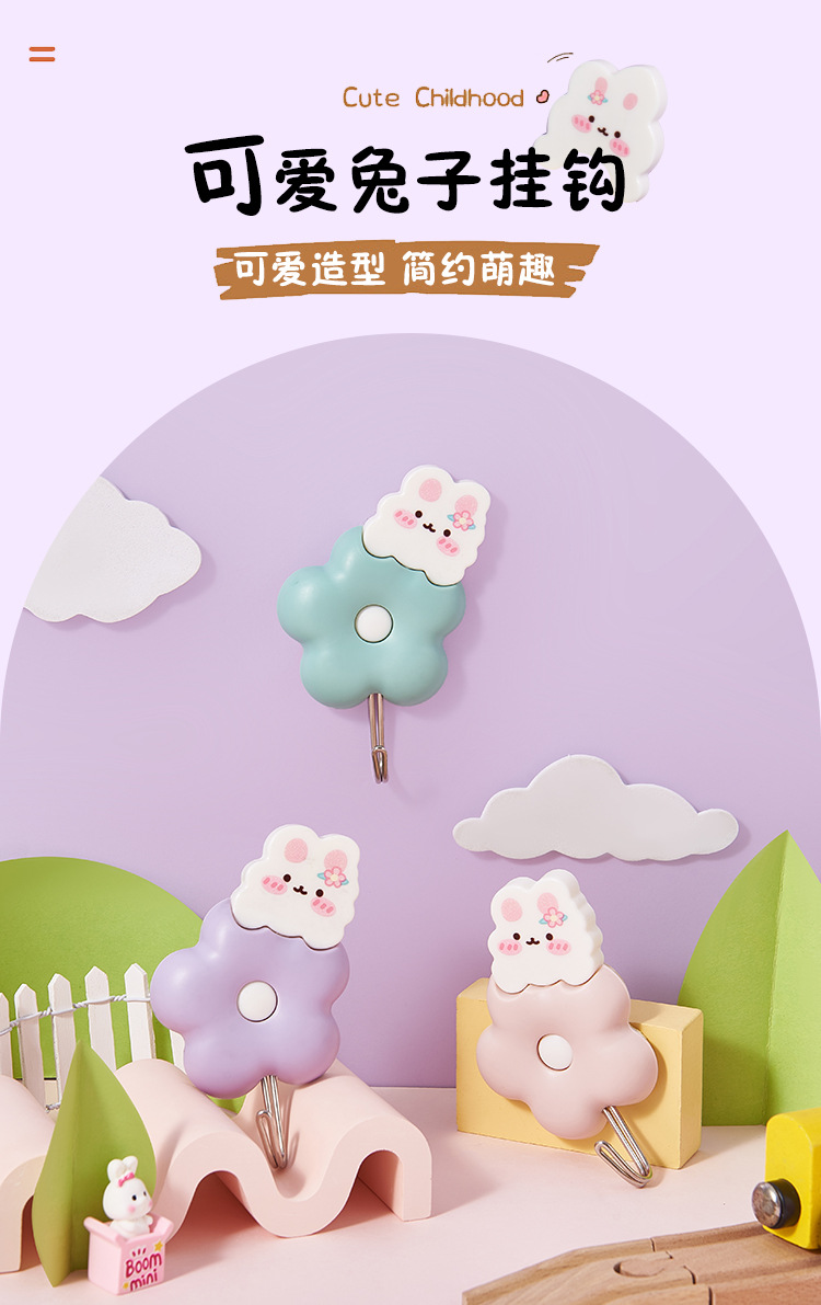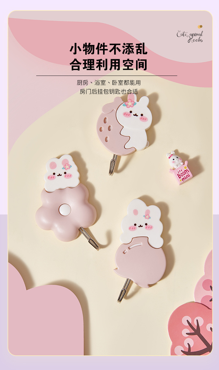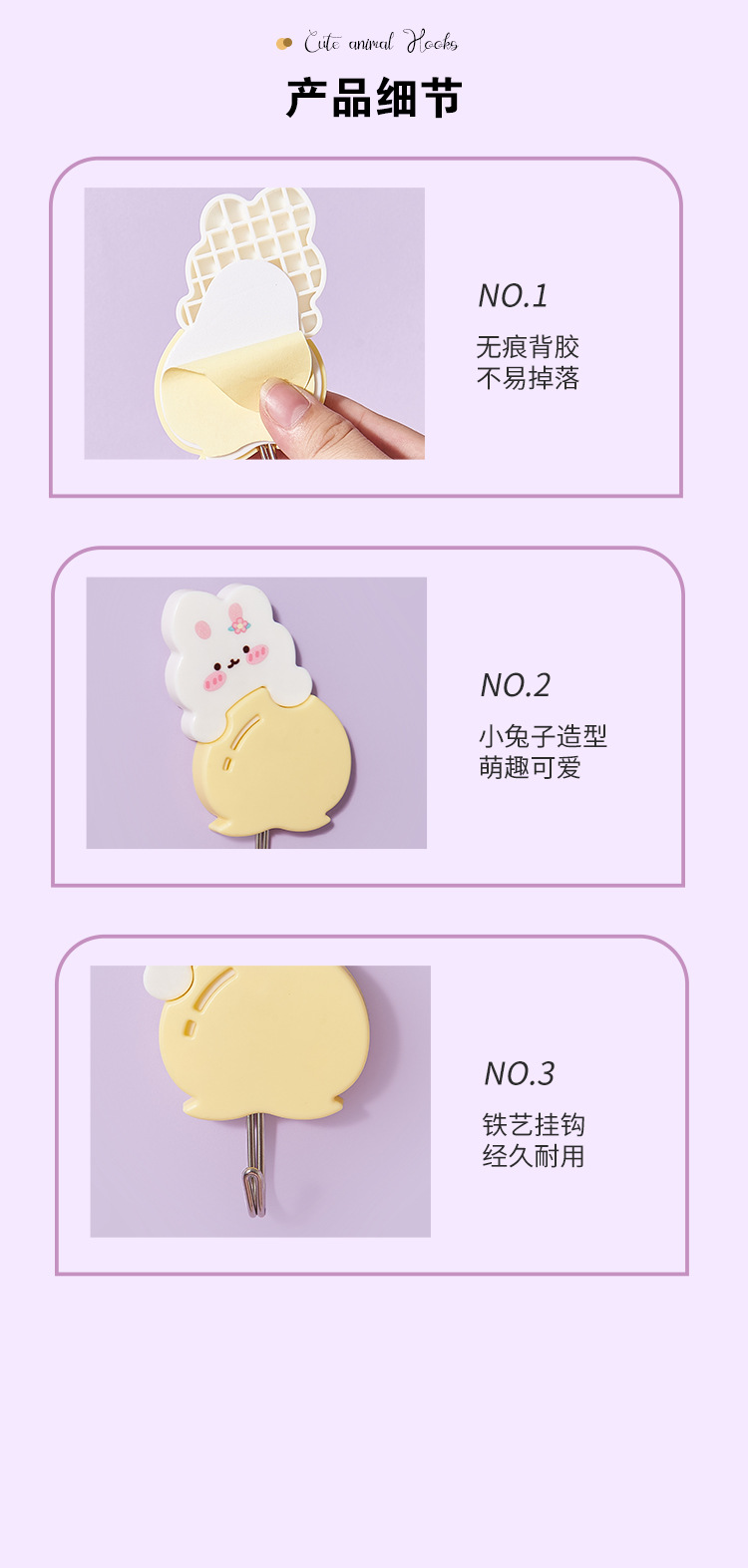 新款可爱风兔子挂钩粘胶无痕墙壁挂墙卡通萌趣家用厨房免打孔粘钩