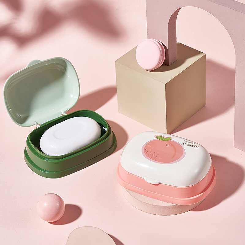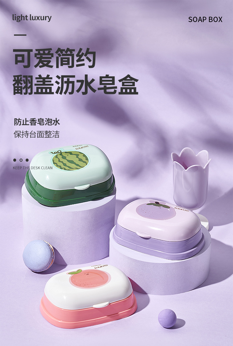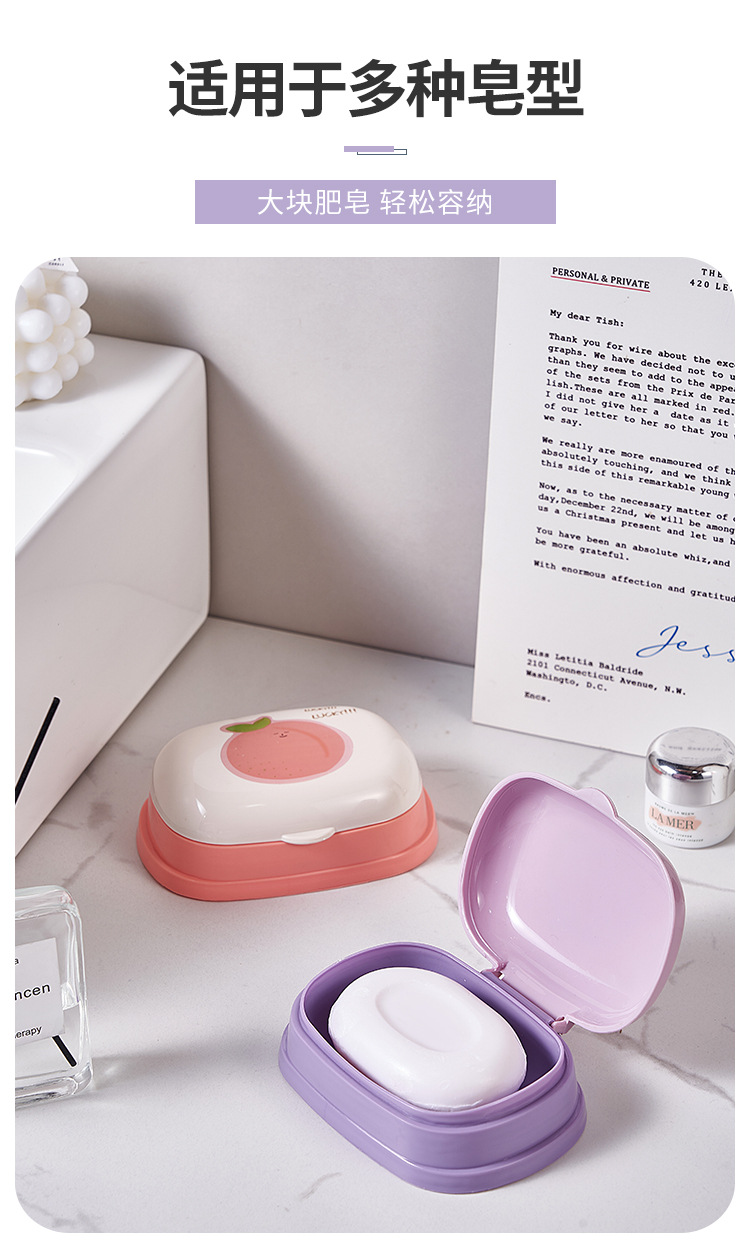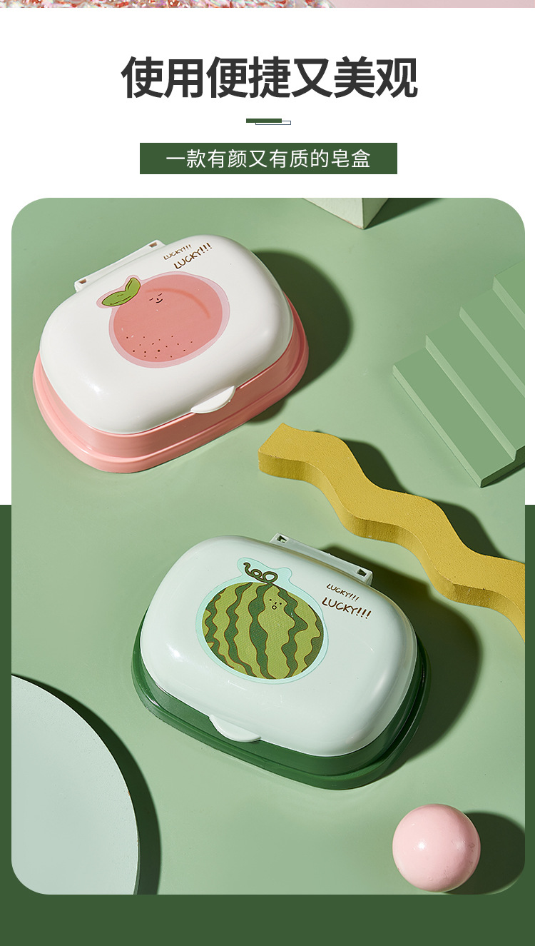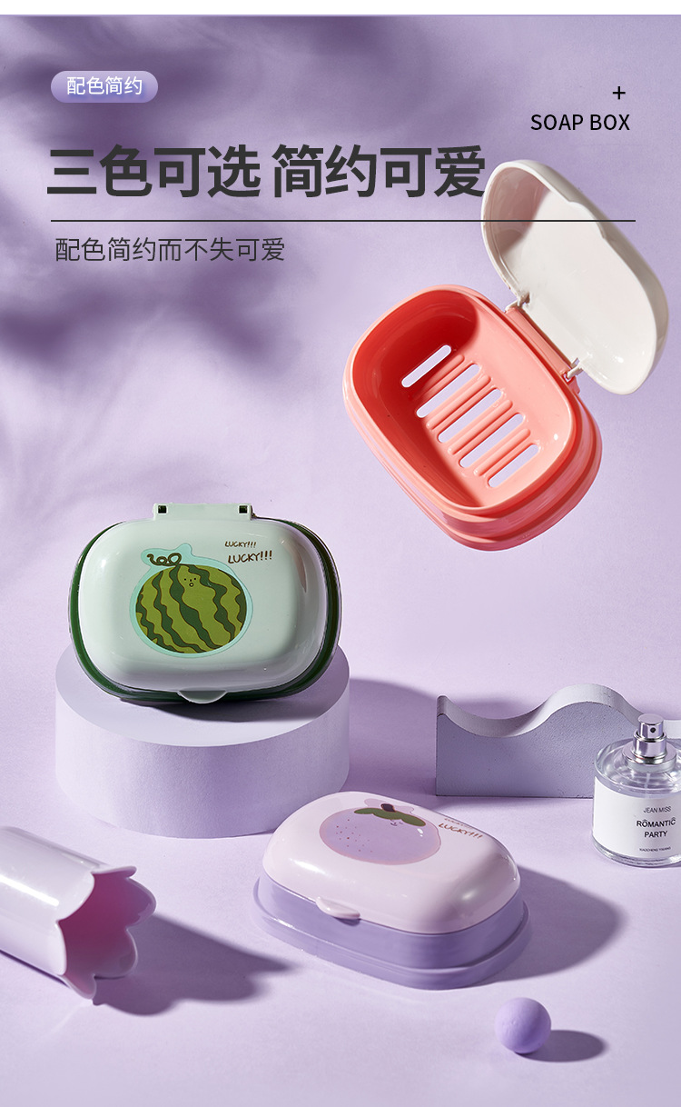 新款北欧风家用浴室香皂盒可沥水香皂架塑料大号带盖彩色水果肥皂
