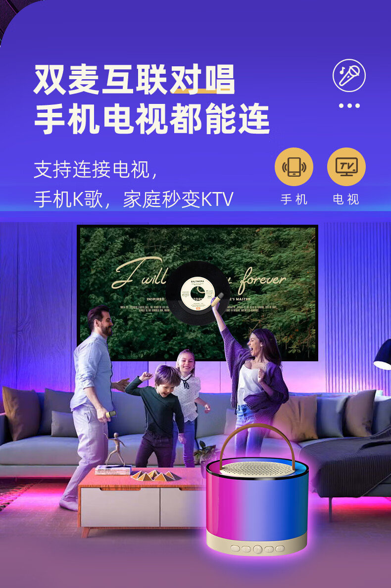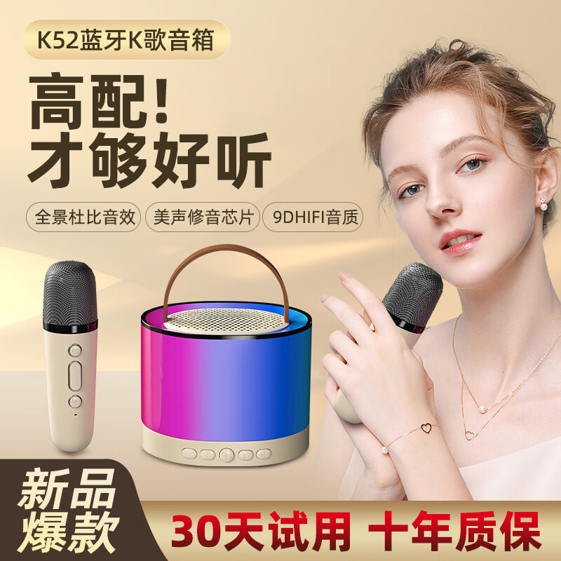K52双麦蓝牙K歌话筒家用手机家庭KTV一体蓝牙无线麦克风 话筒音响