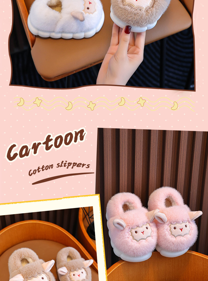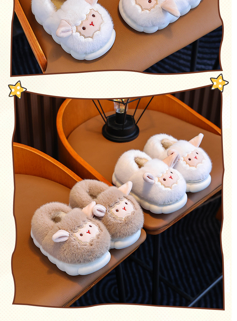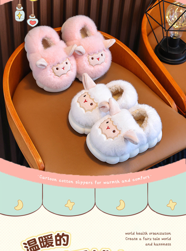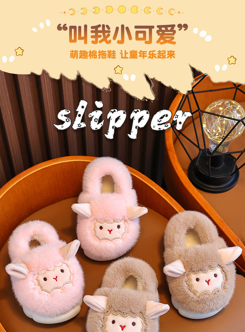儿童包跟小羊棉鞋秋冬季男女童加绒新款防滑居家室内外穿保暖棉鞋