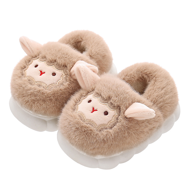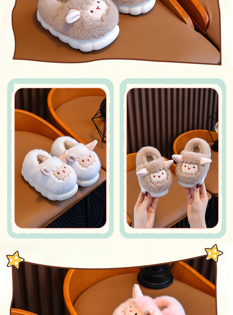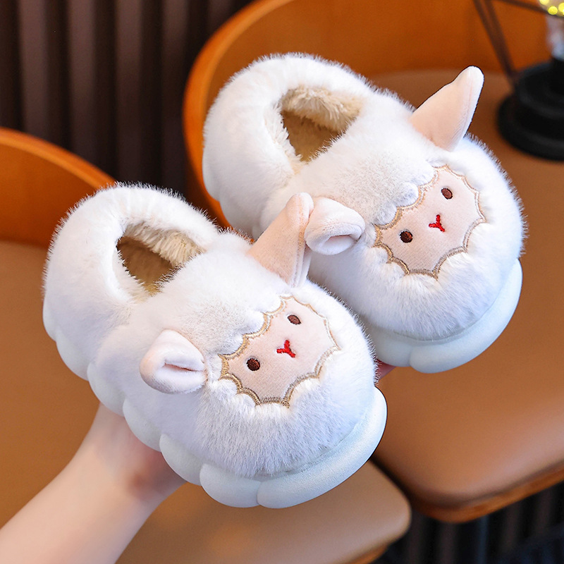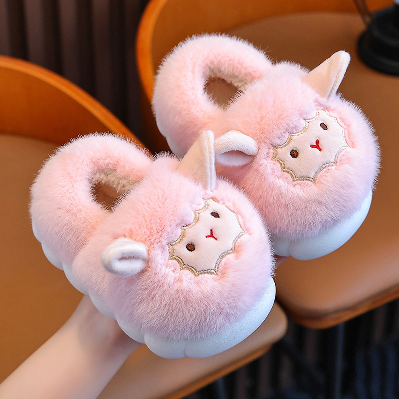 儿童包跟小羊棉鞋秋冬季男女童加绒新款防滑居家室内外穿保暖棉鞋