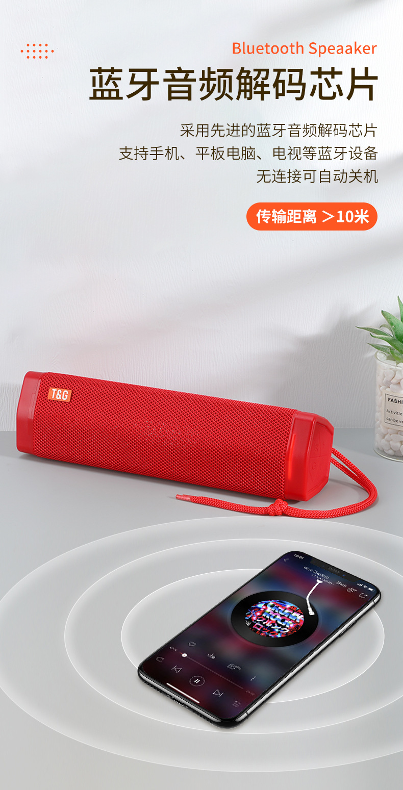 TG361跨境长条家用桌面蓝牙音箱户外便携插卡U盘TWS低音炮speaker