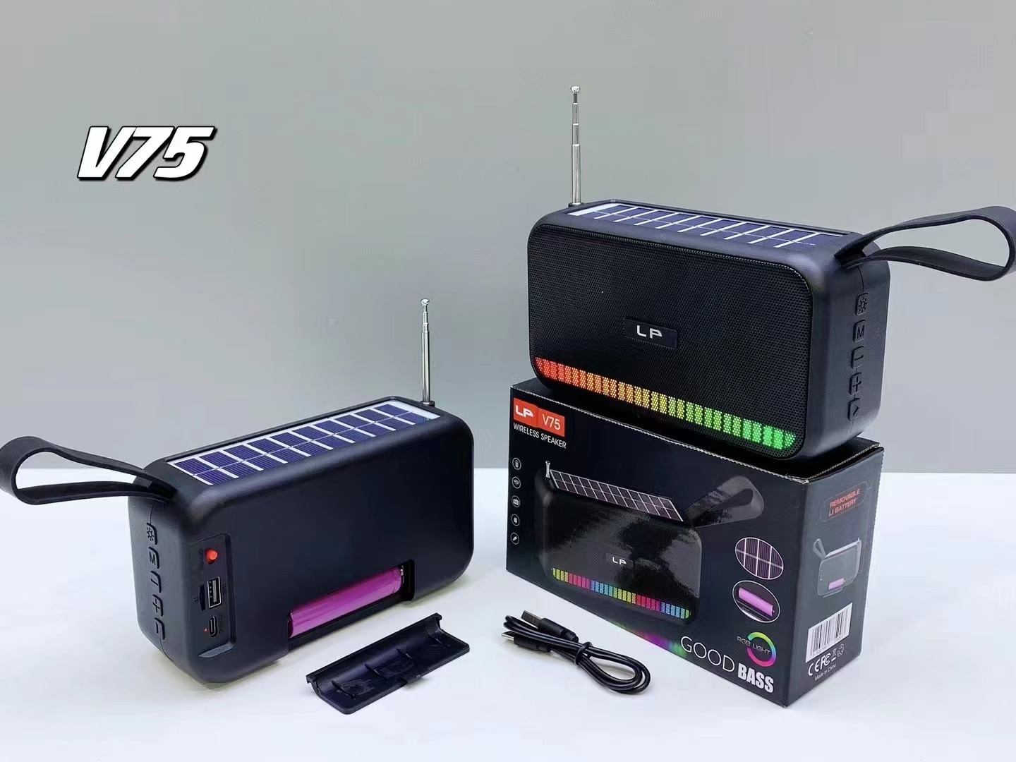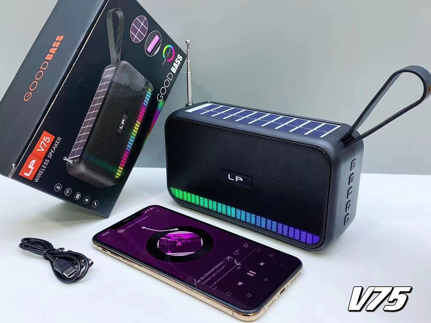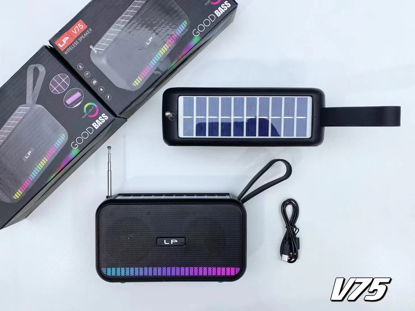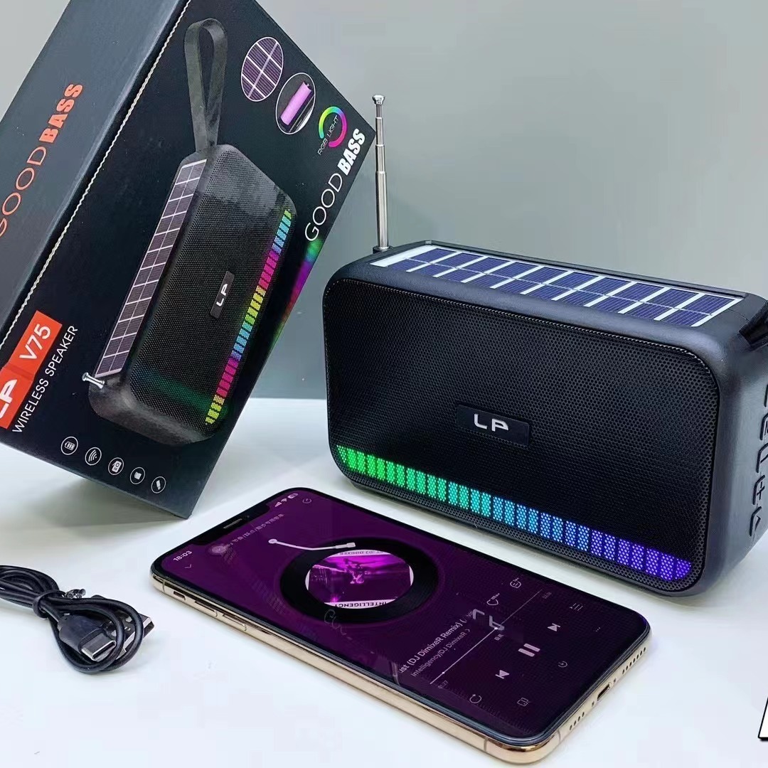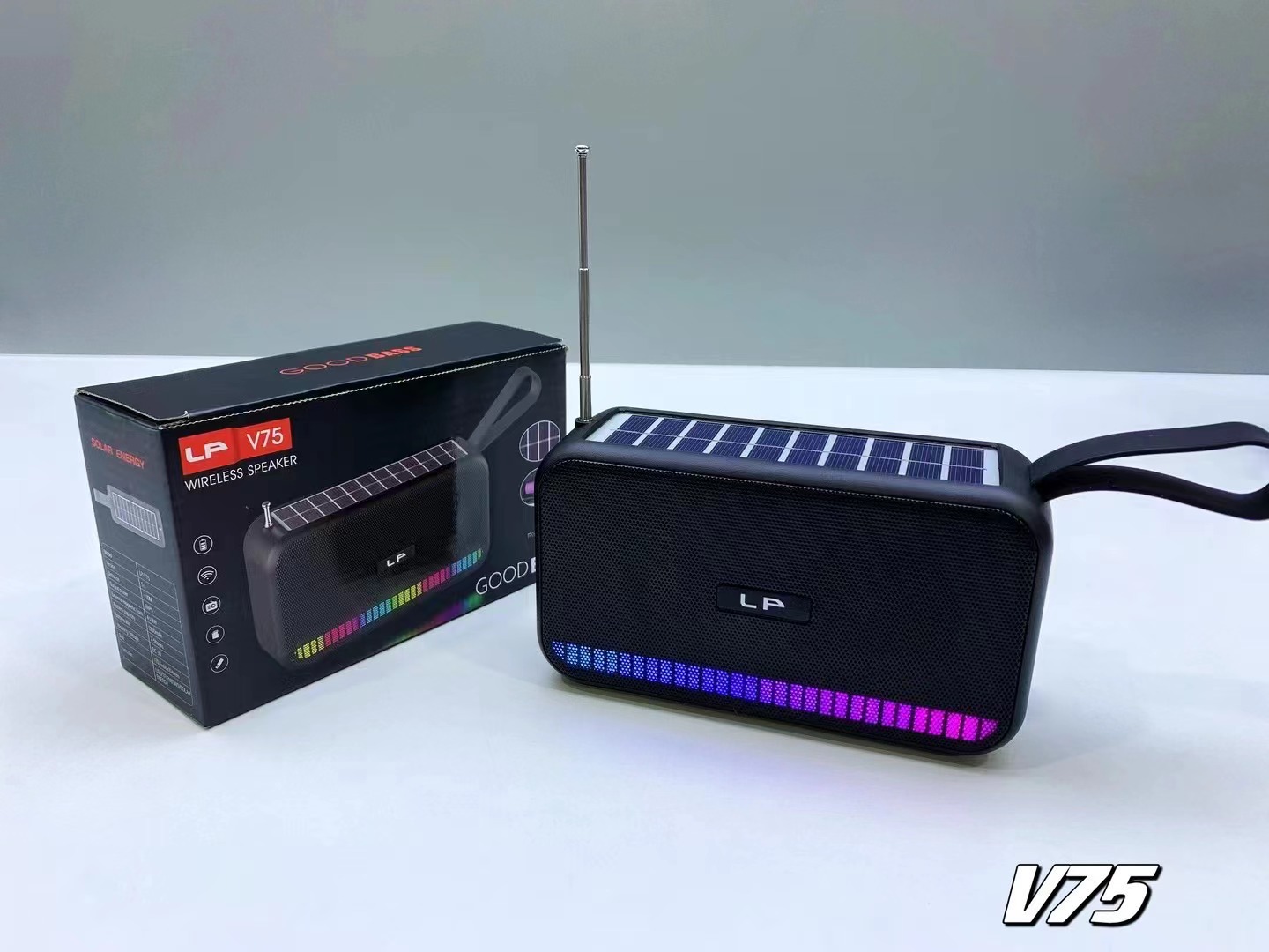 新款 LP-V75手提太阳能蓝牙音箱RGB彩灯户外便携外置FM天线收音机