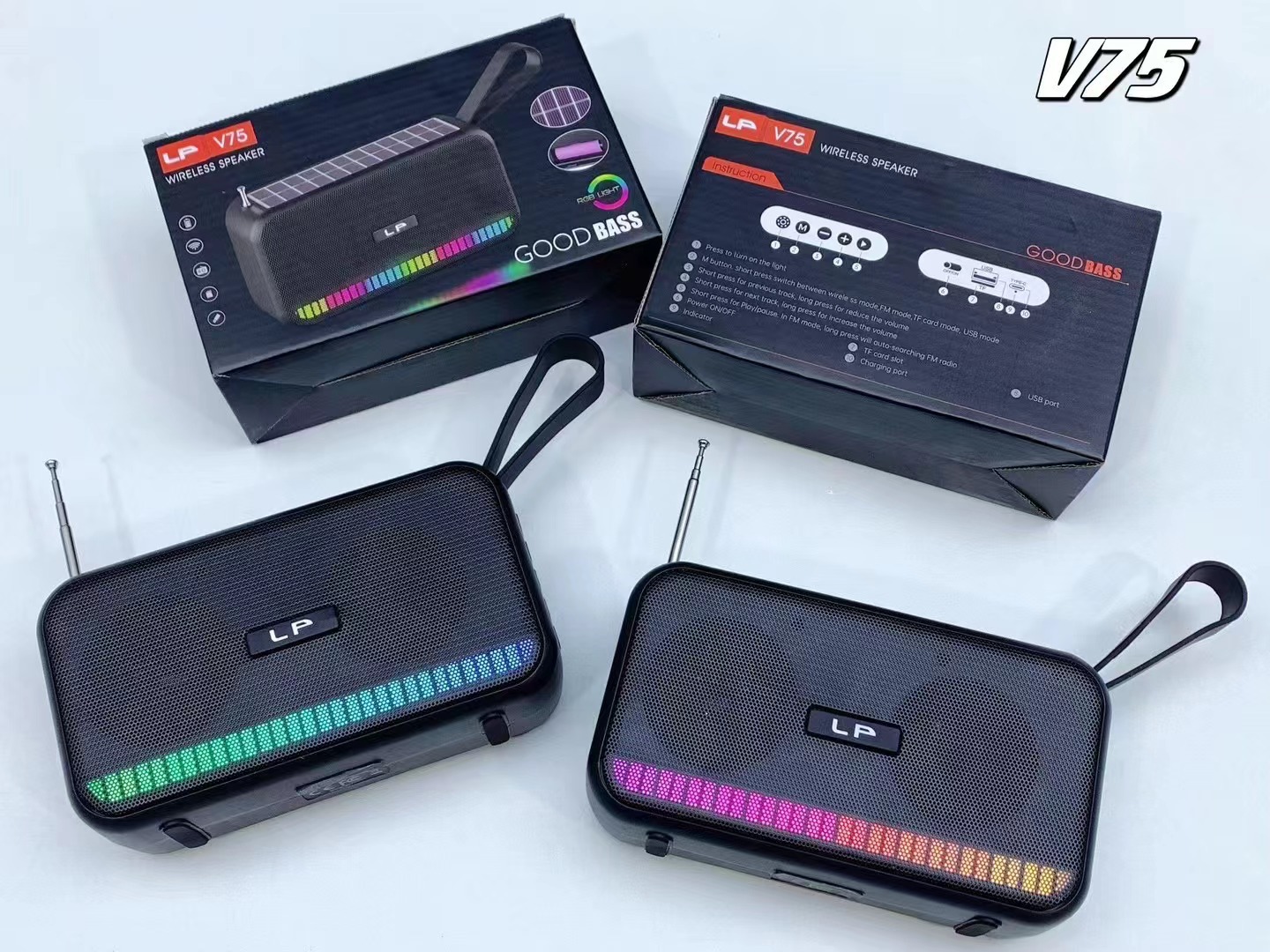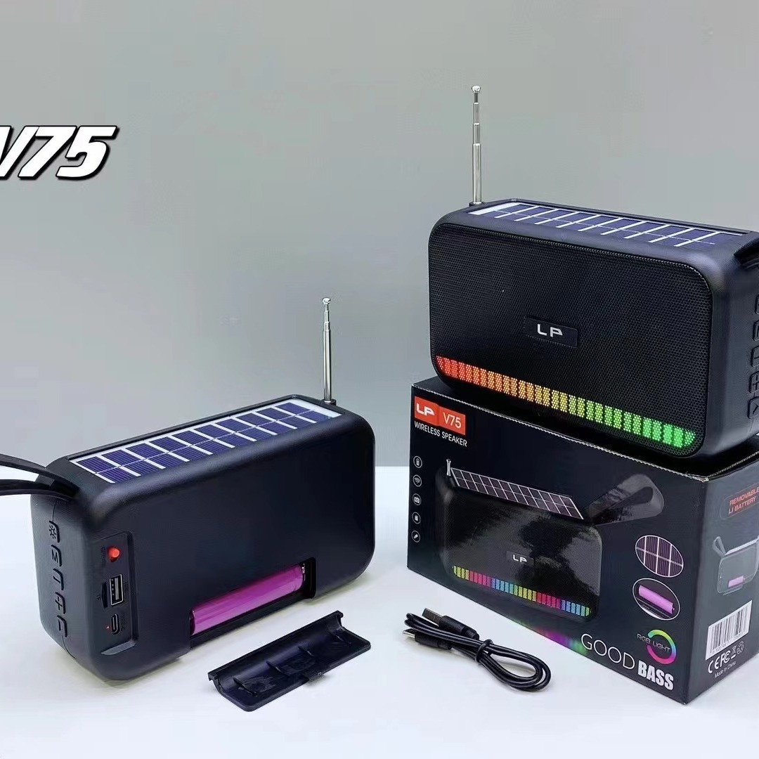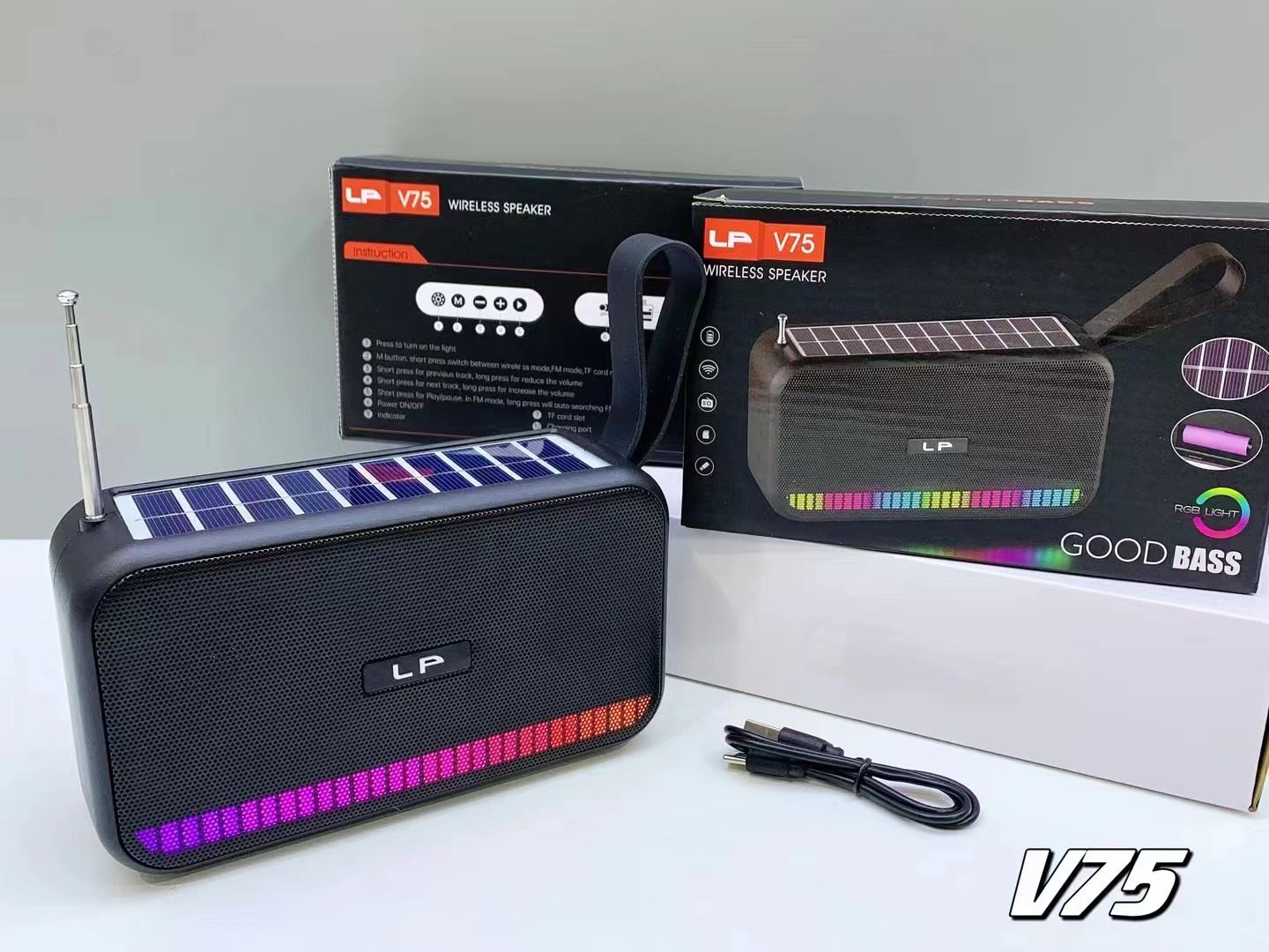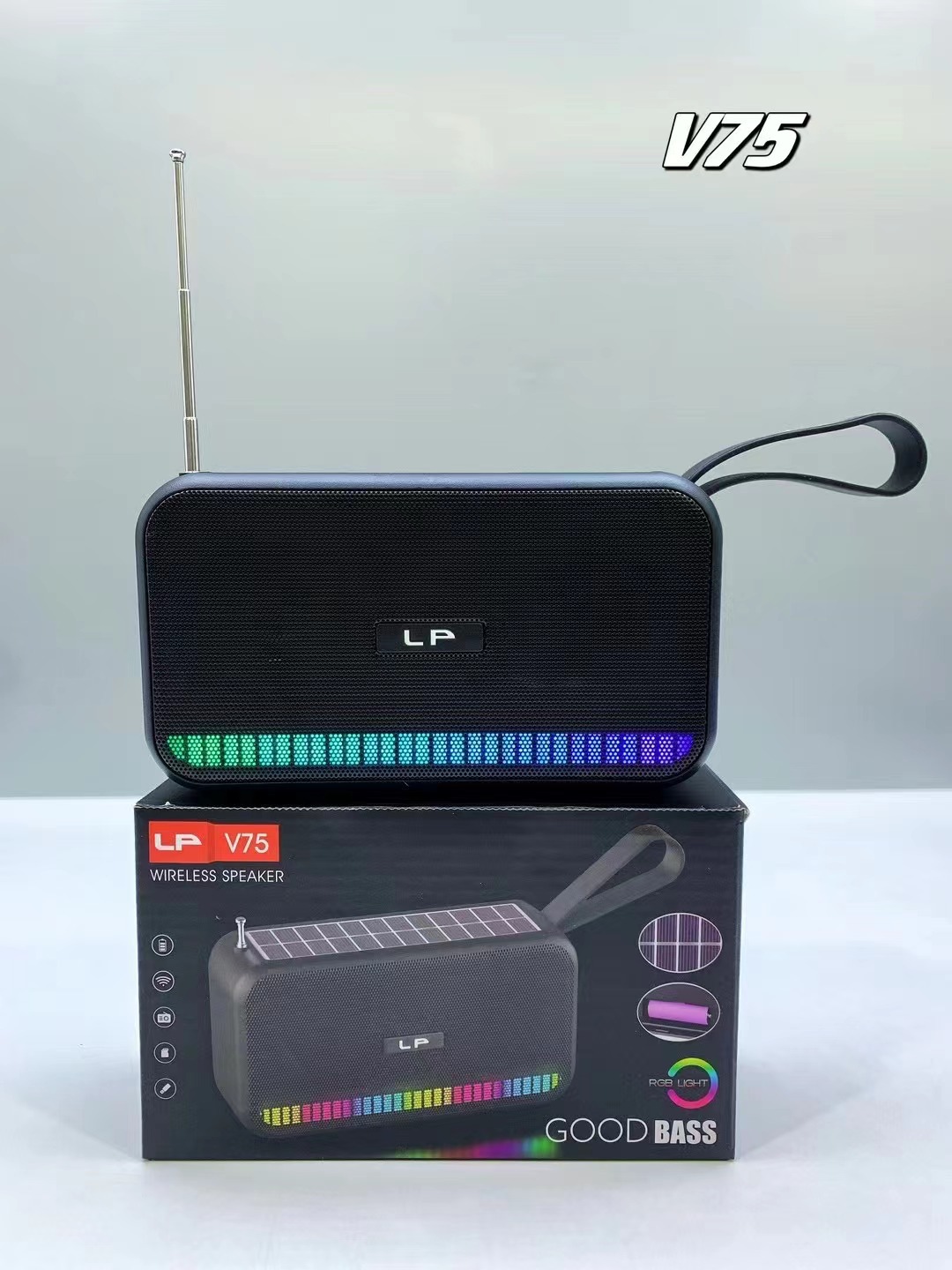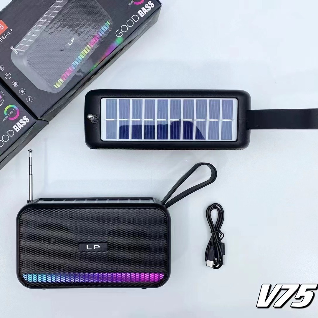 新款 LP-V75手提太阳能蓝牙音箱RGB彩灯户外便携外置FM天线收音机