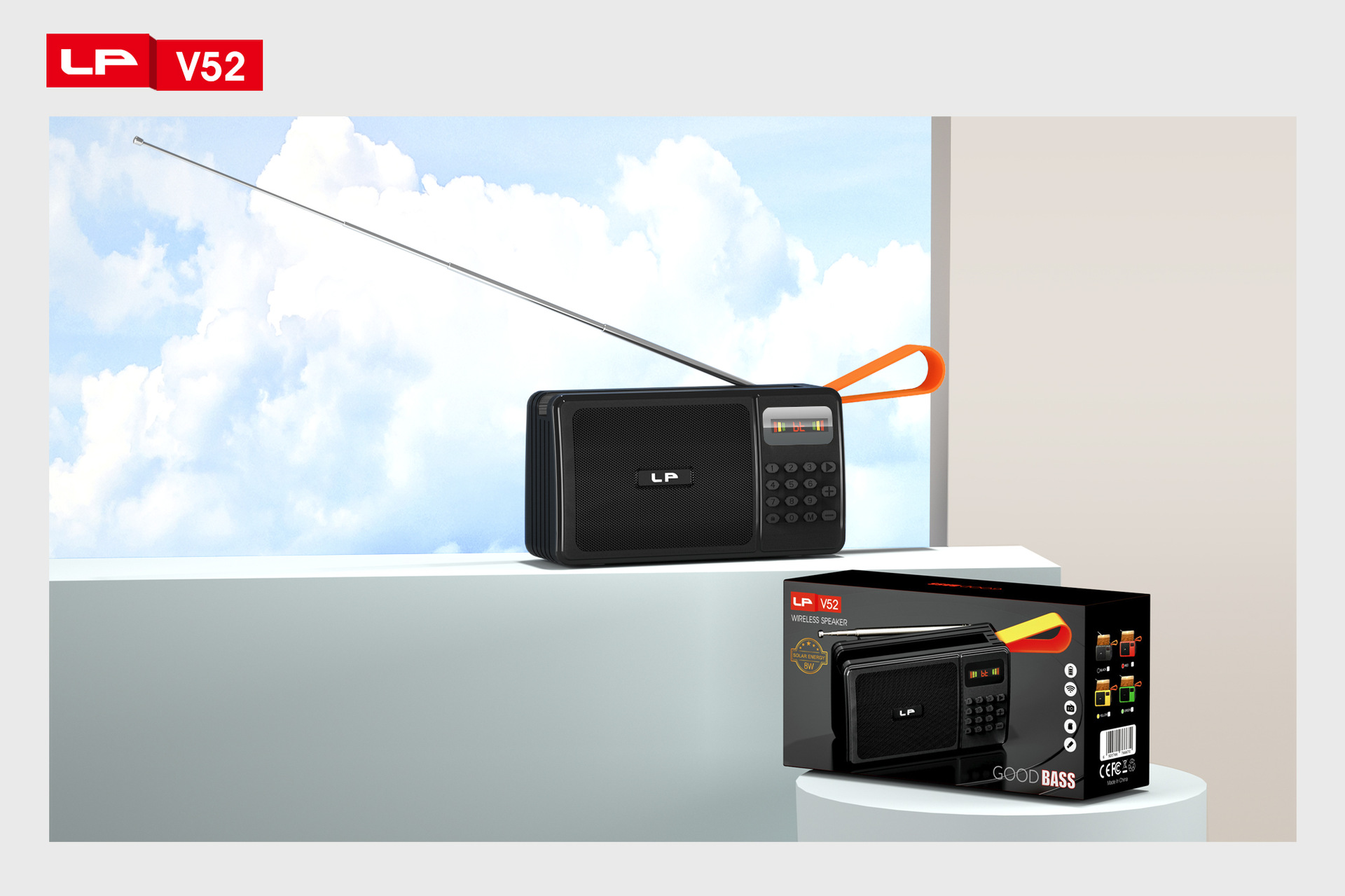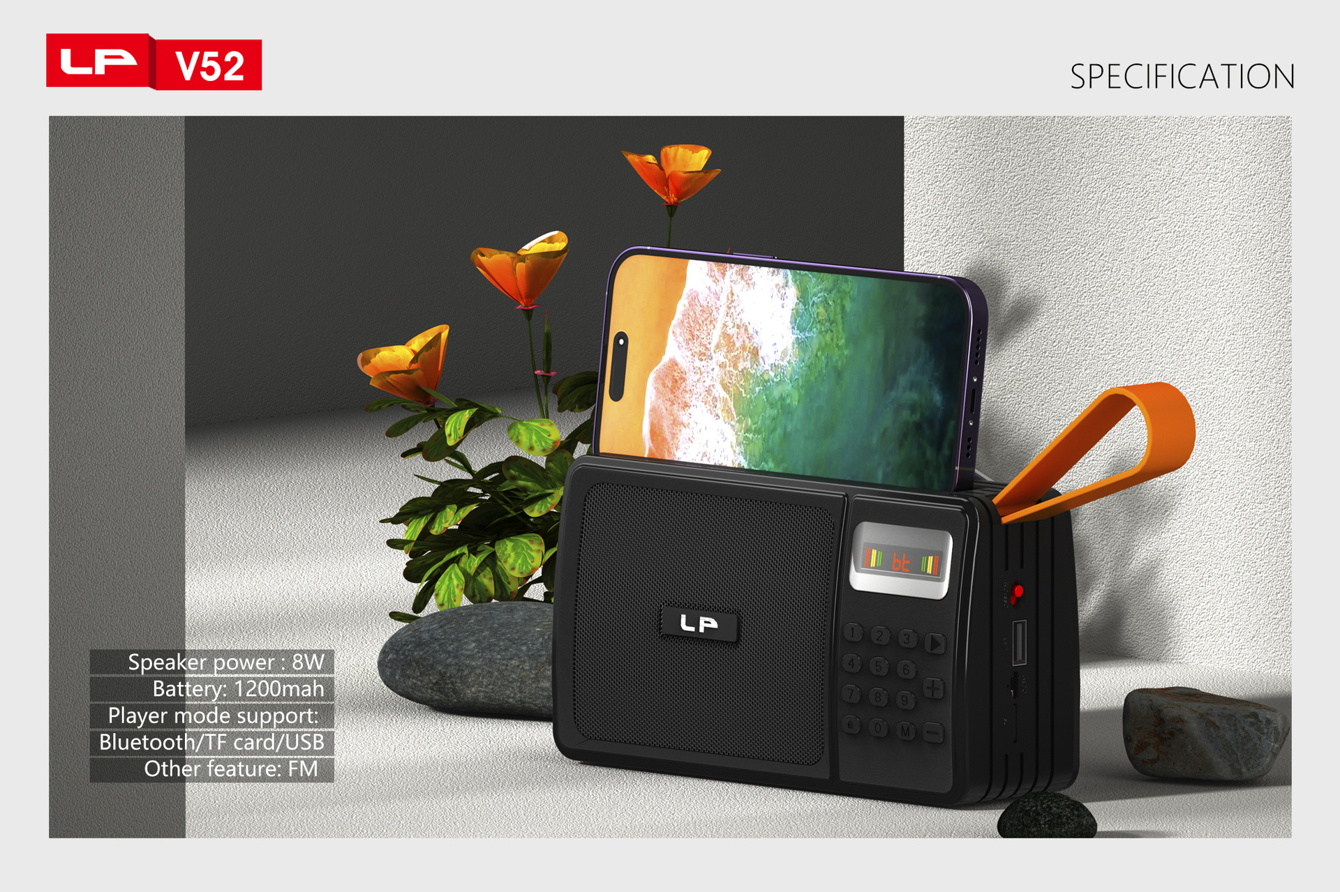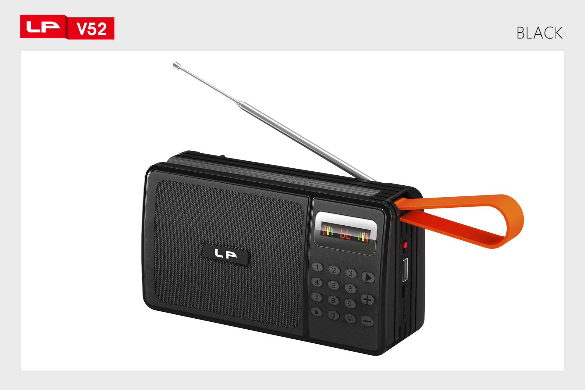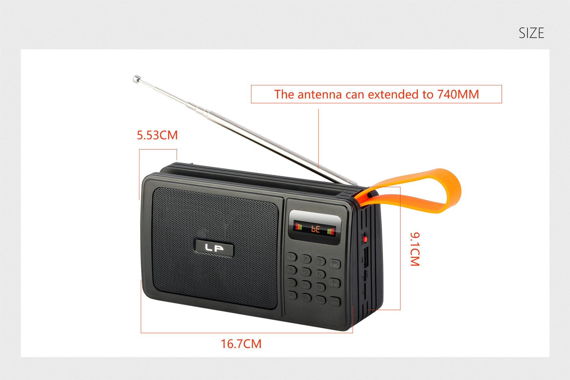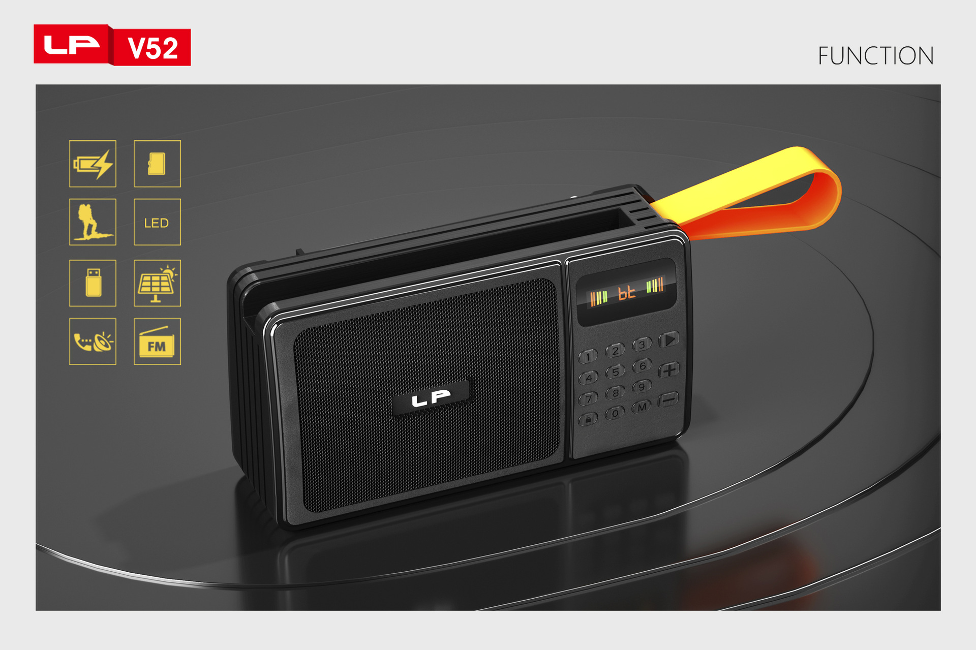 LP-V52方形收音机蓝牙支架太阳能充电长天线带屏按键调皮mini插卡