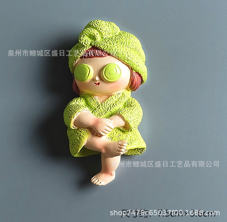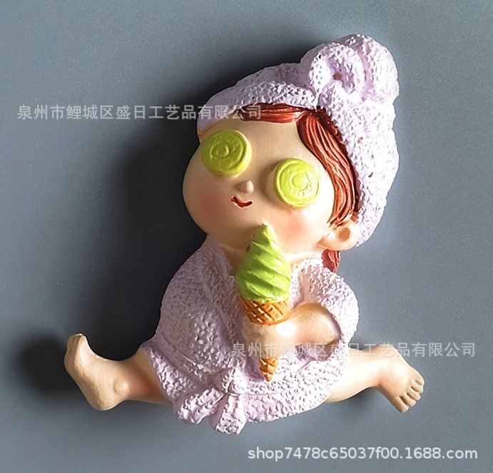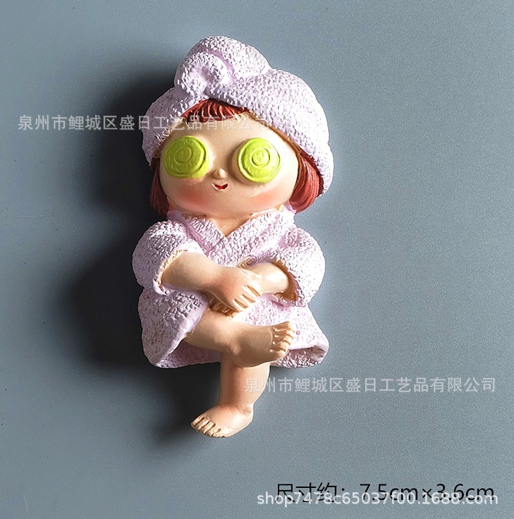 版权穿睡袍小妞树脂冰箱贴手机壳开关贴气车出风口家居配件厂家定