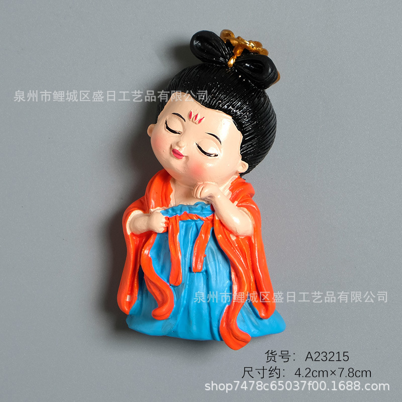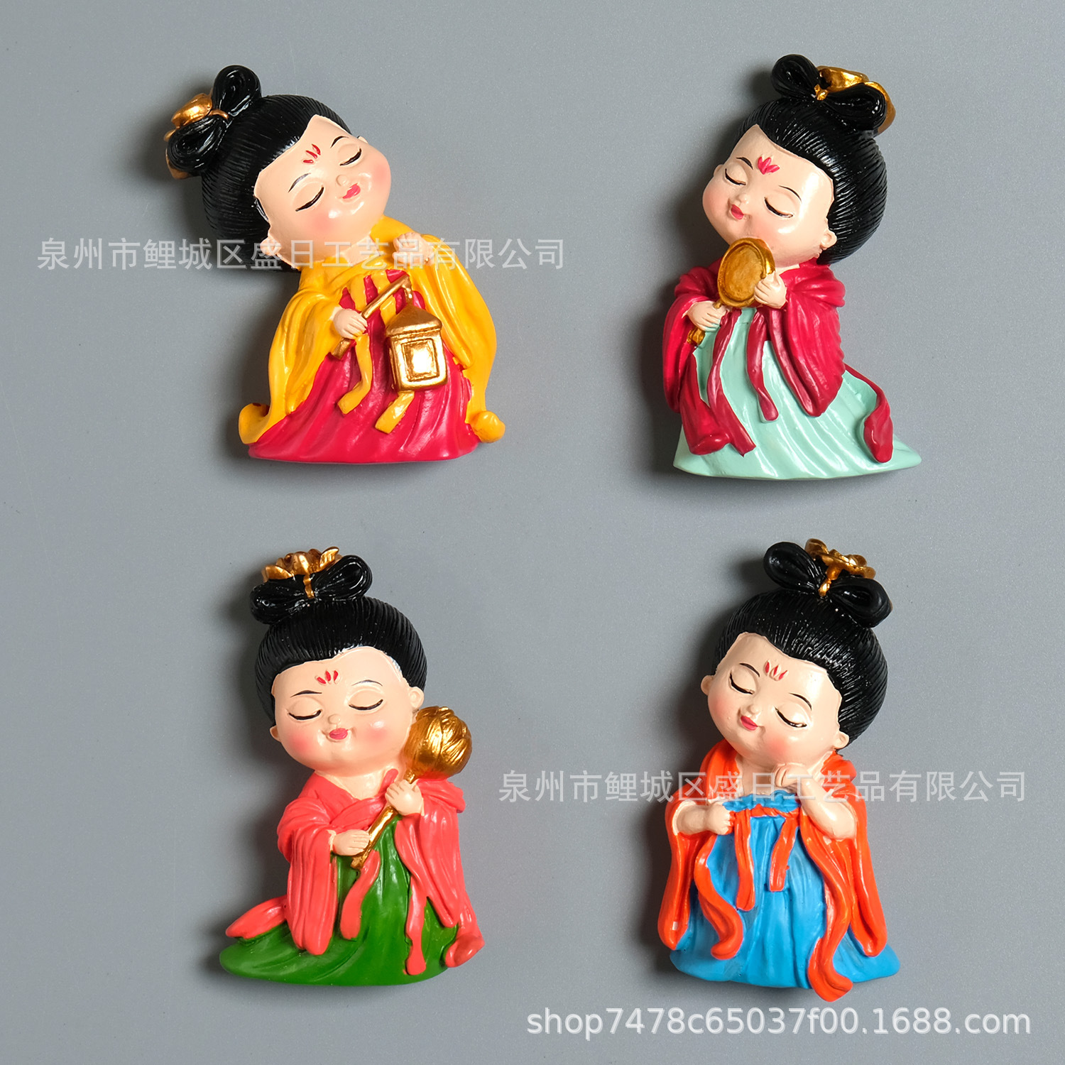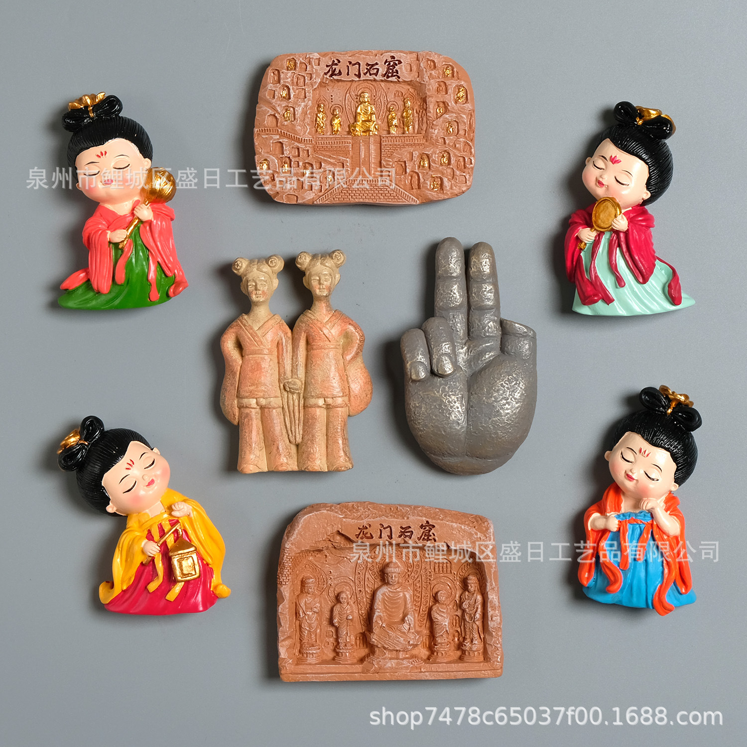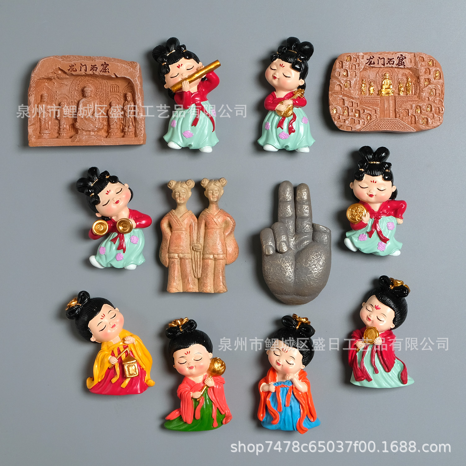 文创 3D唐朝仕女树脂冰箱贴姊妹俑佛手洛阳旅游 纪念品 生 产厂家