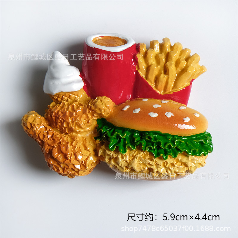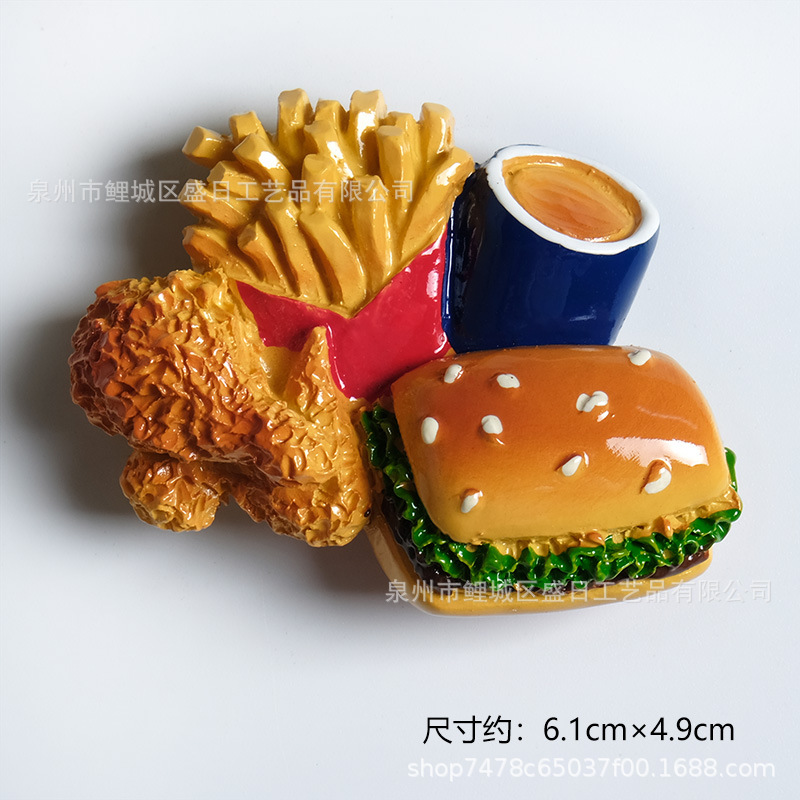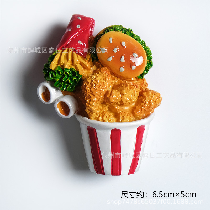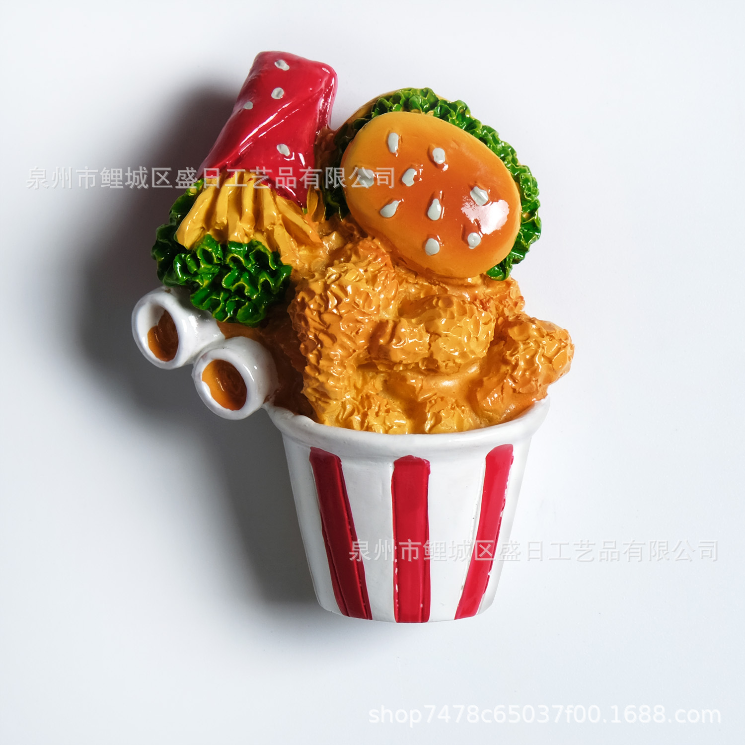 新款 炸鸡汉堡鸡腿可乐美食套餐组合树脂冰箱贴家居装饰贴件