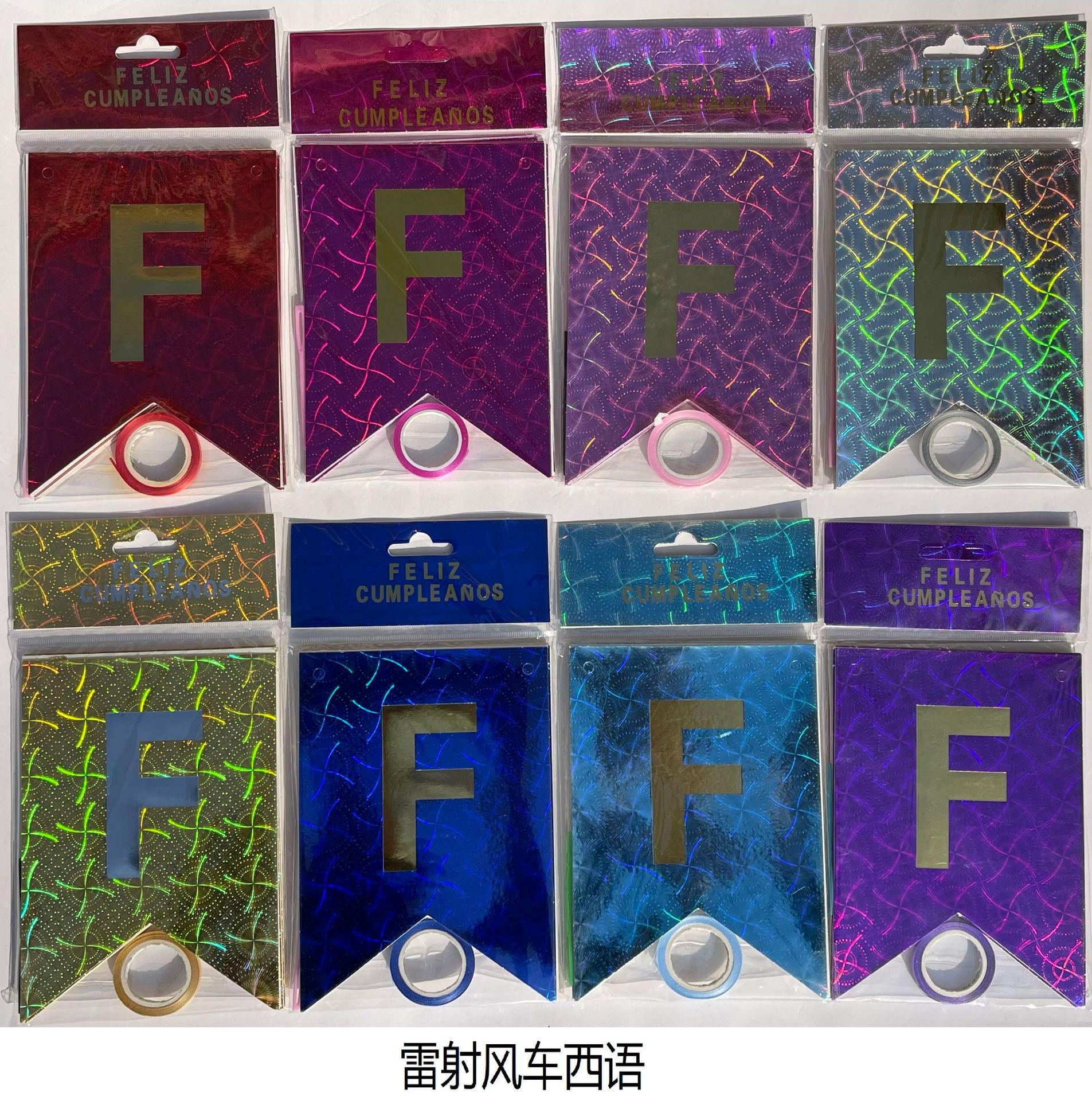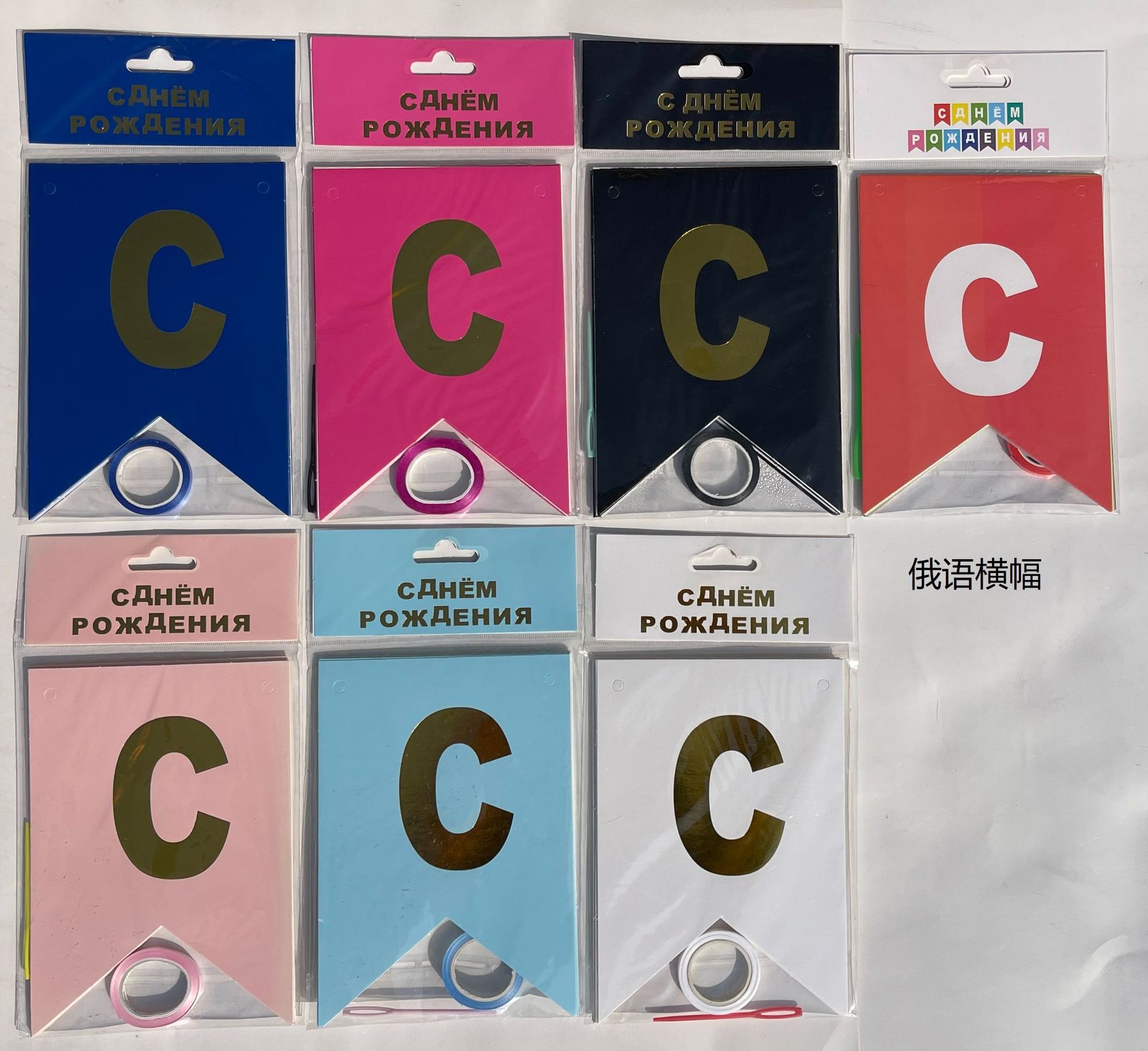 Сднем рождения烫金拉旗俄语生日派对拉花拉旗横幅