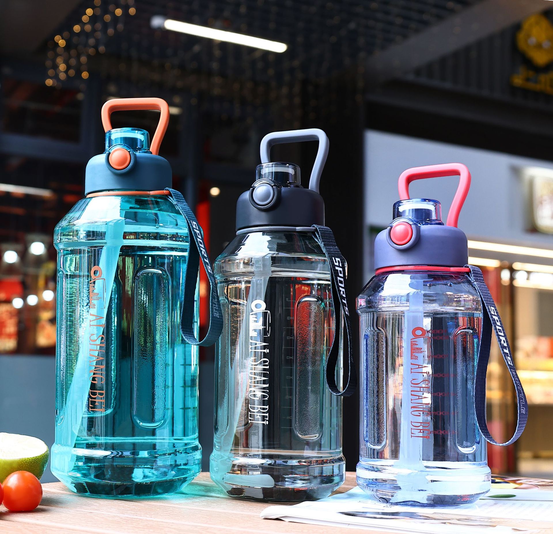 户外提绳便携塑料太空杯子运动太空杯2000ML运动水壶