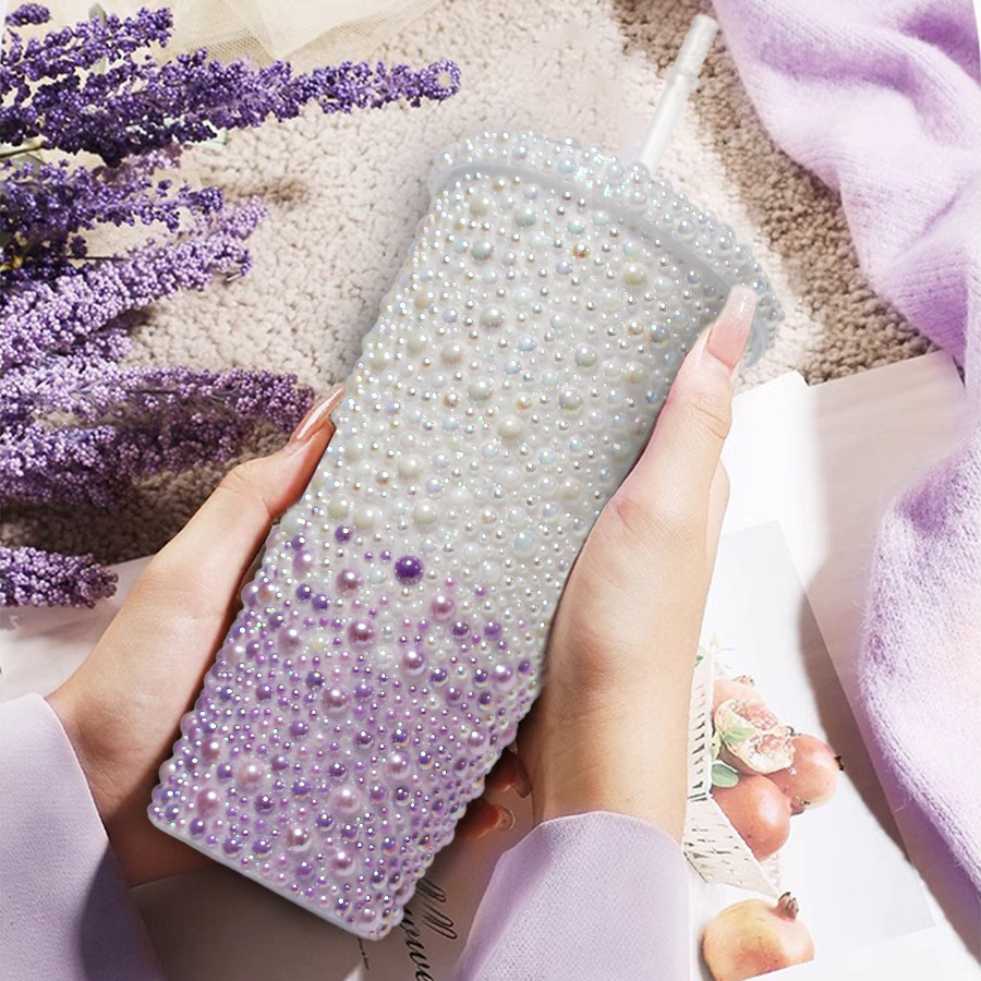 创意贴钻双层高颜值冷饮杯礼品点钻吸管杯锥型镶钻杯现货批发