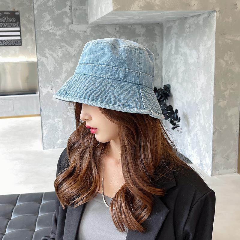 日系大帽檐显脸小女生素颜遮脸盆帽男韩版百搭情侣帽子牛仔渔夫帽