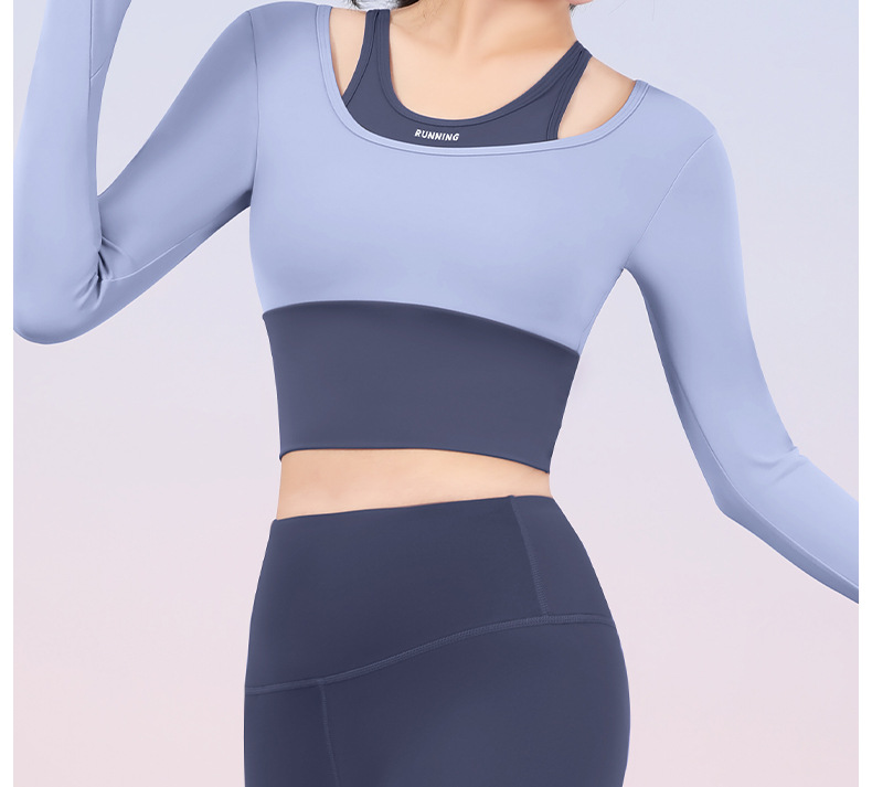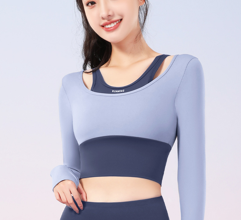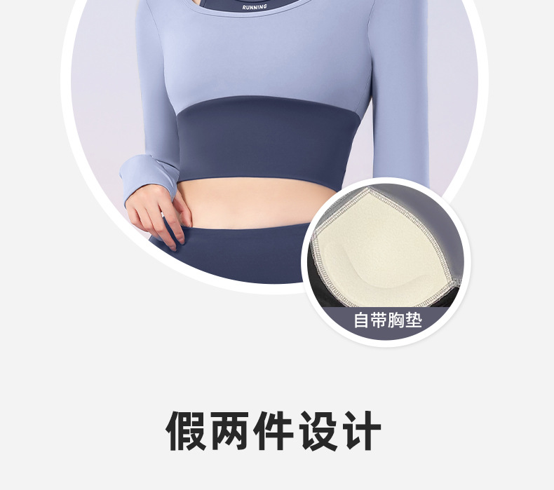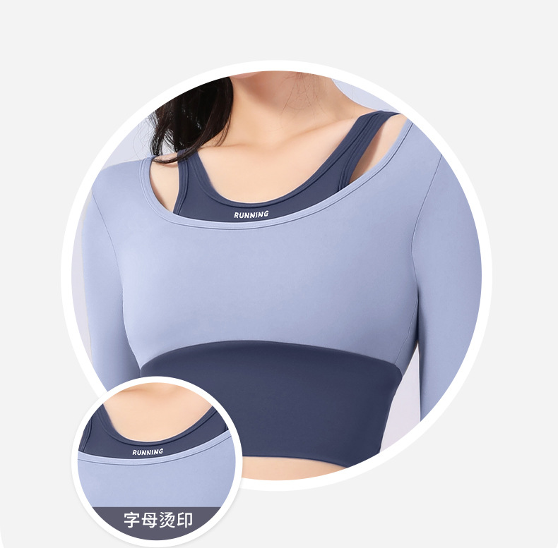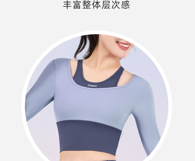 假两件收腰瑜伽服女免穿文胸瑜伽上衣长袖健身服