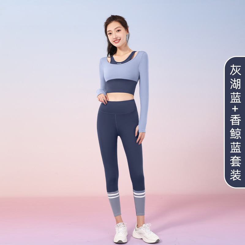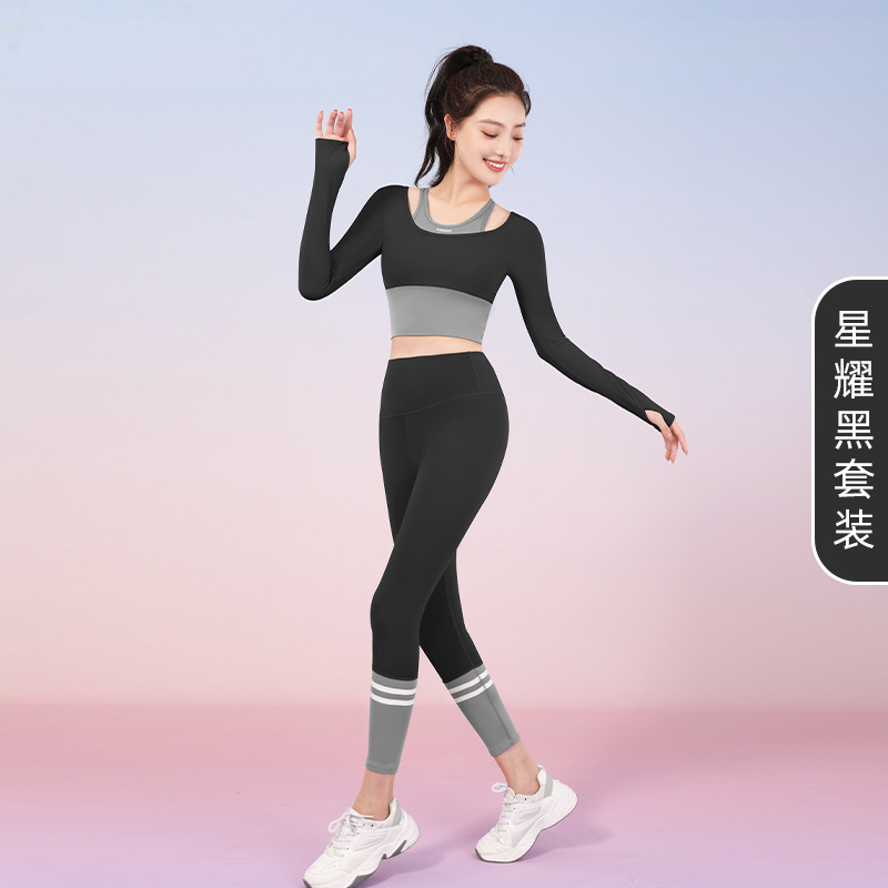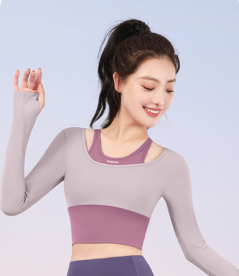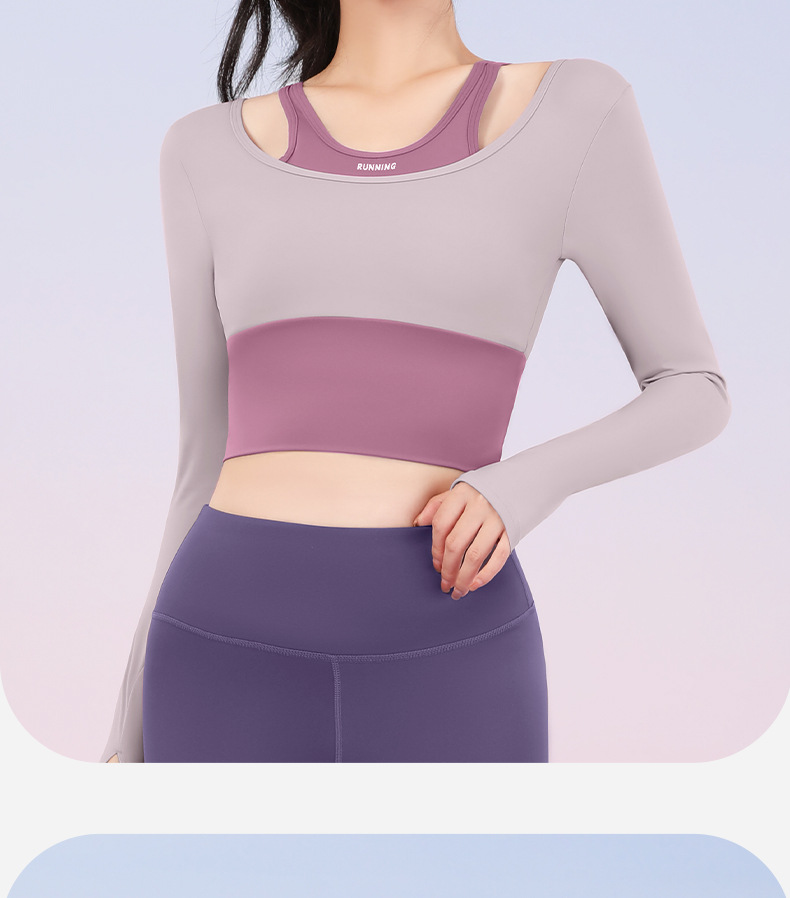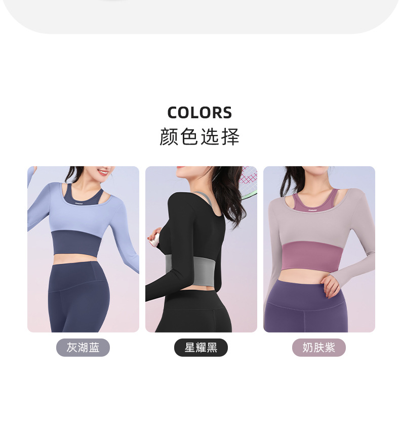 假两件收腰瑜伽服女免穿文胸瑜伽上衣长袖健身服