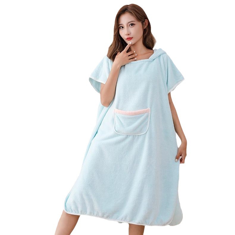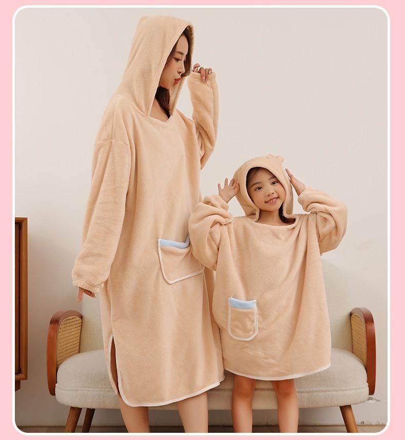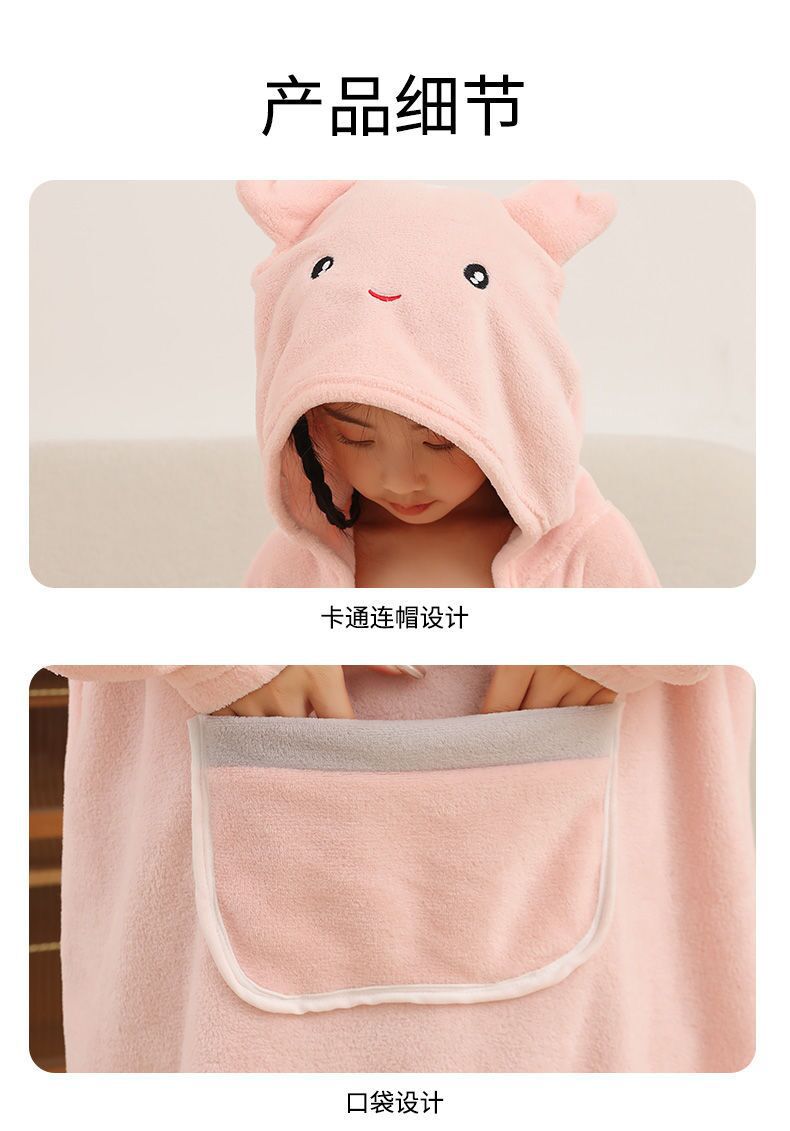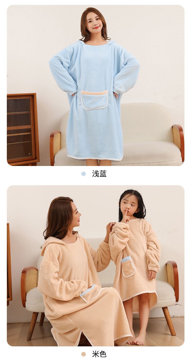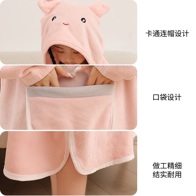 长袖成人浴巾斗篷浴袍带浴帽秋冬珊瑚绒吸水速干亲子连帽可穿式