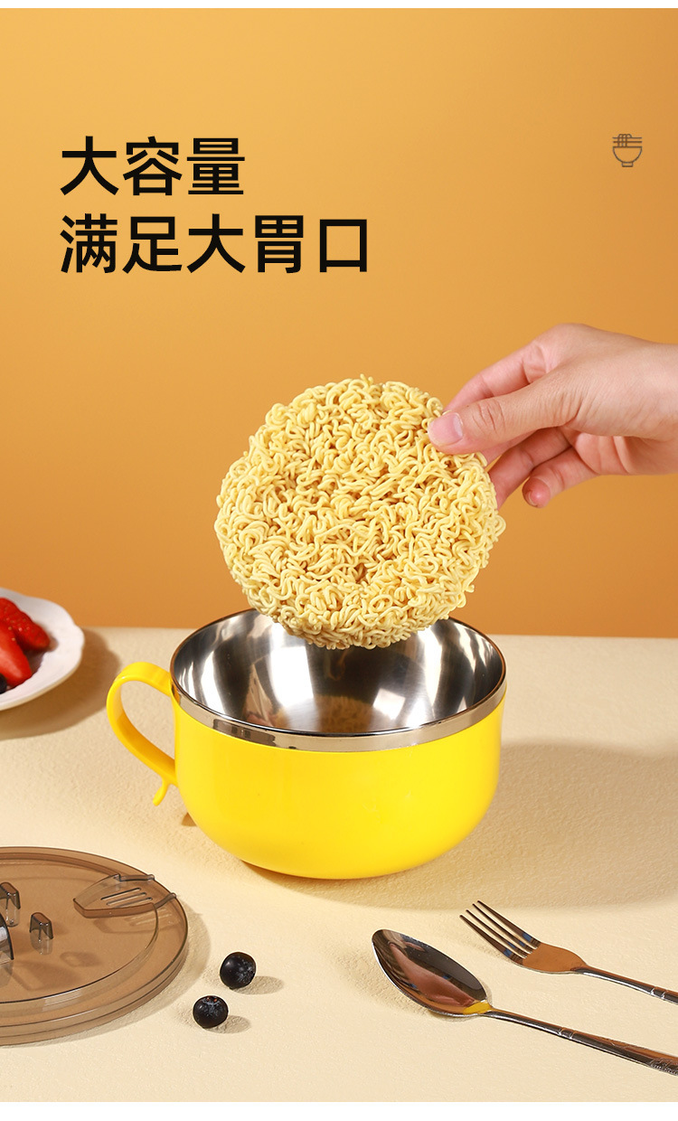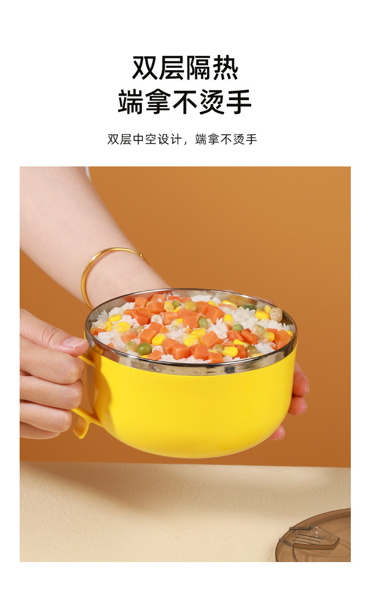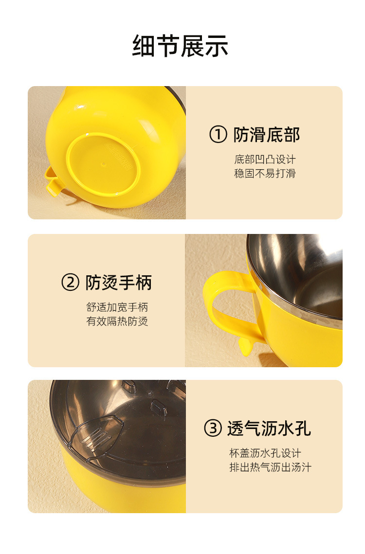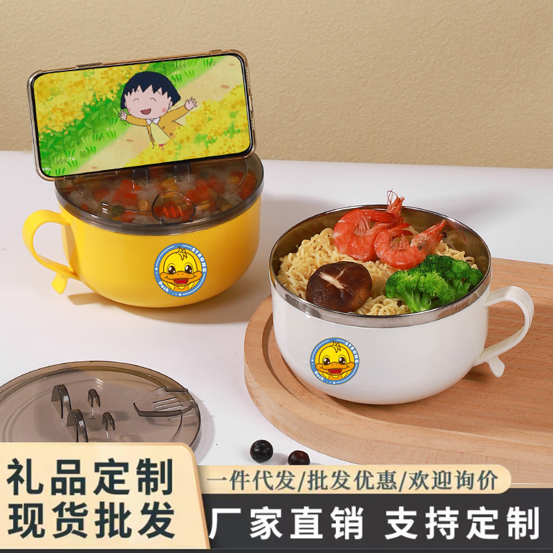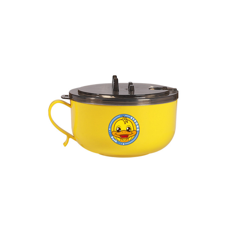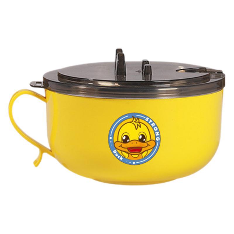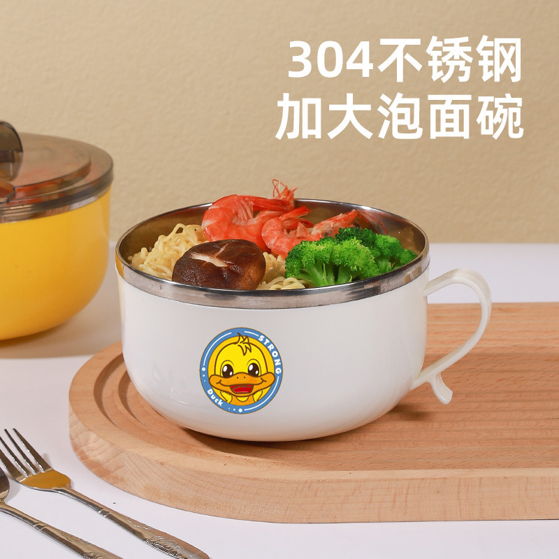 小黄鸭泡面碗304不锈钢带盖保温饭碗快餐杯学生宿舍可沥水泡面杯