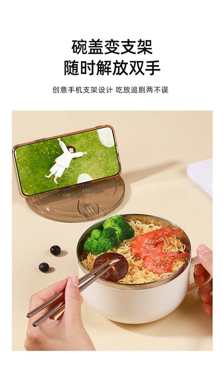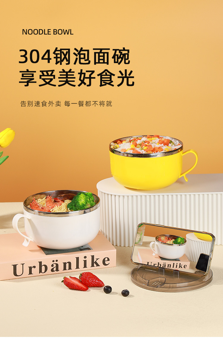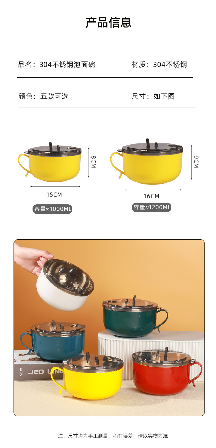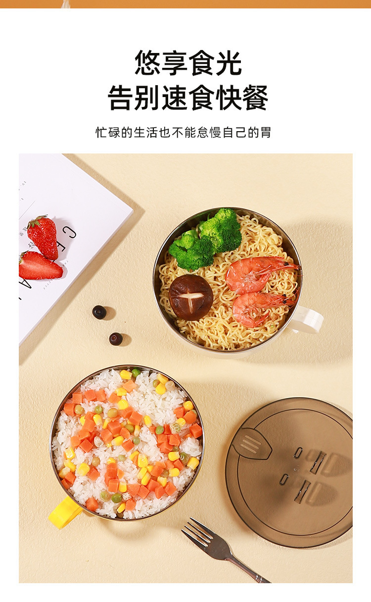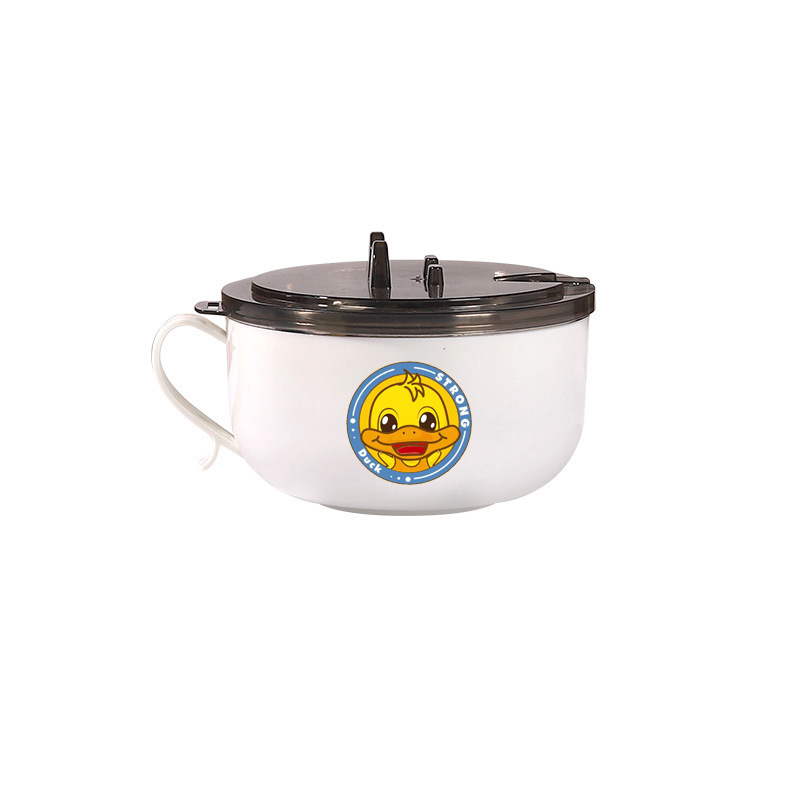 小黄鸭泡面碗304不锈钢带盖保温饭碗快餐杯学生宿舍可沥水泡面杯