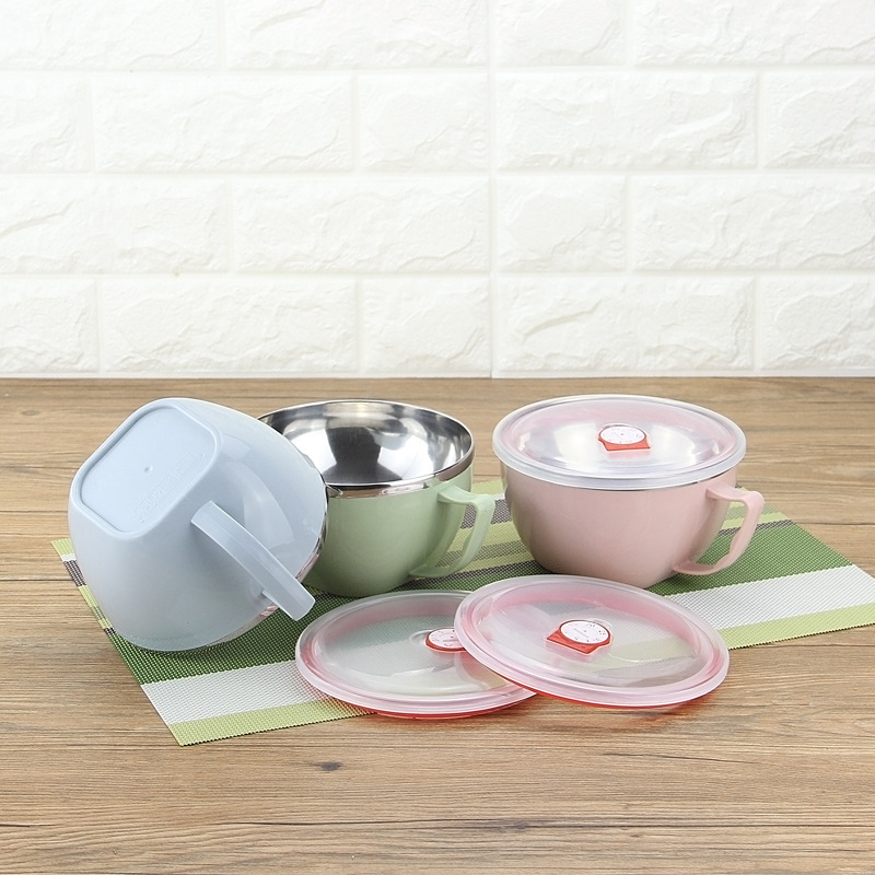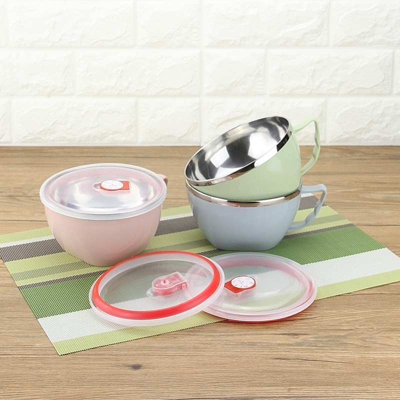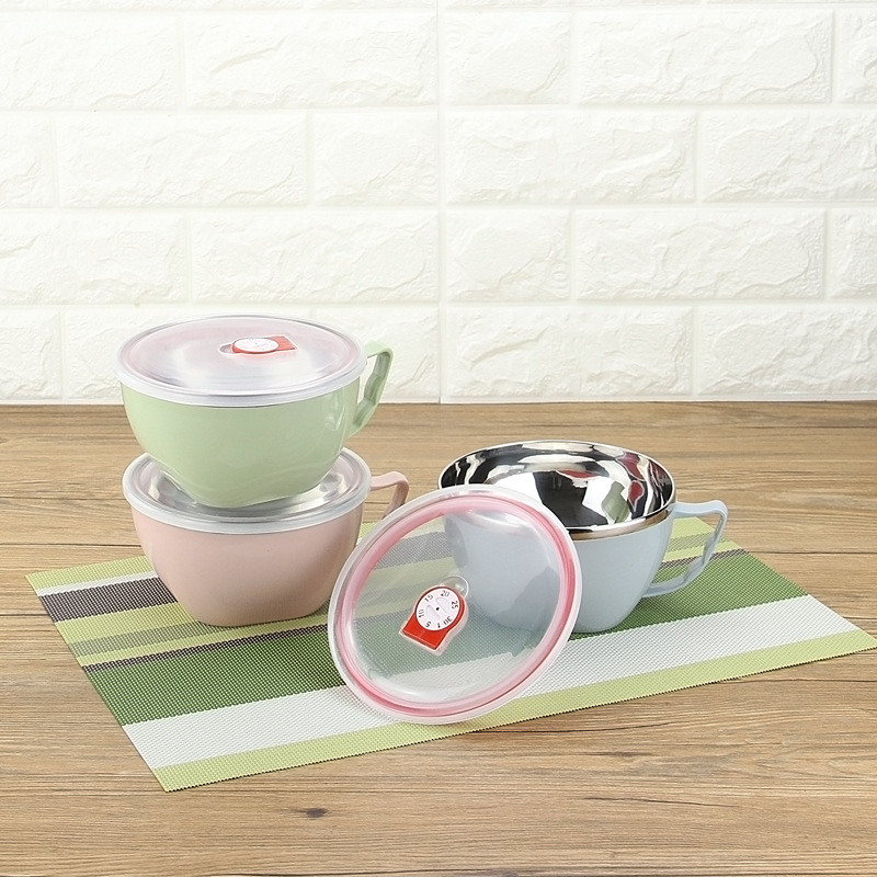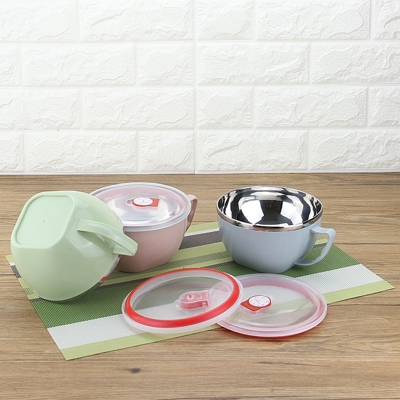 潮州互发厂家批发304不锈钢泡面杯 带盖加厚泡面碗带柄饭盒保鲜盒