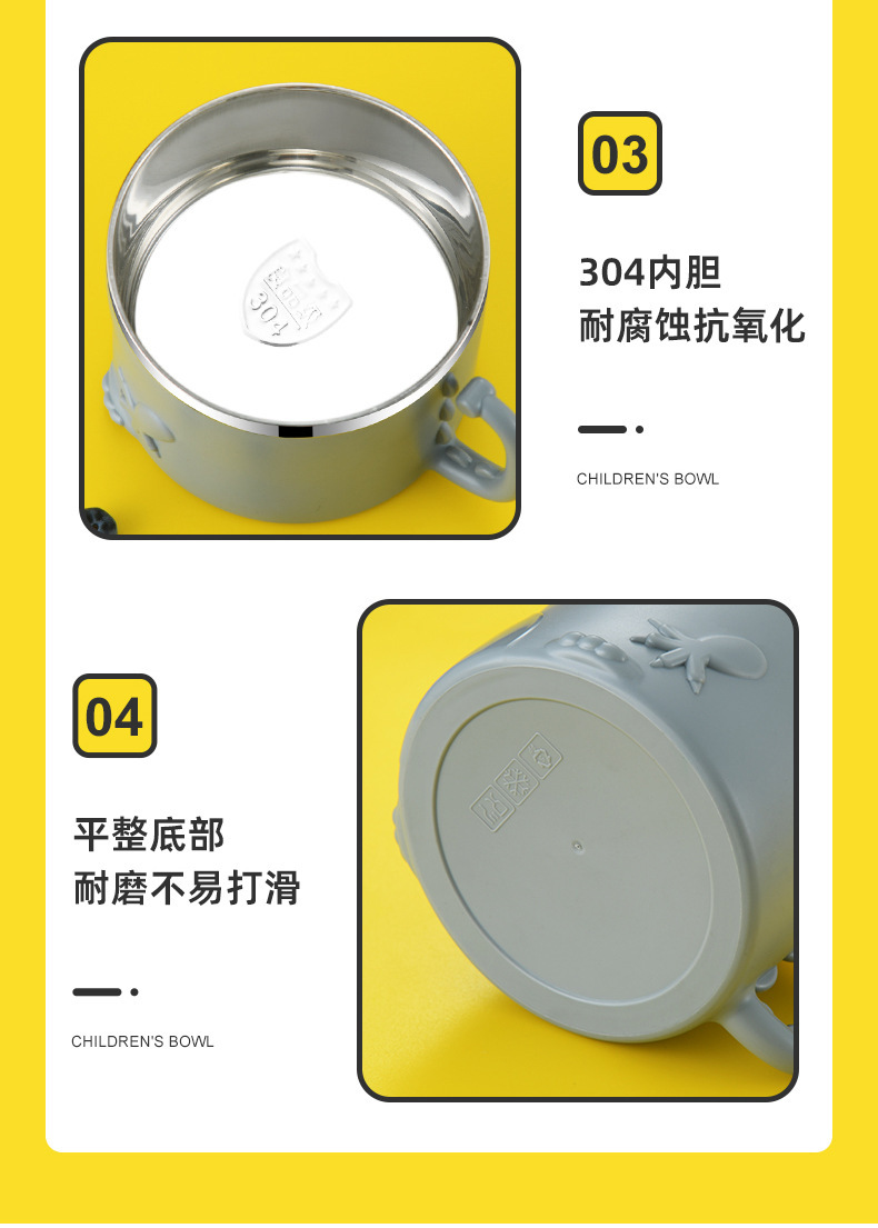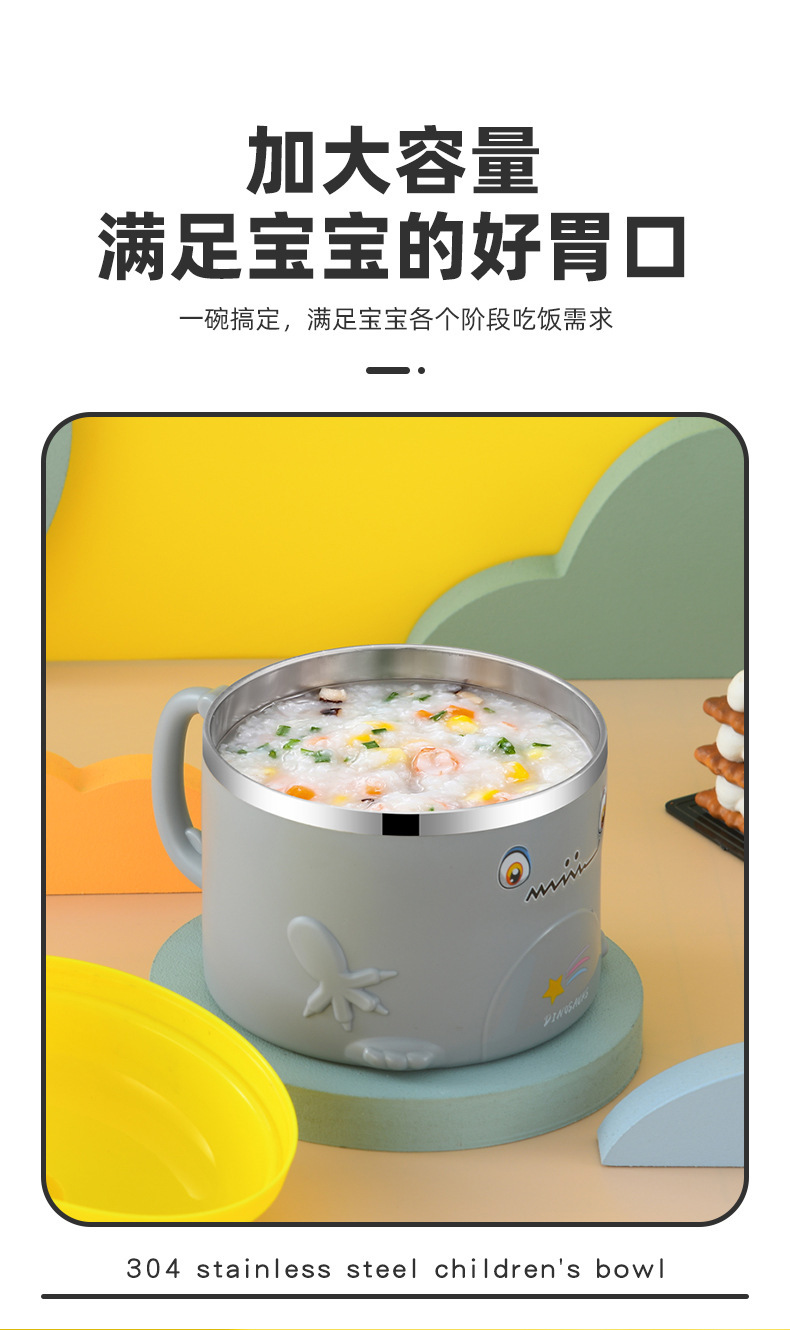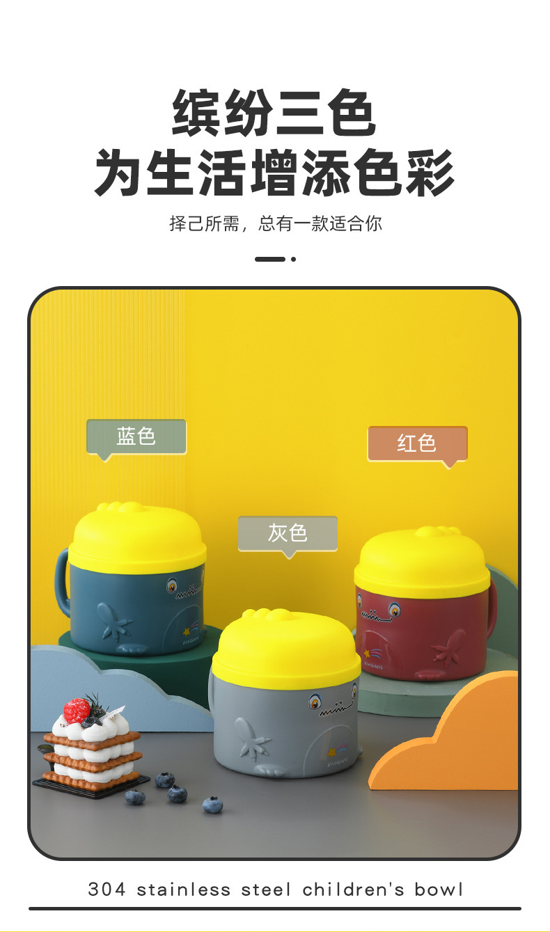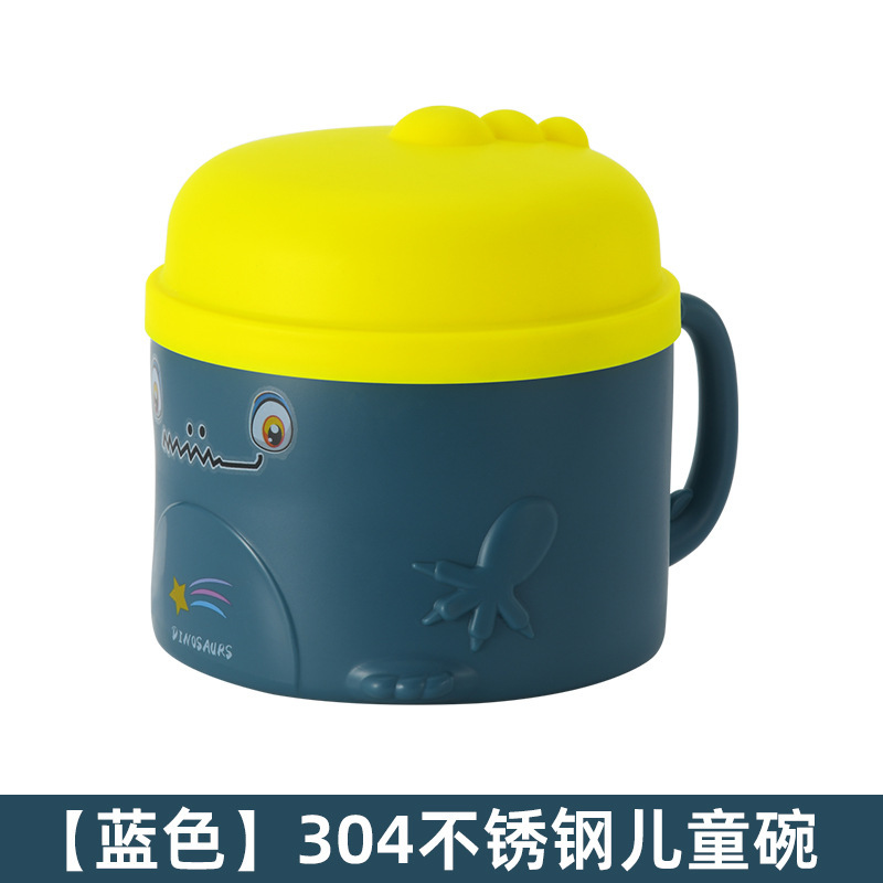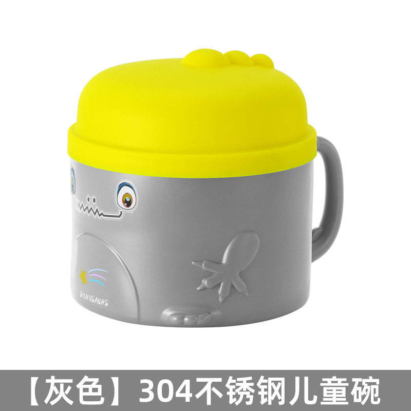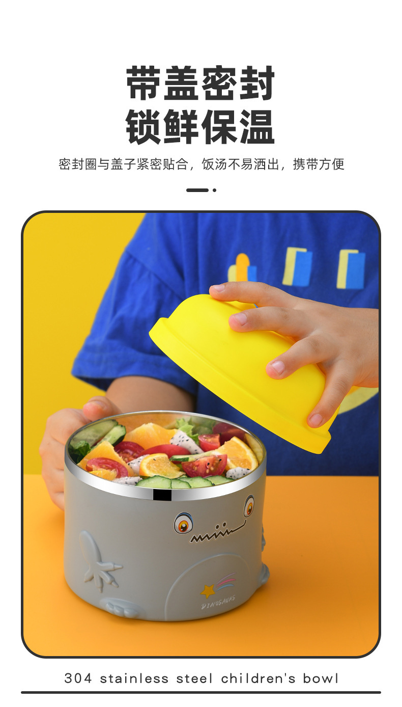 304不锈钢儿童碗 幼儿园宝宝泡面碗防摔防烫可爱卡通恐龙碗圆便当