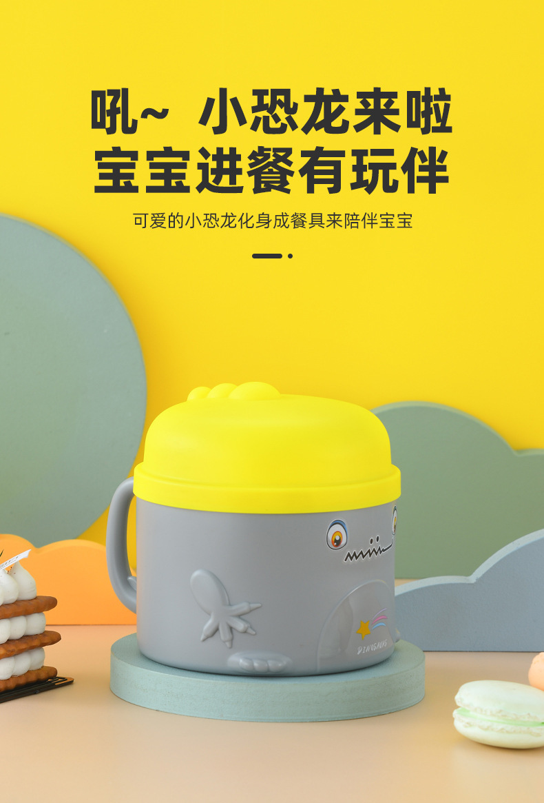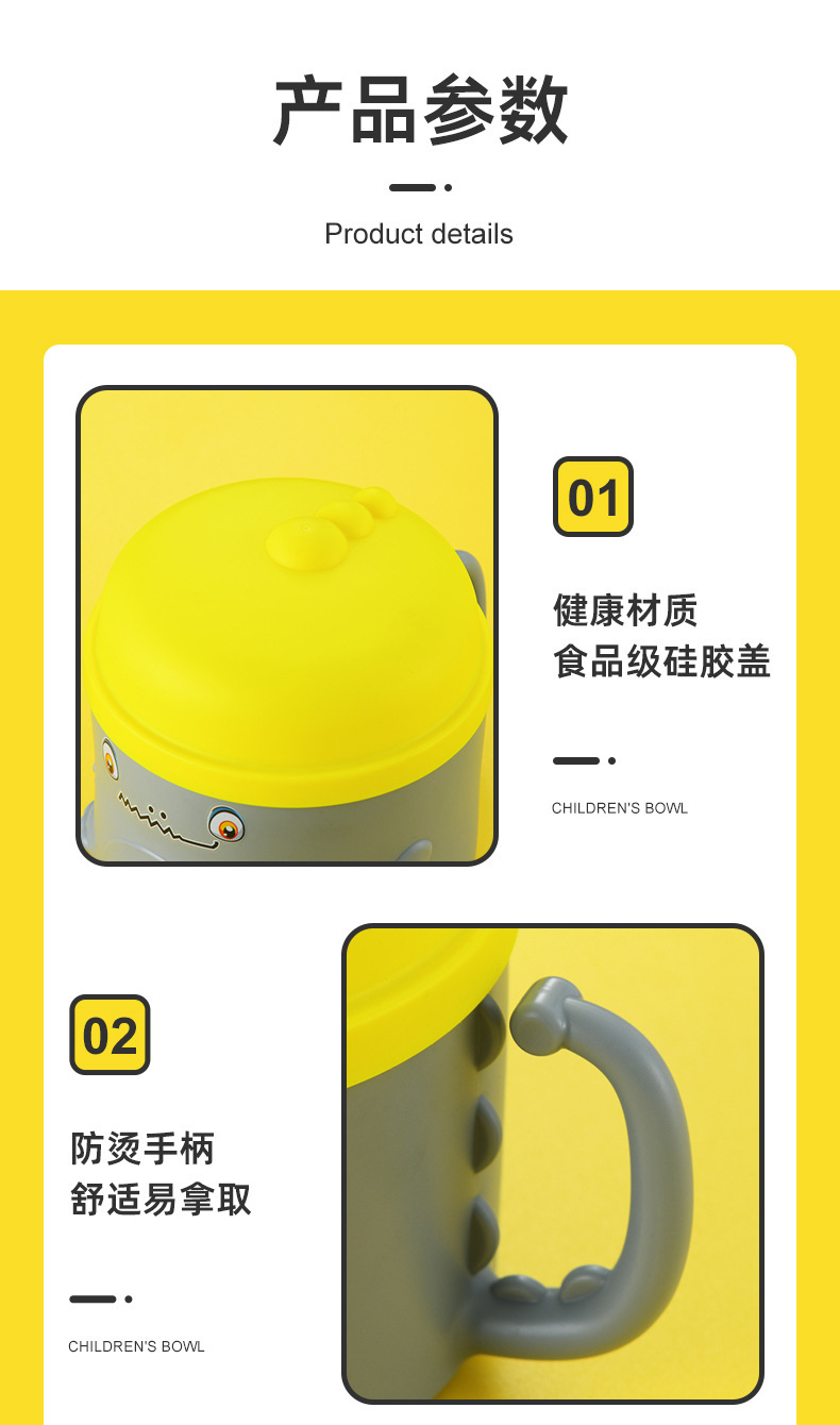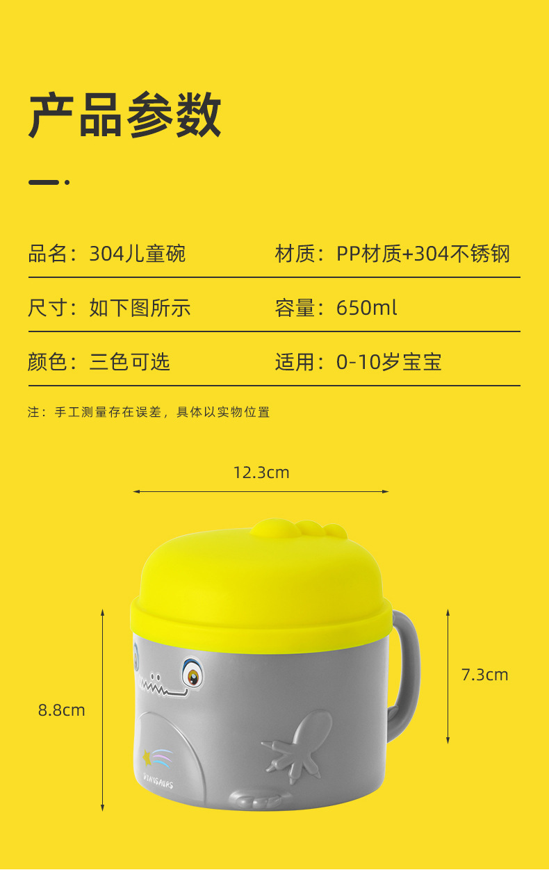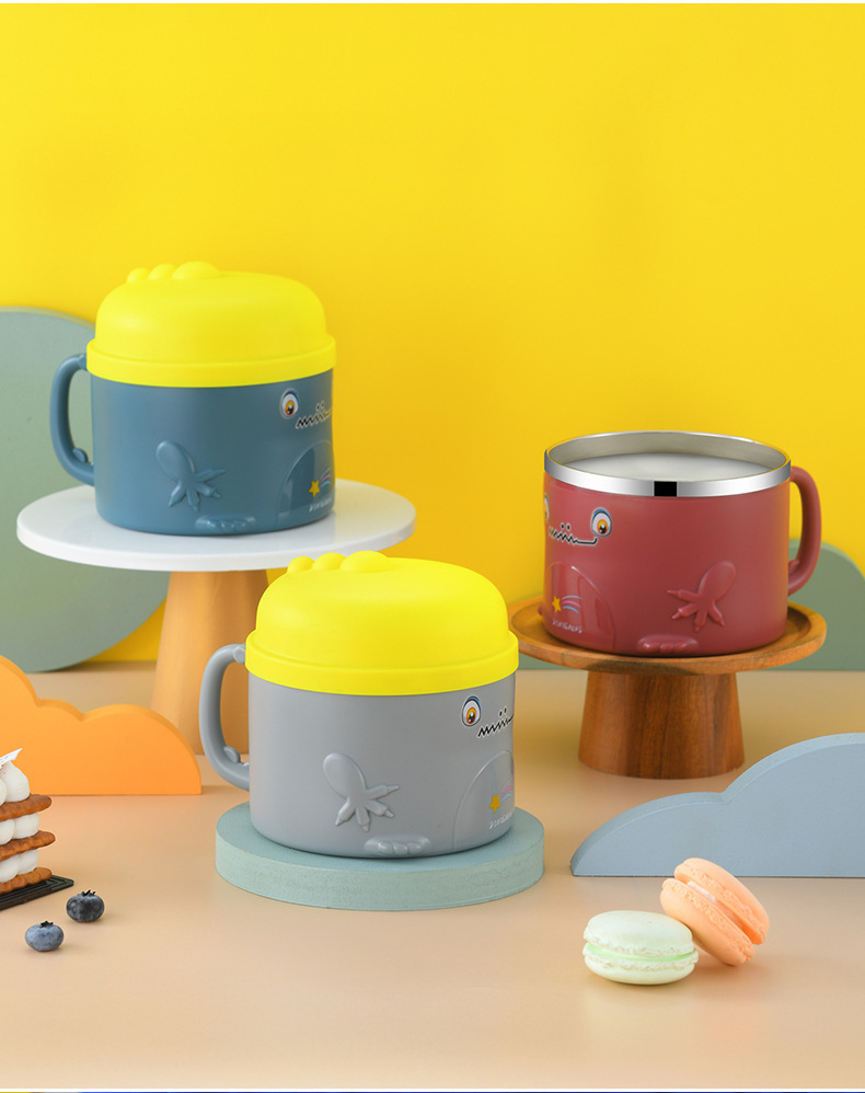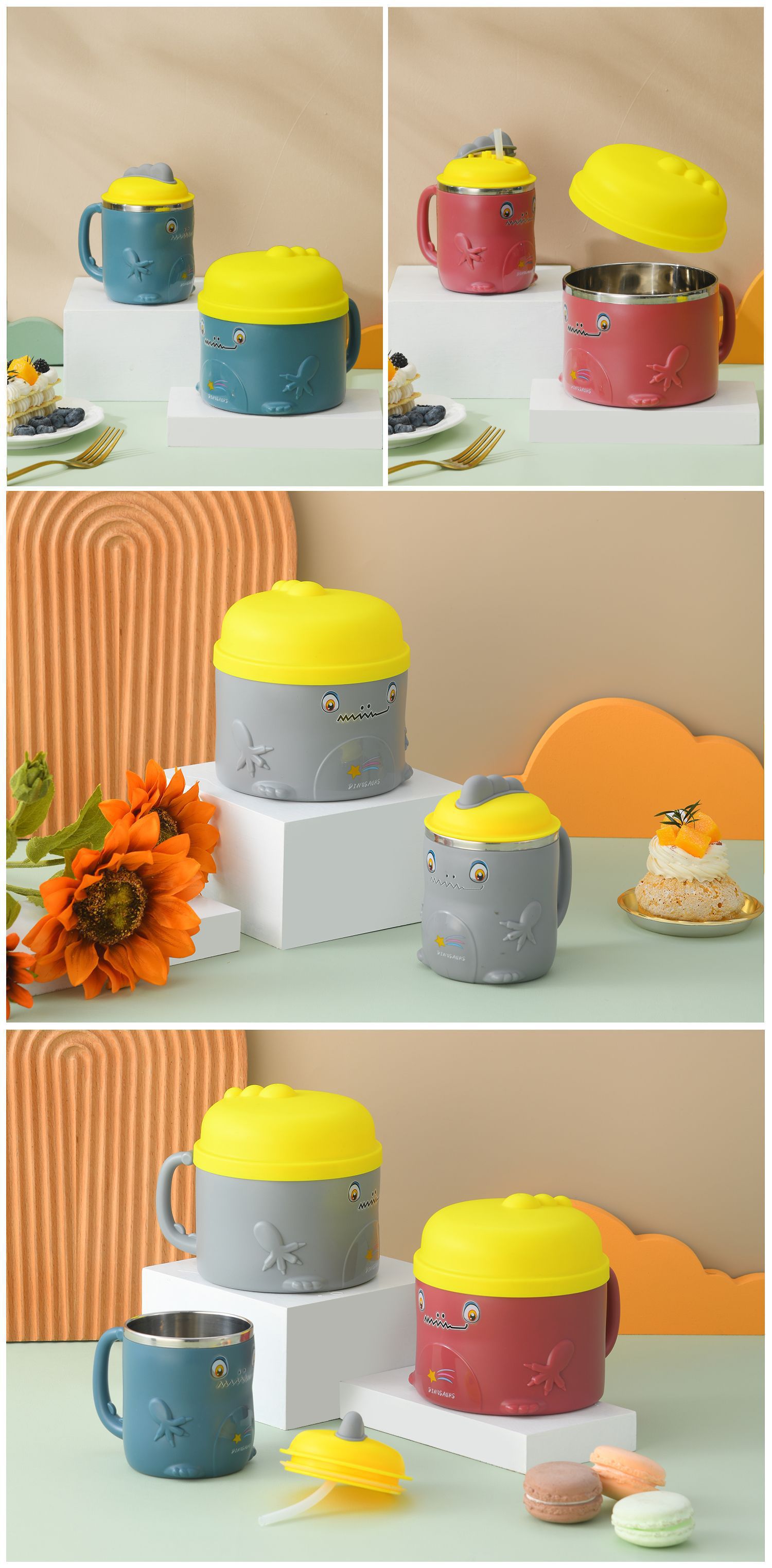 304不锈钢儿童碗 幼儿园宝宝泡面碗防摔防烫可爱卡通恐龙碗圆便当
