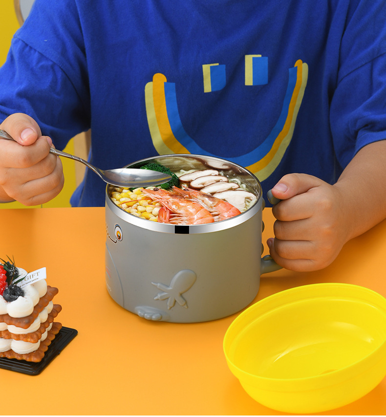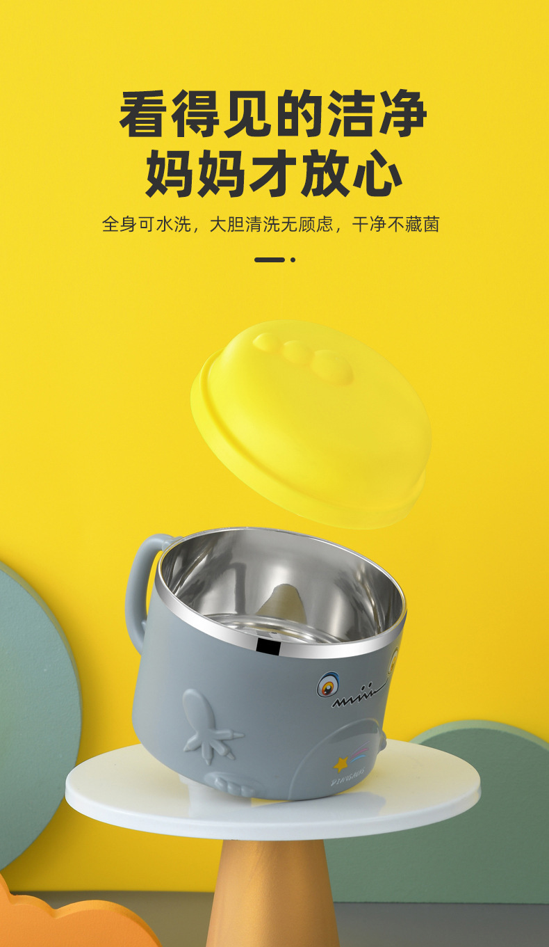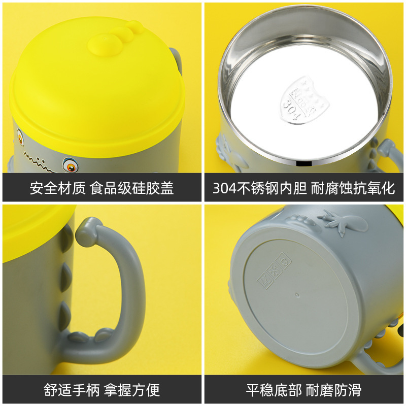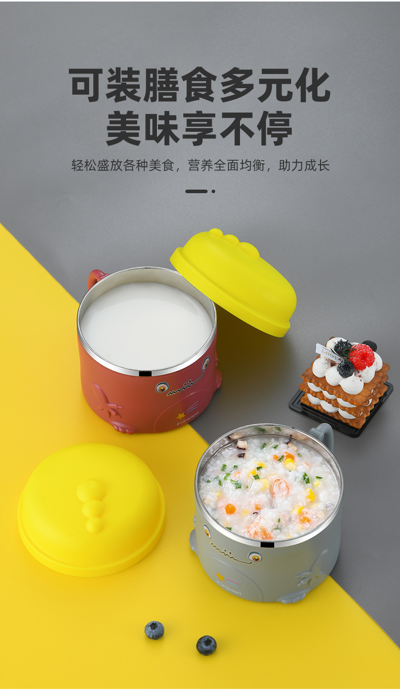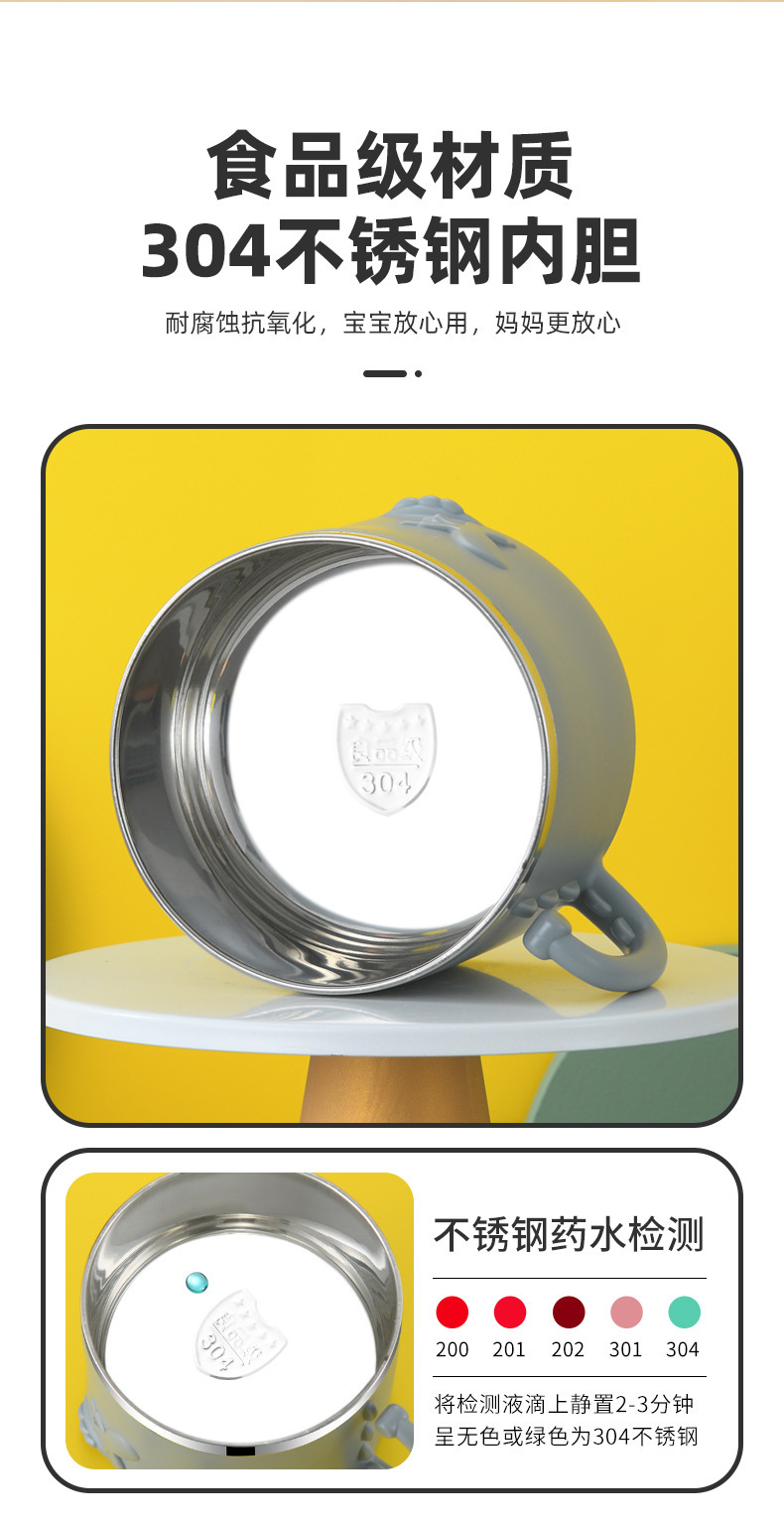 304不锈钢儿童碗 幼儿园宝宝泡面碗防摔防烫可爱卡通恐龙碗圆便当