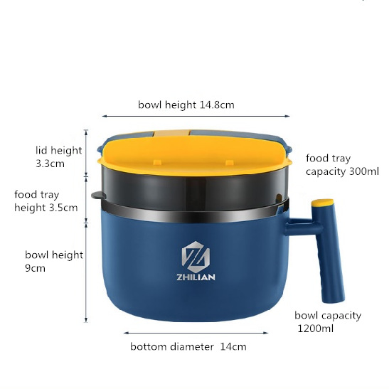 304不锈钢手柄大容量泡面碗带盖快餐杯学生上班族午餐盒保温饭盒