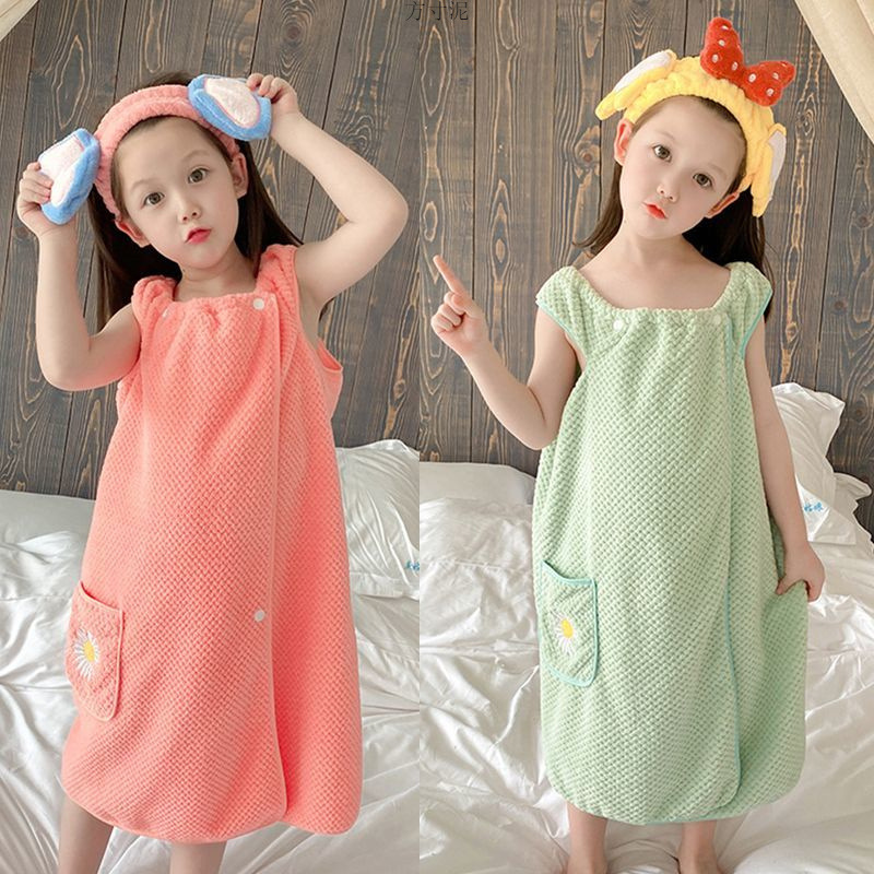 儿童浴袍可穿可裹儿童睡袍家居服比吸水浴裙珊瑚绒浴巾厂外贸批发