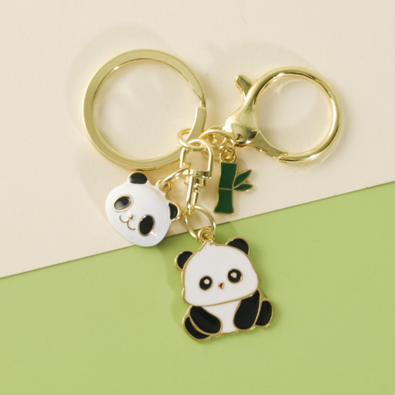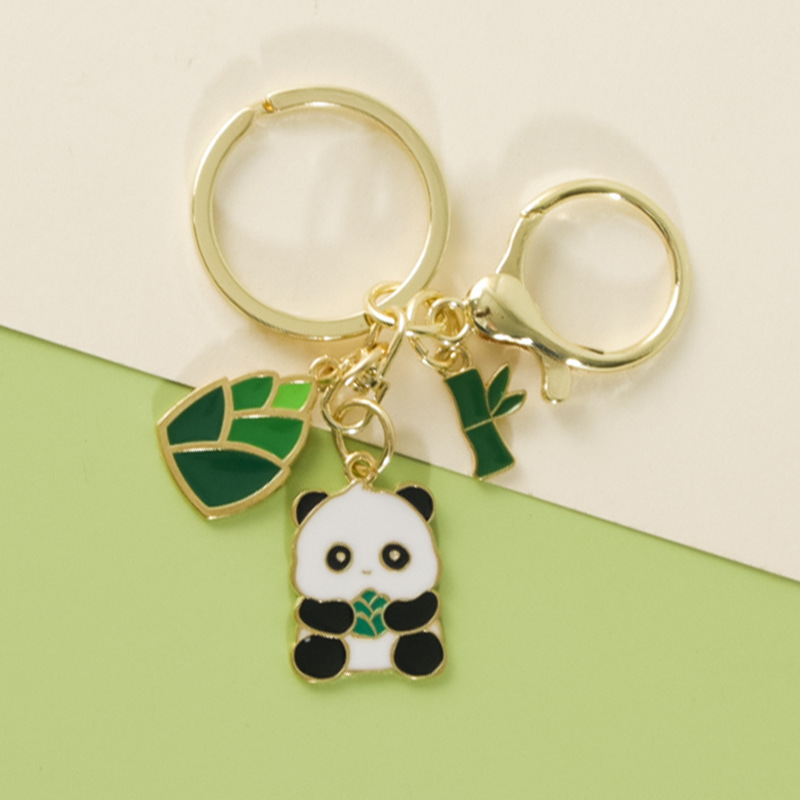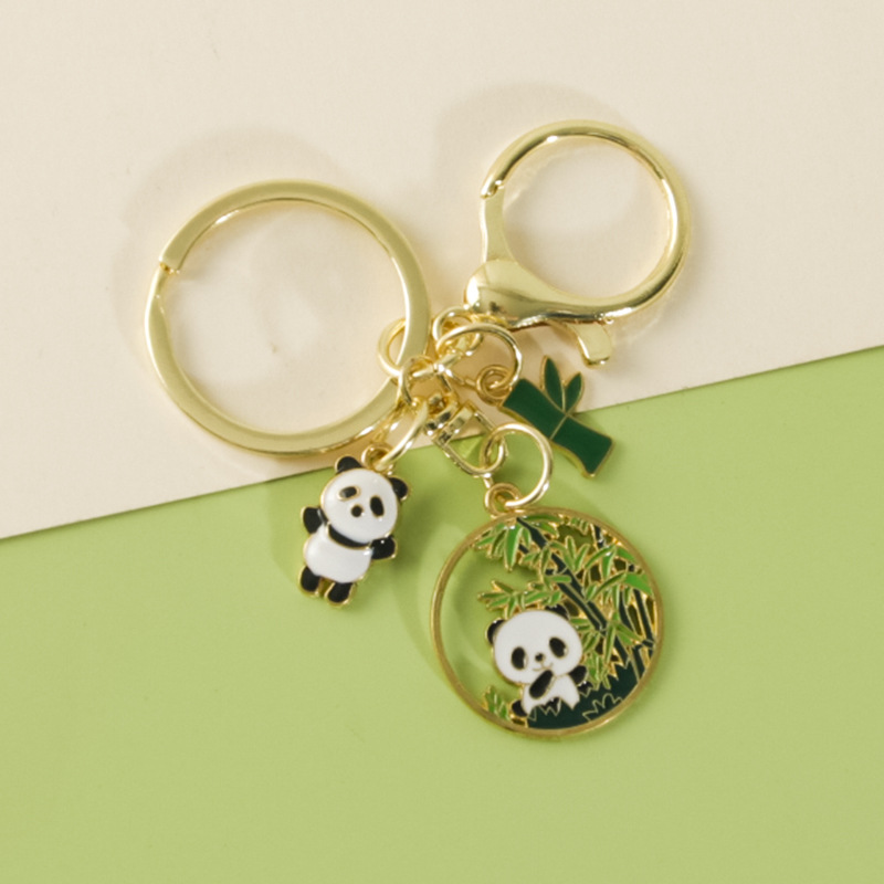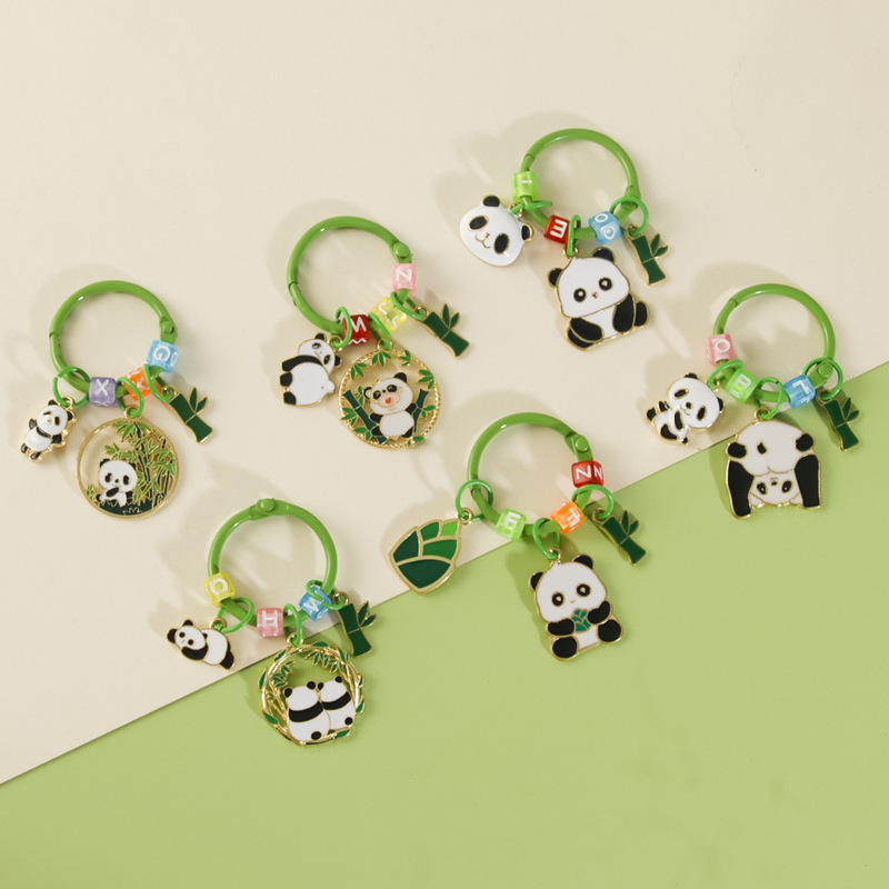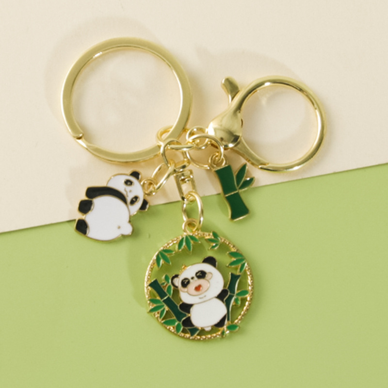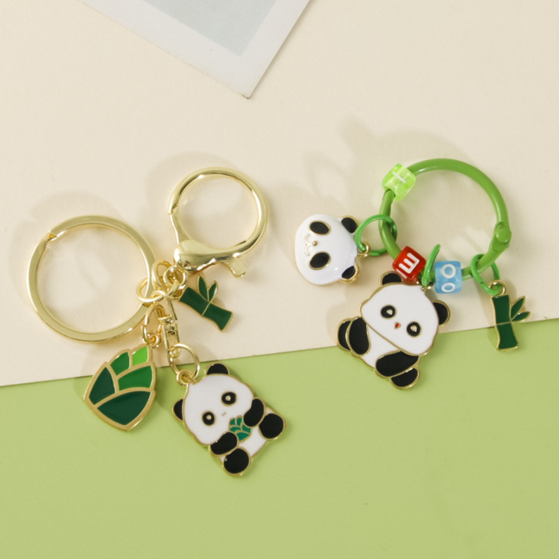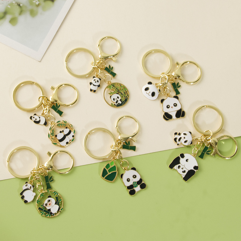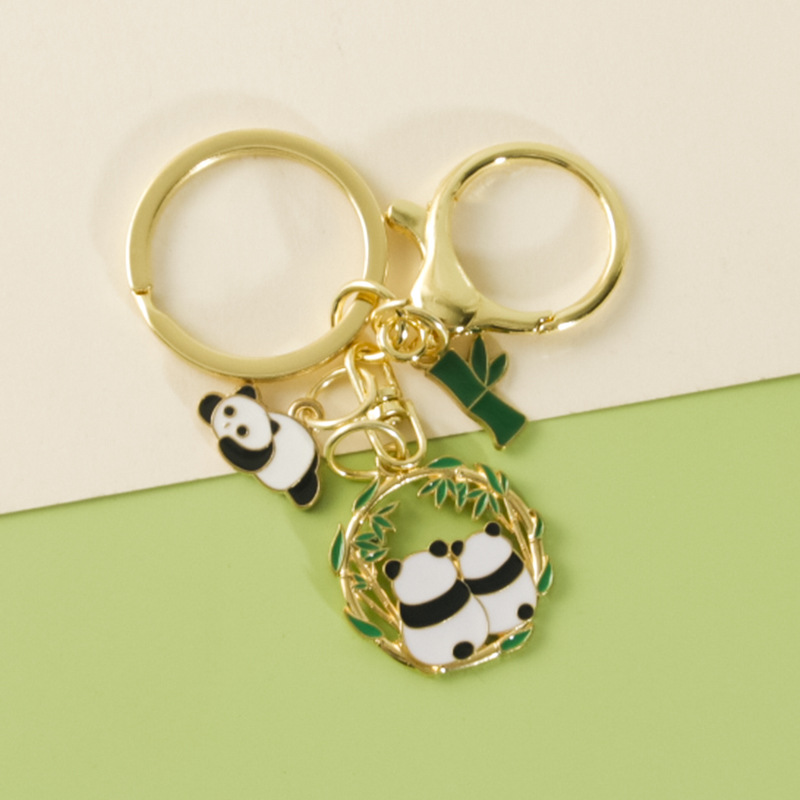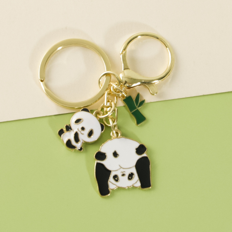 创意熊猫金属钥匙扣卡通调皮挂件中国风情侣汽车挂饰地摊礼品批发