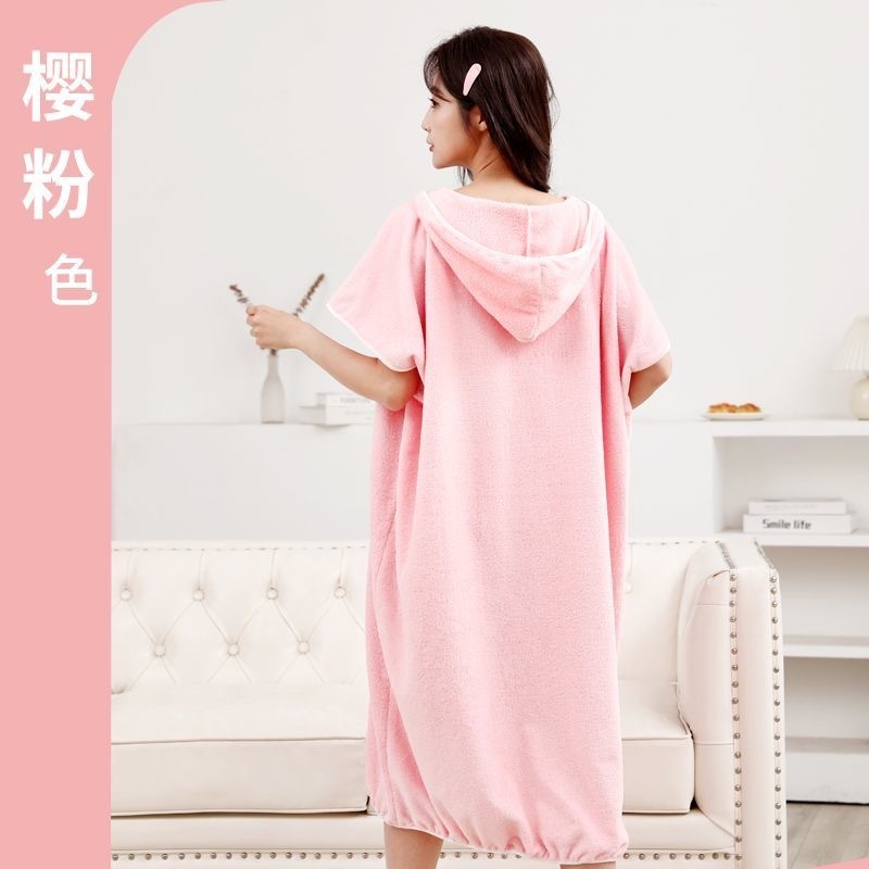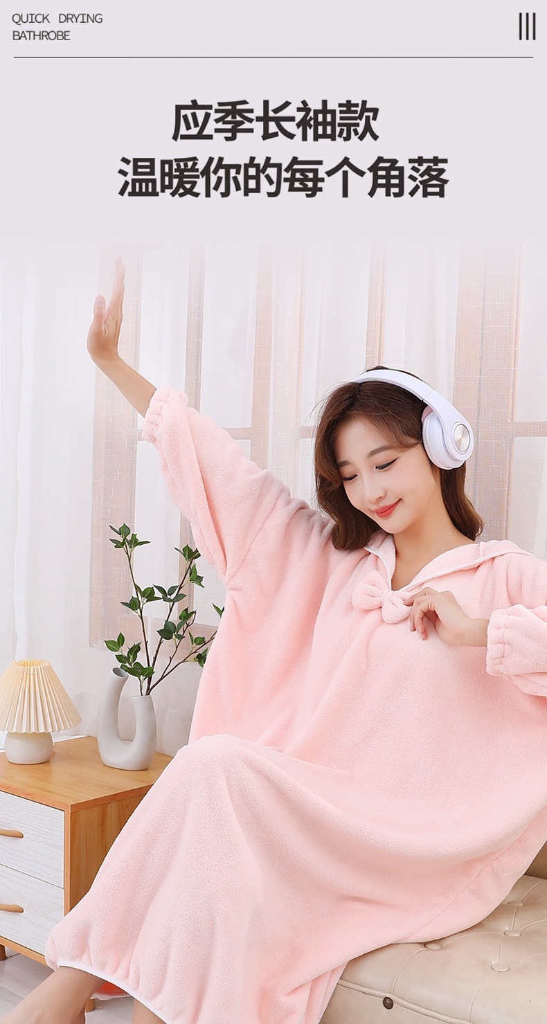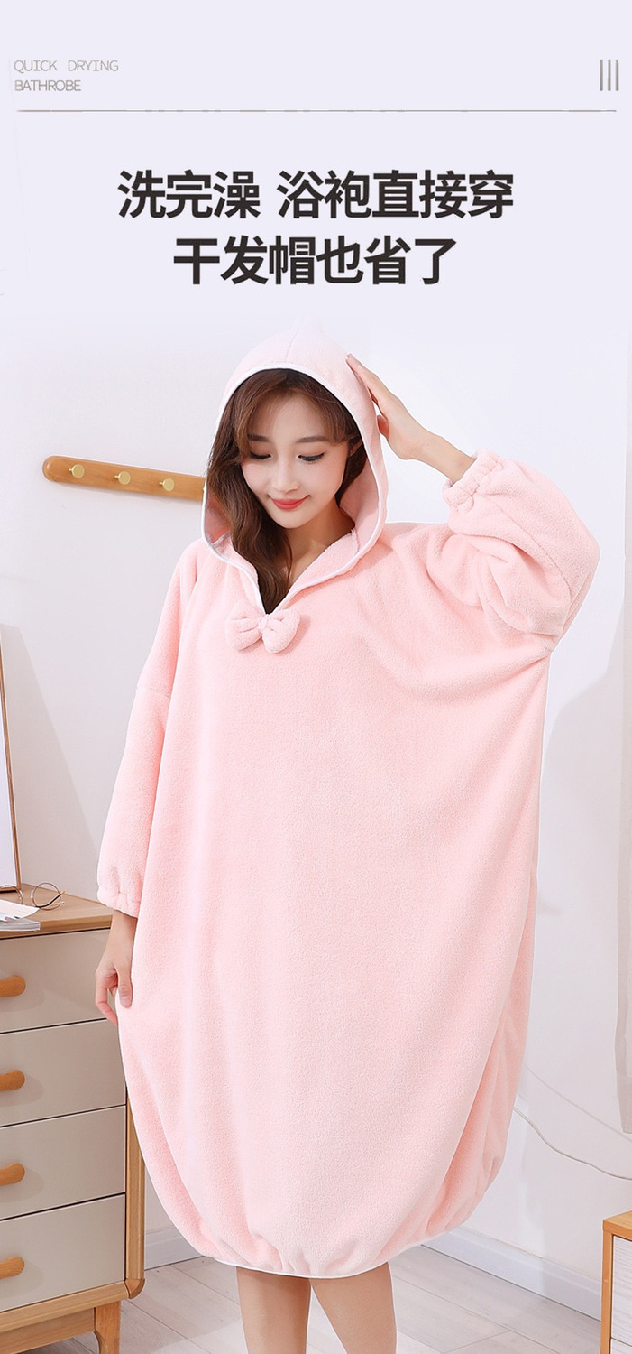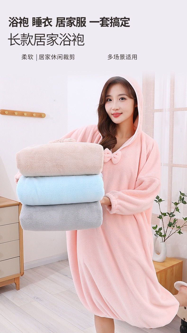 浴巾浴袍家用长款男女可用比棉吸水速干一体浴裙秋冬洗澡睡袍