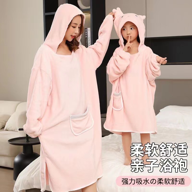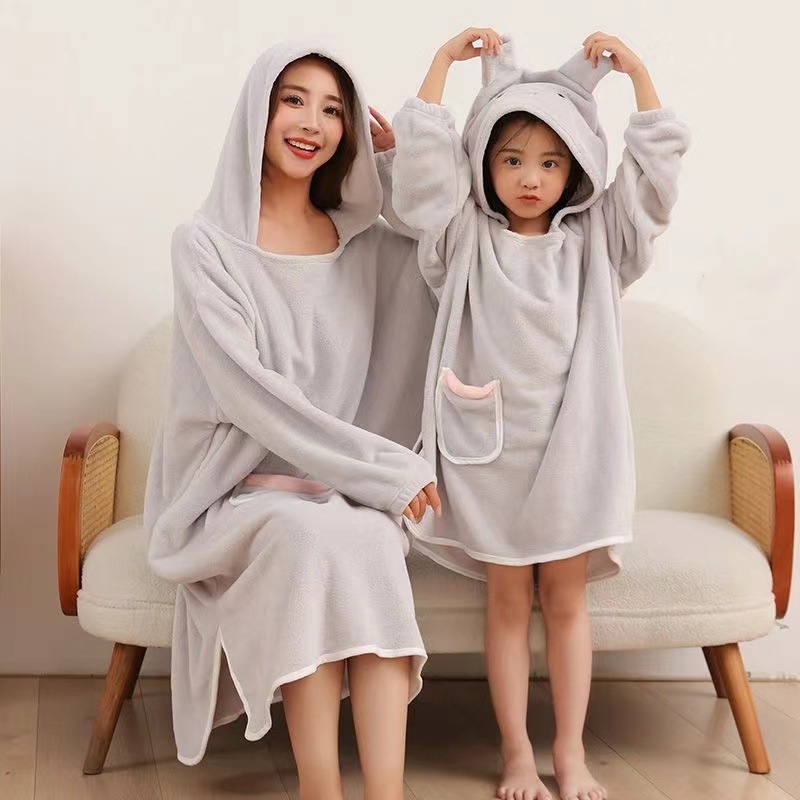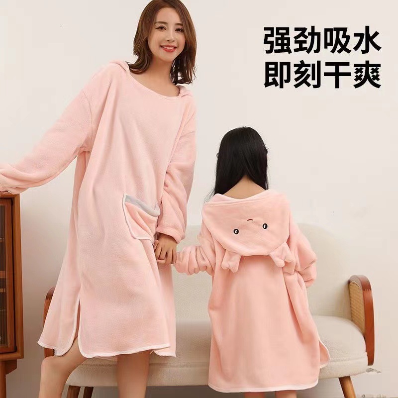 2024新款连帽可穿浴裙长袖加厚浴衣成人浴巾吸水浴袍披风斗篷大人