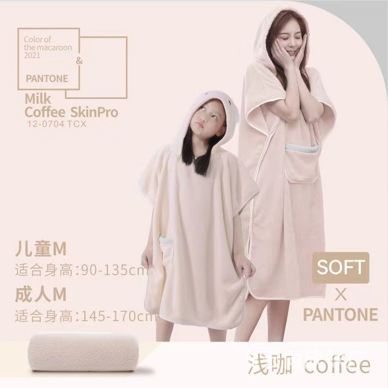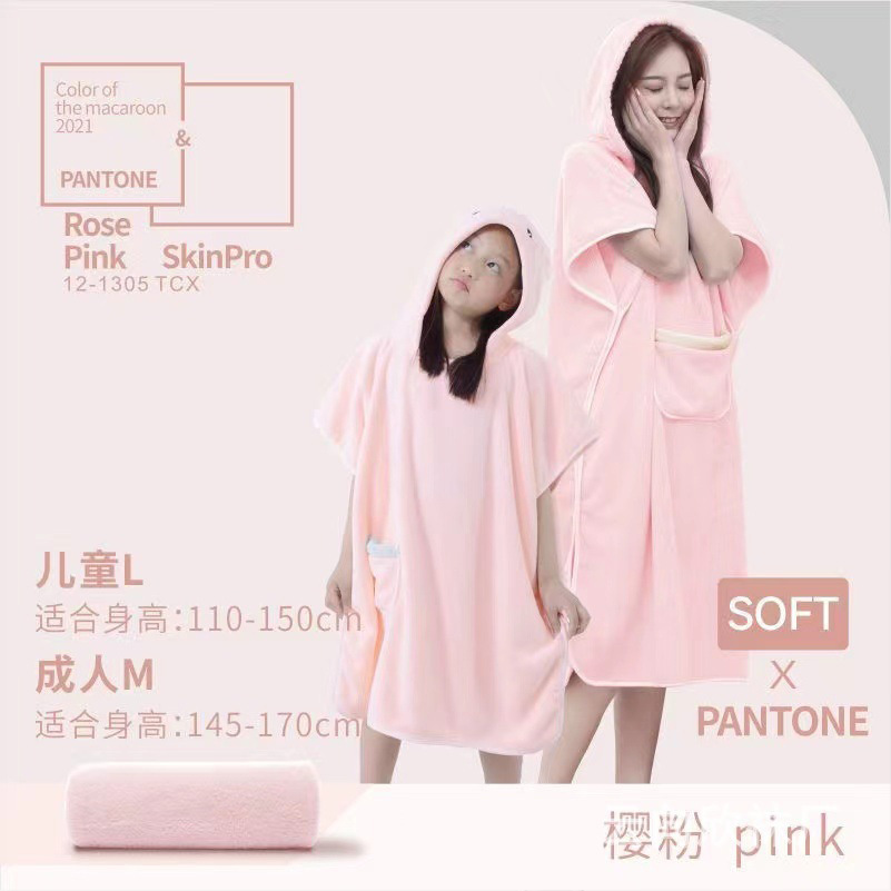 珊瑚绒成人可穿浴袍女家用亲子斗篷带帽浴巾加厚吸水速干浴巾浴袍