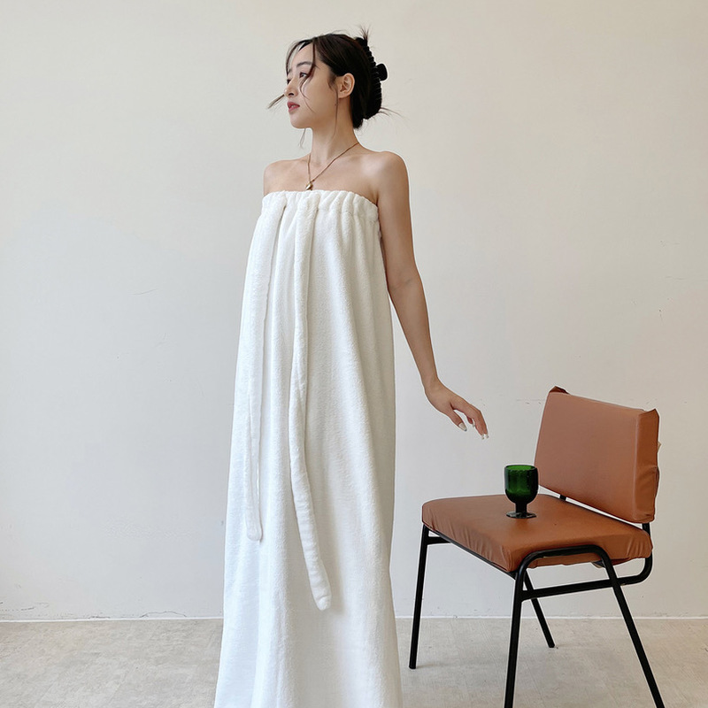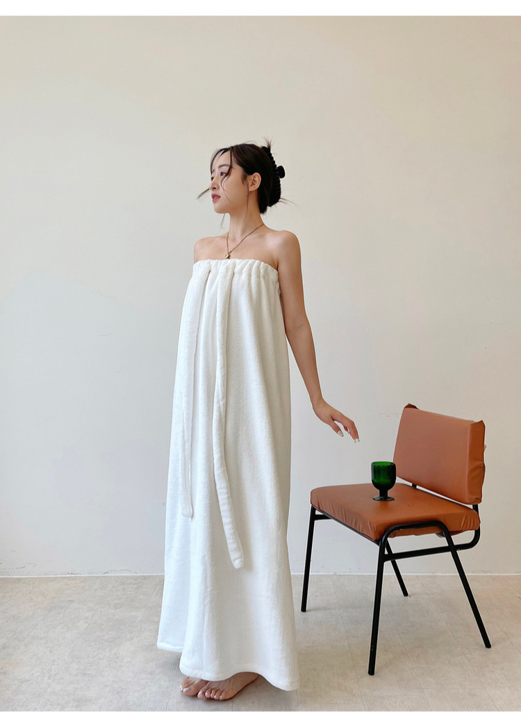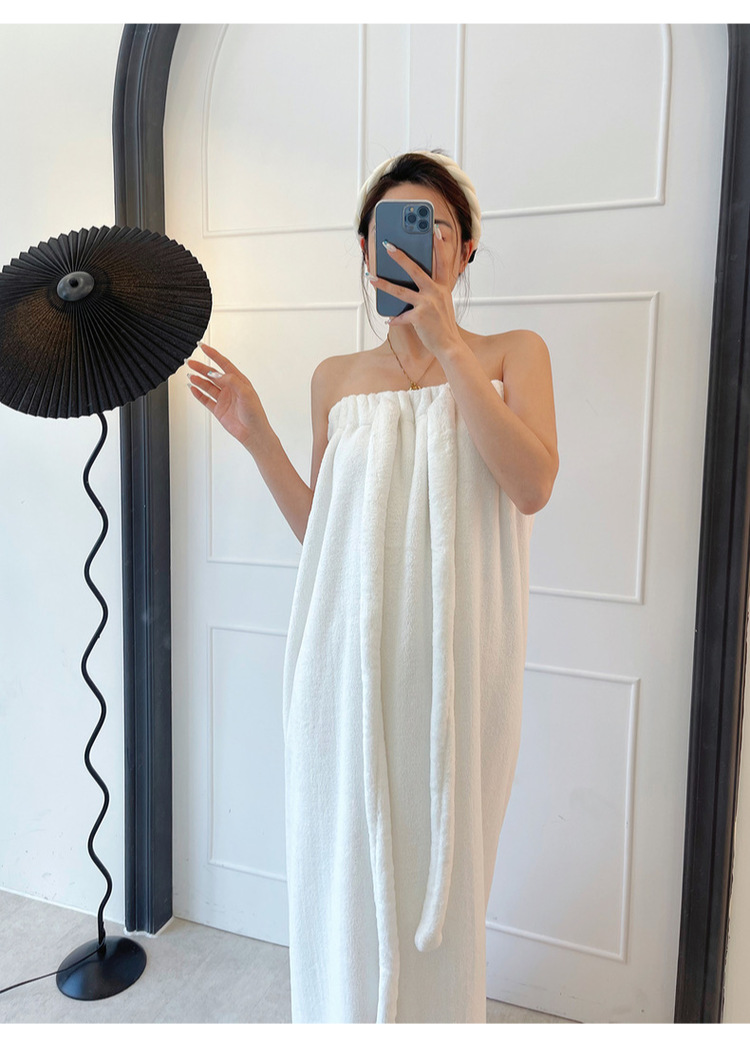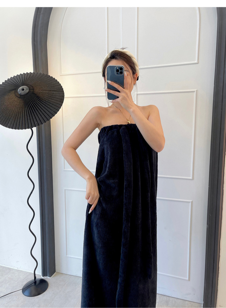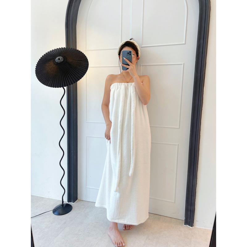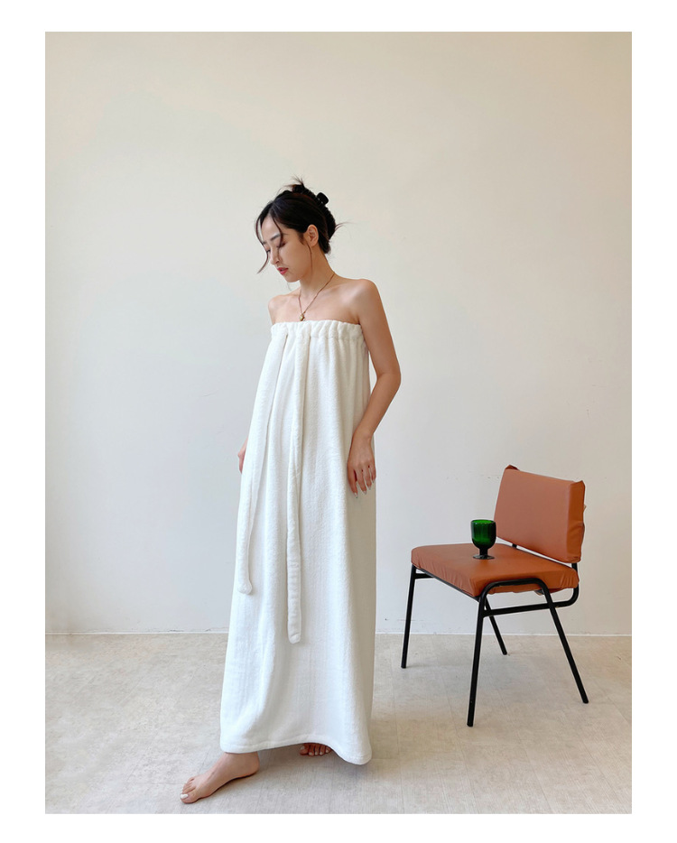 实拍2024新款浴袍女秋冬季加厚加绒吸水速干浴巾性感抹胸长款睡袍