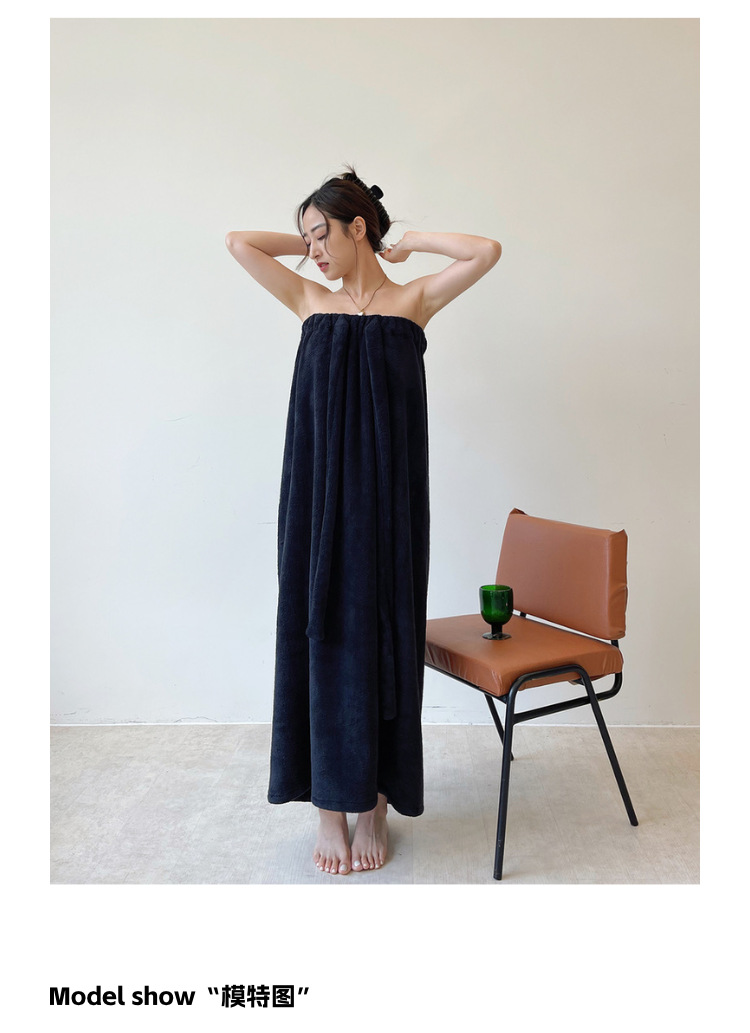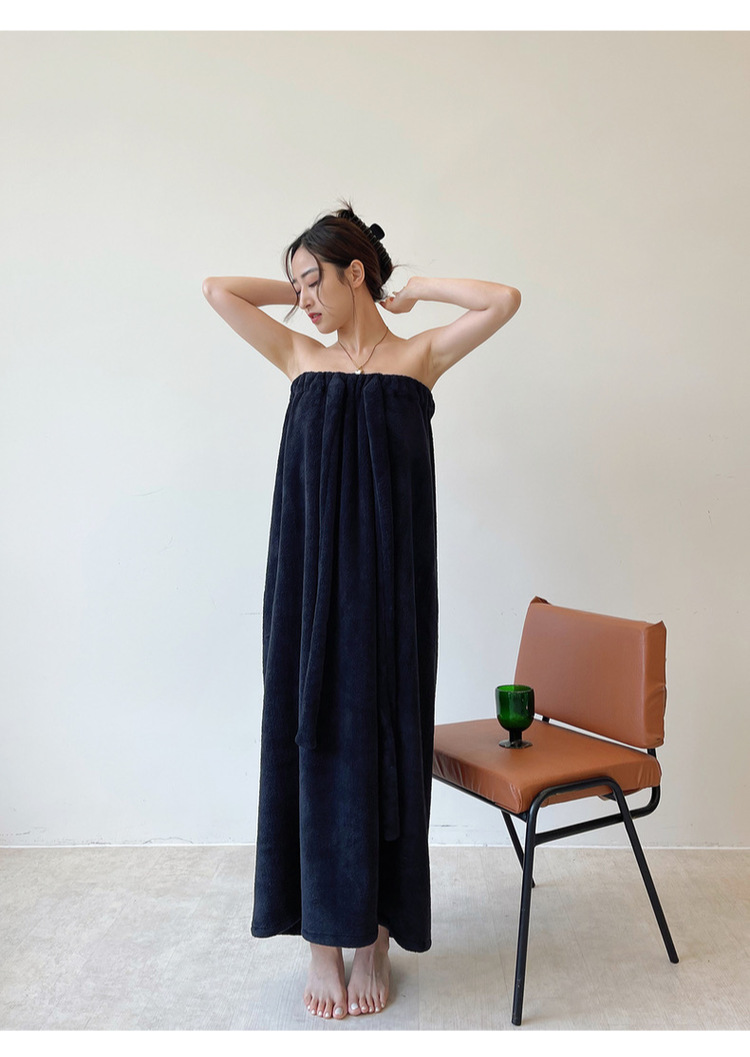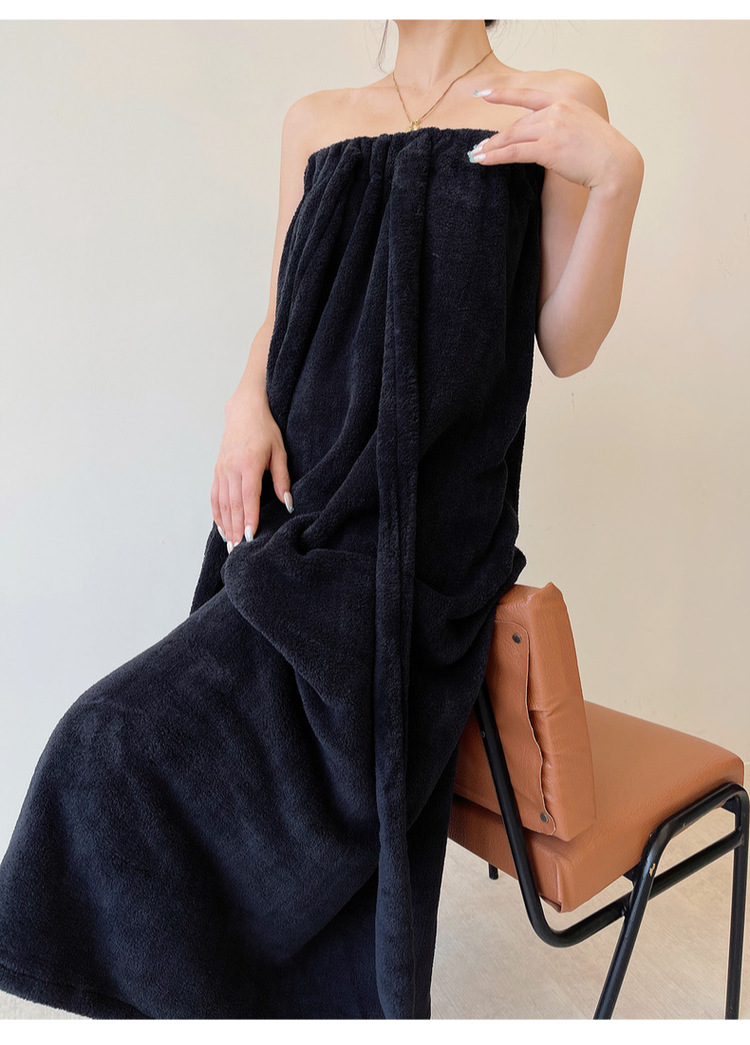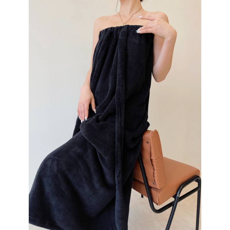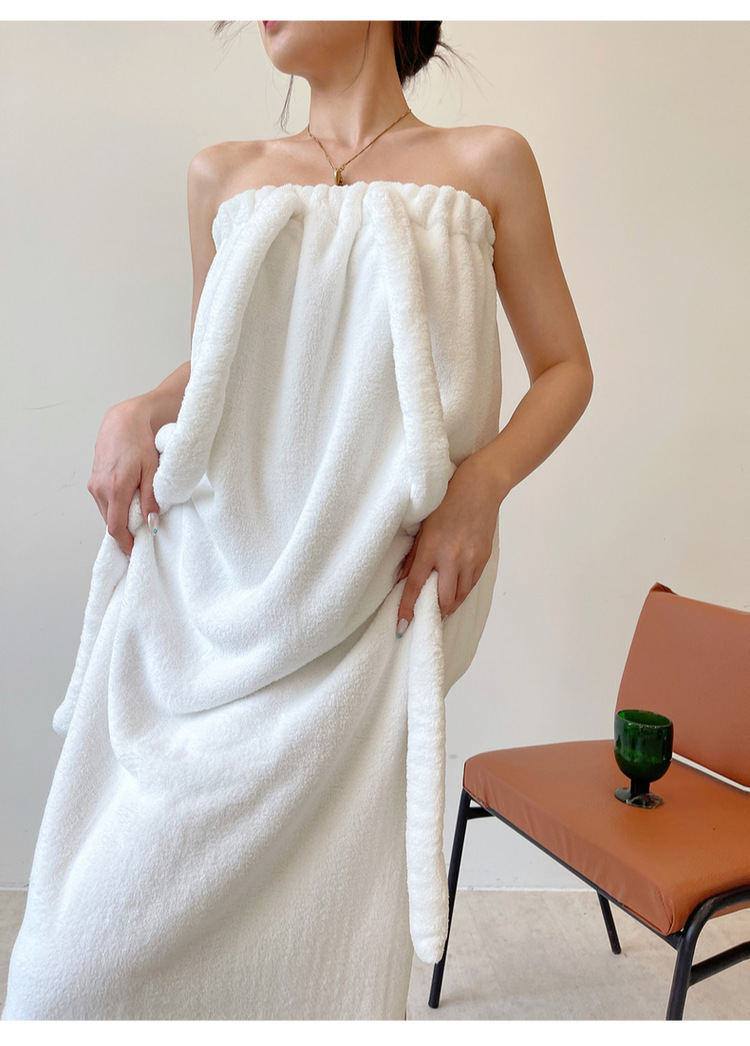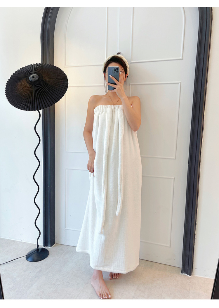 实拍2024新款浴袍女秋冬季加厚加绒吸水速干浴巾性感抹胸长款睡袍