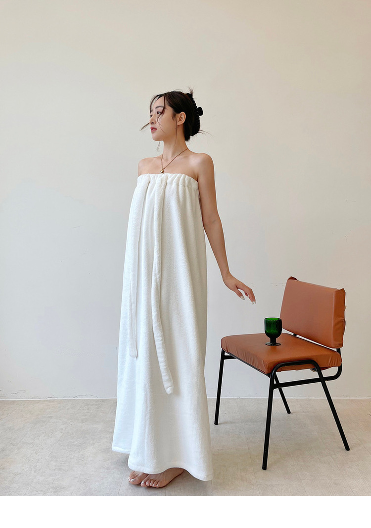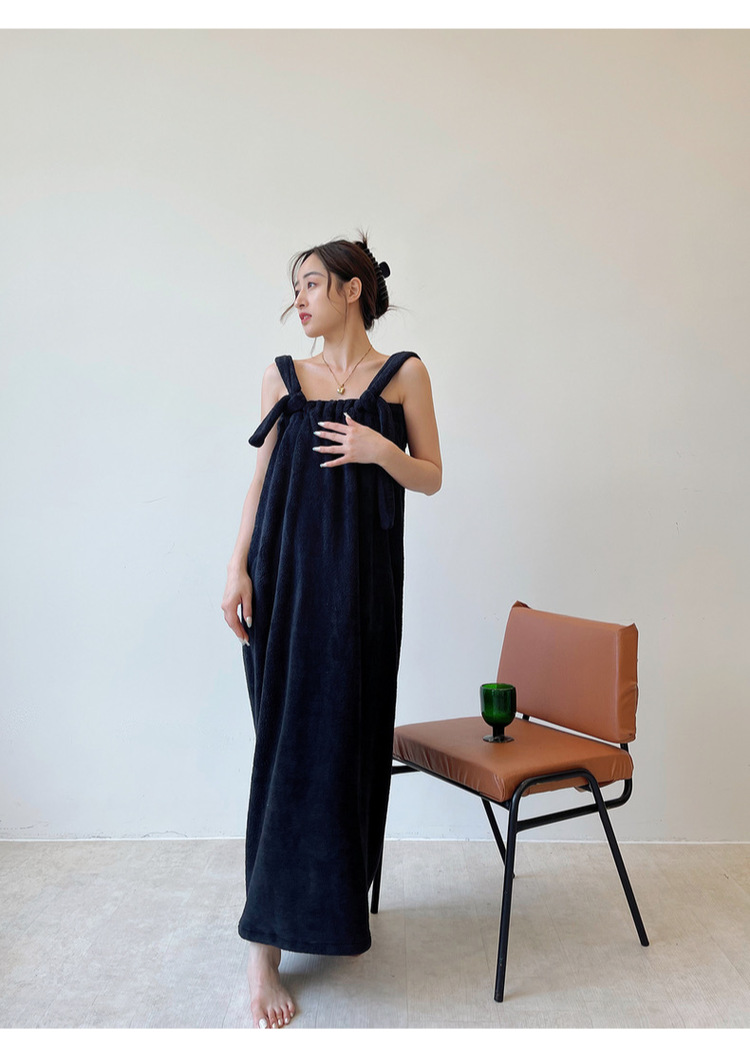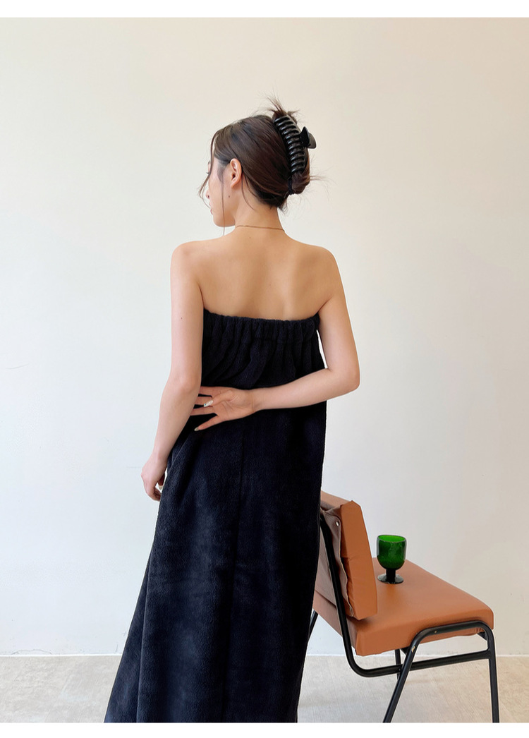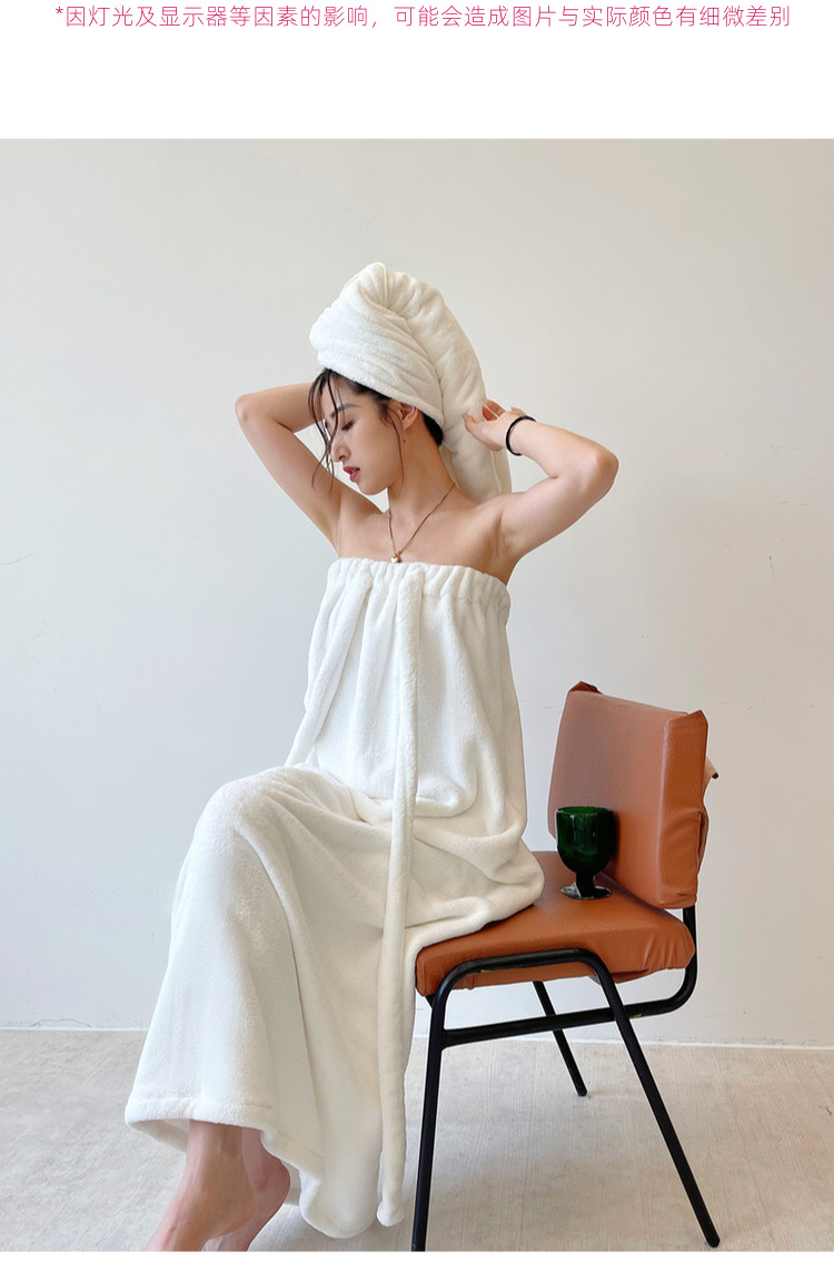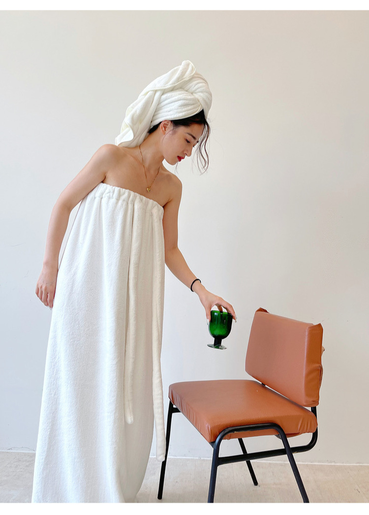 实拍2024新款浴袍女秋冬季加厚加绒吸水速干浴巾性感抹胸长款睡袍