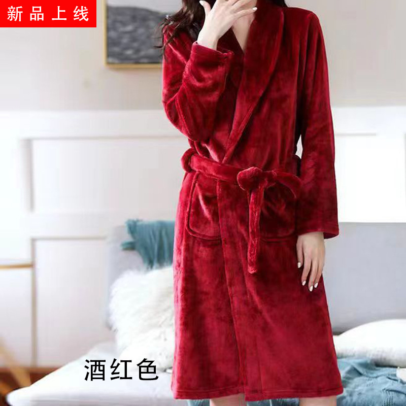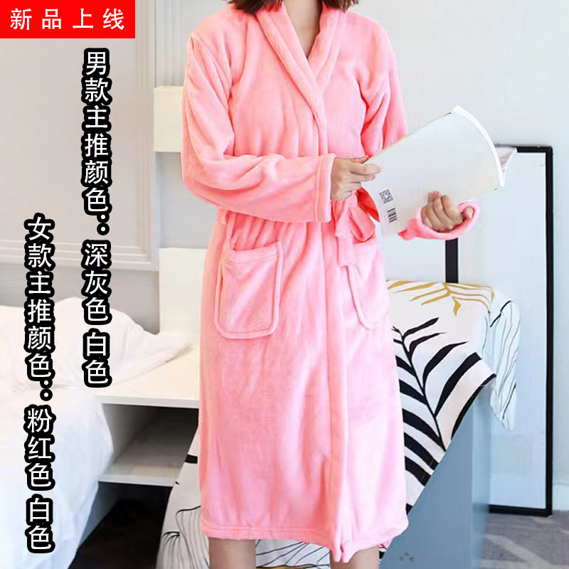 浴巾男女情侣同款冬季睡袍浴袍外出睡衣宽松珊瑚绒长款加绒加厚浴