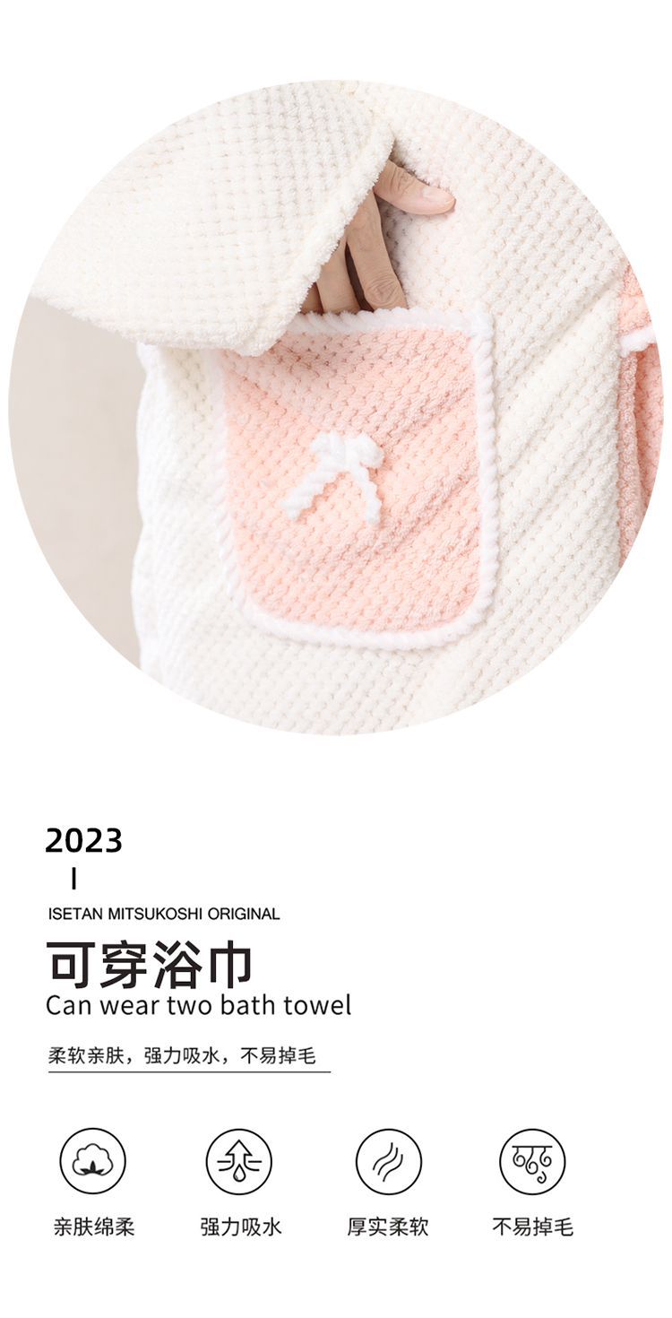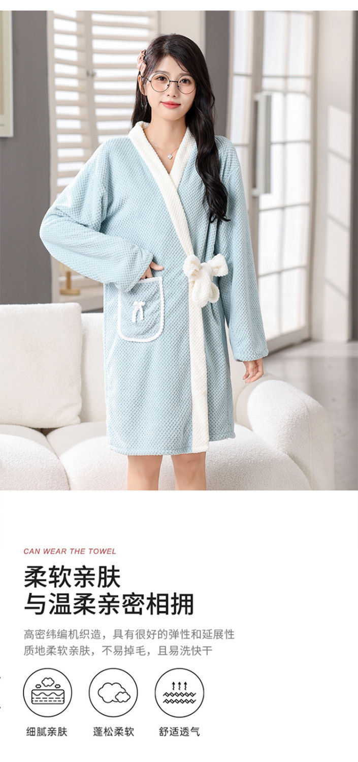 秋冬新款菠萝格浴袍长袖睡衣浴裙浴巾可穿吸水速干不掉毛成人男女