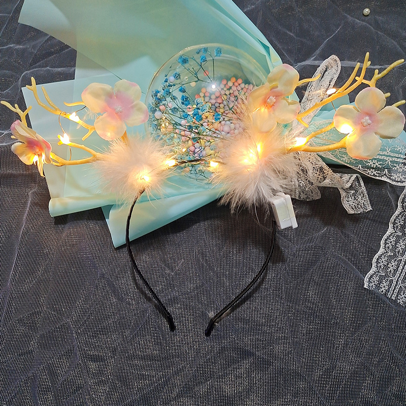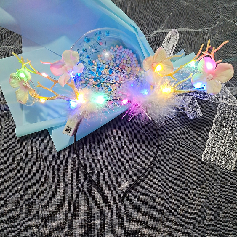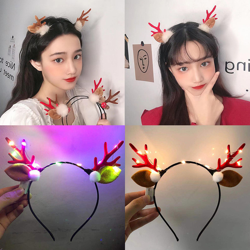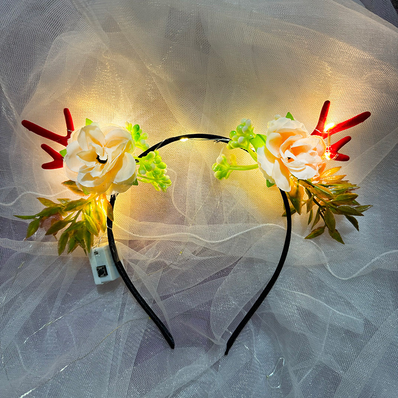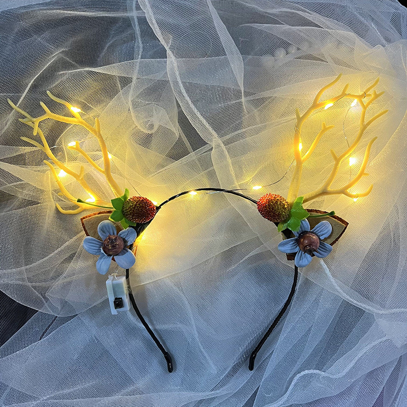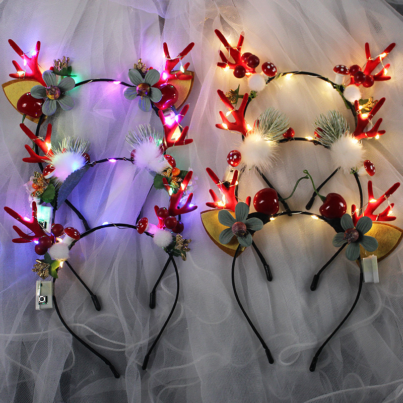 圣诞发光发箍发光鹿角头箍闪灯花仙子麋鹿头饰圣诞节带灯发饰批发