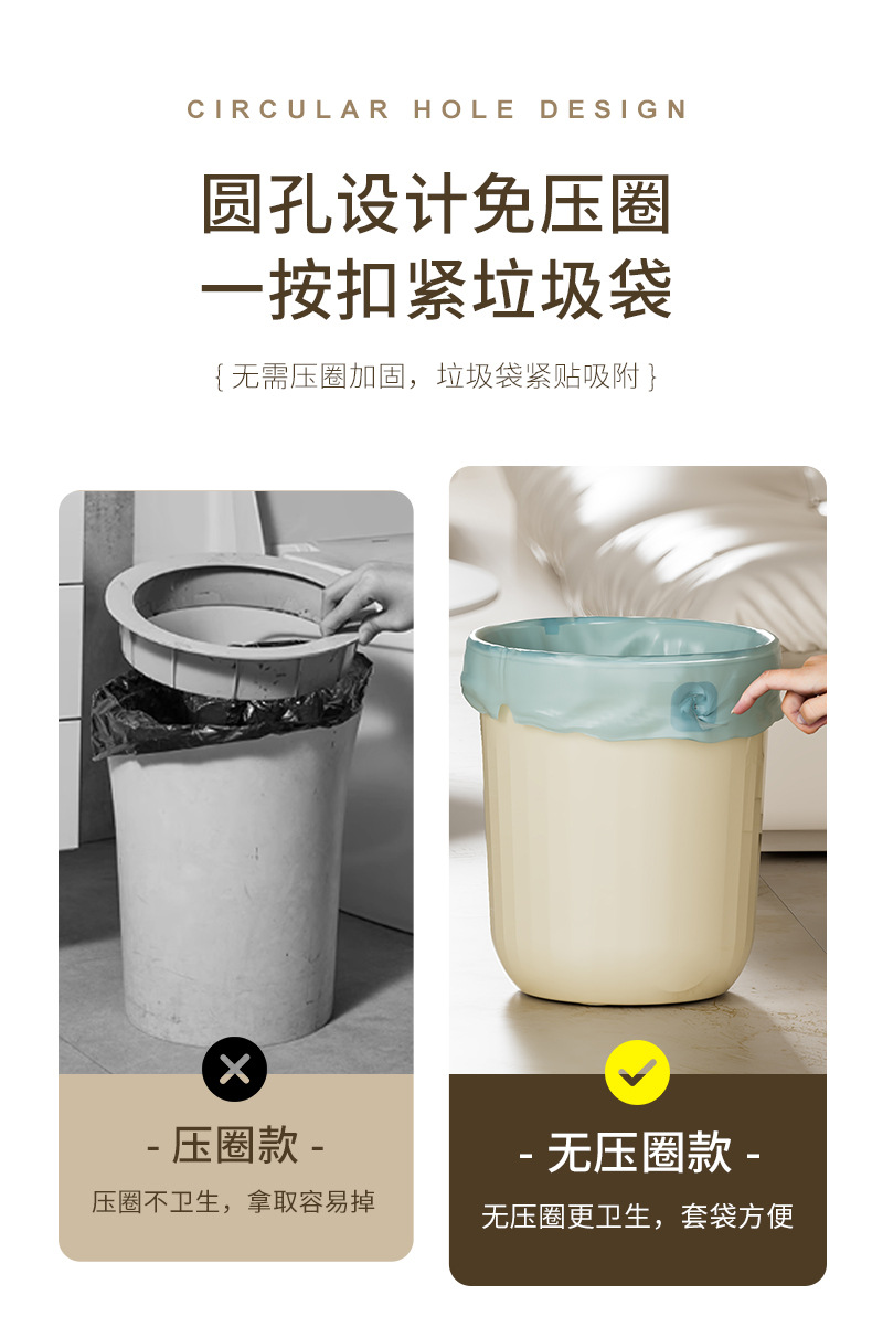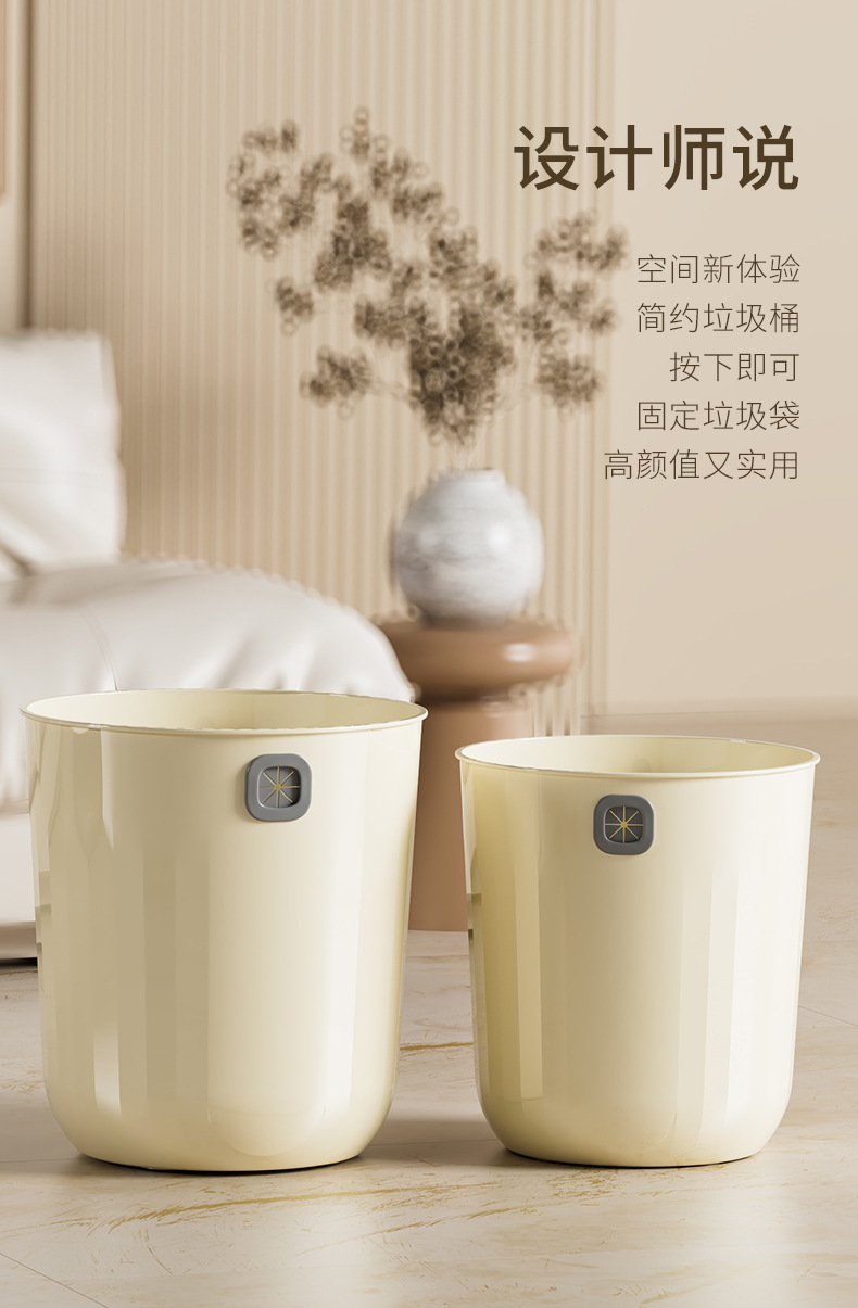 家用垃圾桶客厅厨房大容量免压圈加厚大号无盖ins奶油风垃圾篓