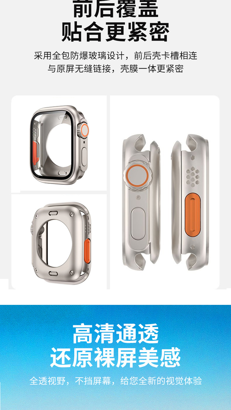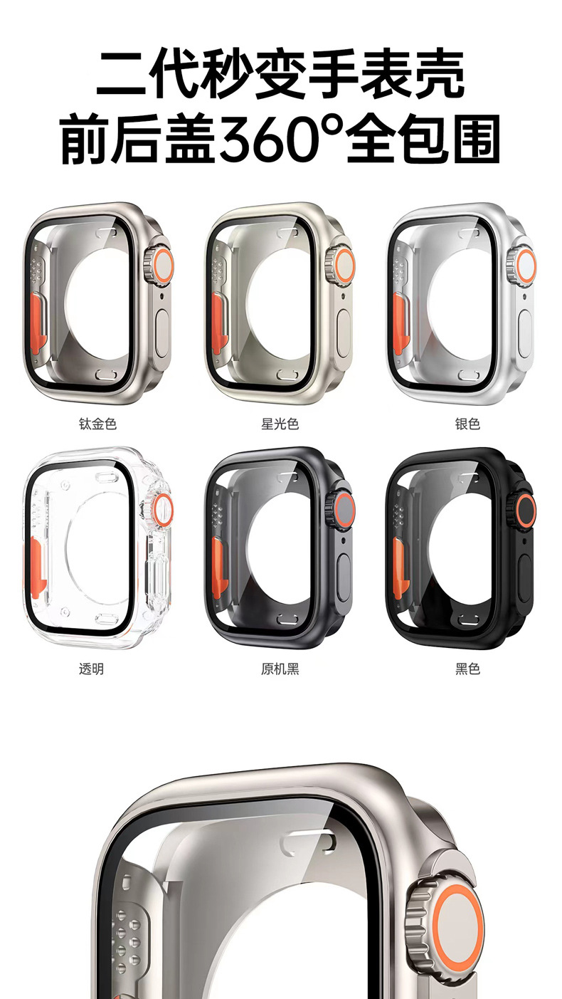 适用苹果iwatch s9全包保护壳S8壳膜一体改装秒变ultra360手表壳