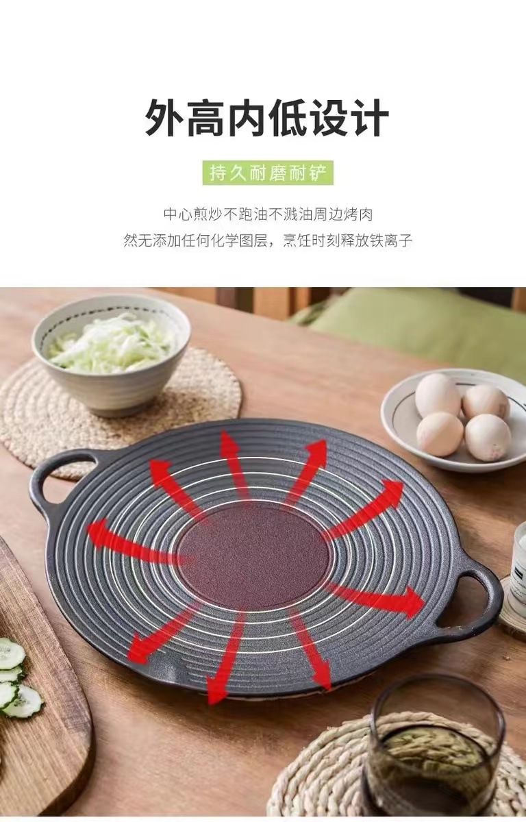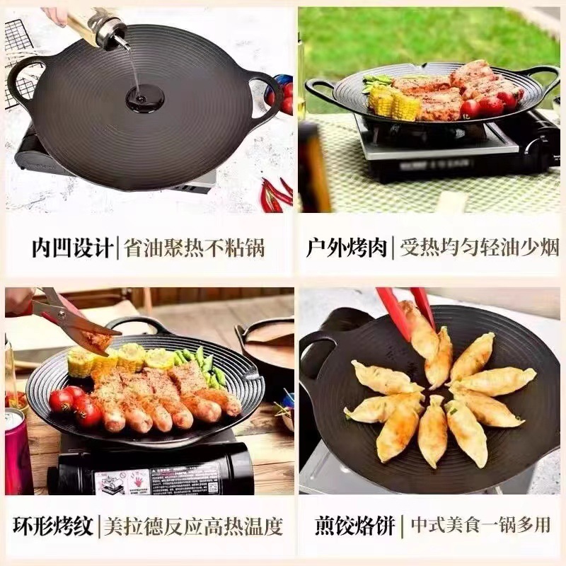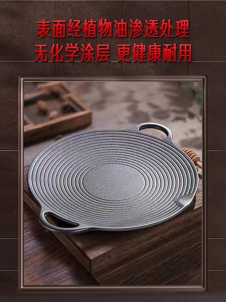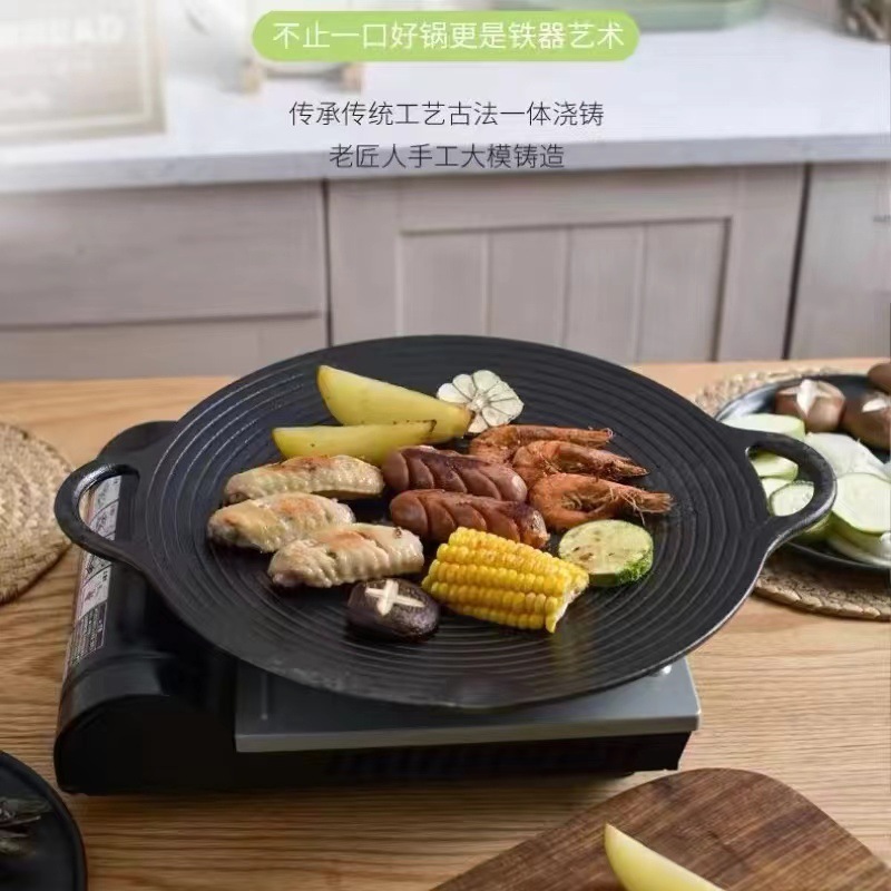 铸铁锅户外烤盘烧烤盘家用商用无涂层韩式烤盘铁板烧烤肉锅无涂层