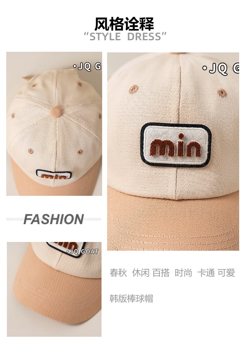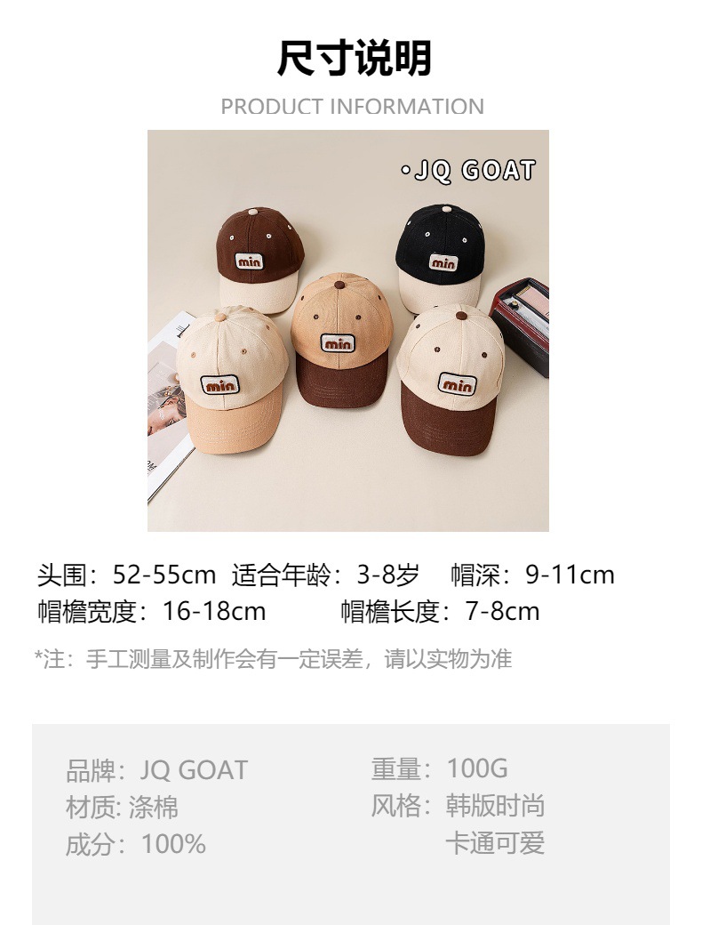 JQ GOAT儿童春秋撞色棒球帽宝宝韩版时尚ins弯檐帅气字母鸭舌帽