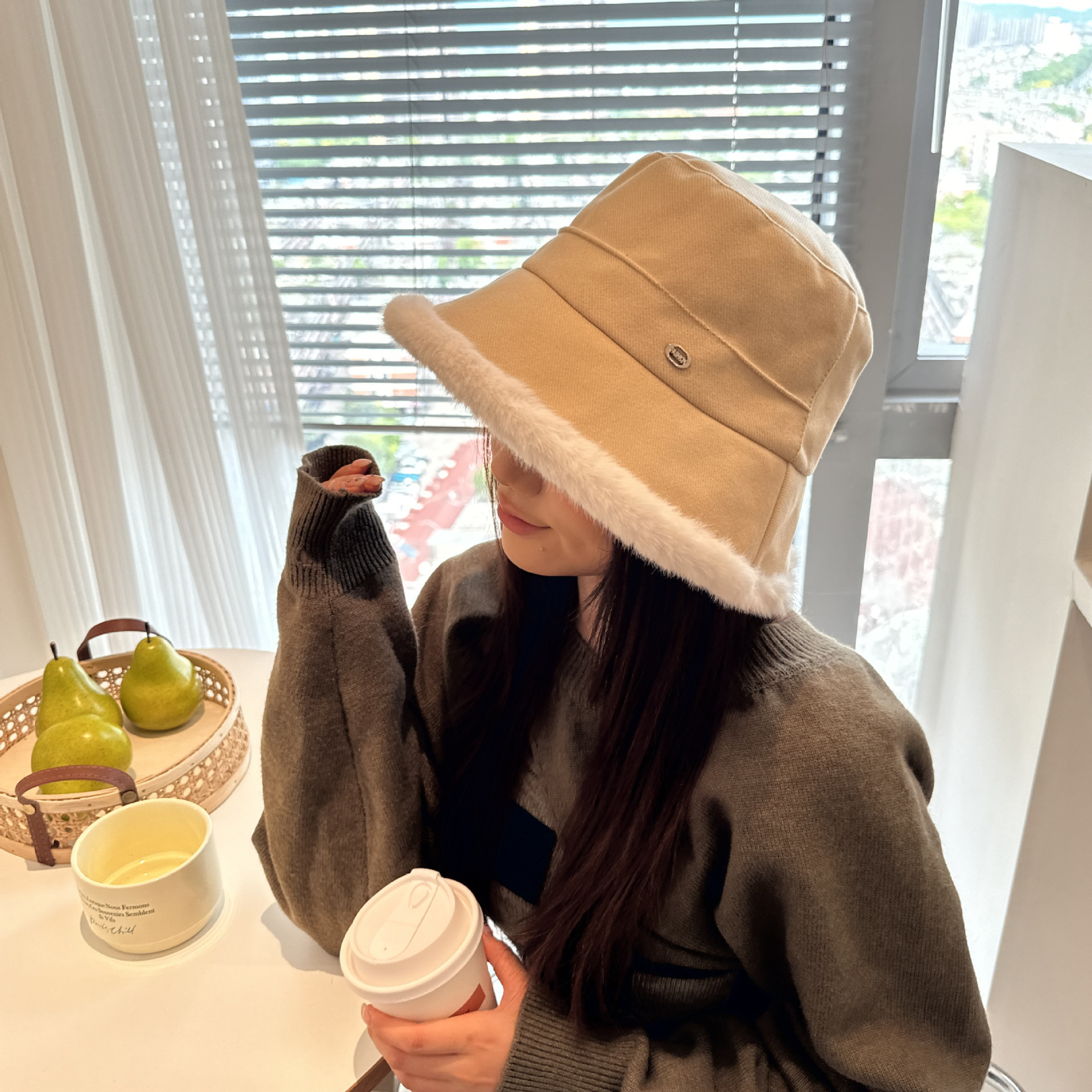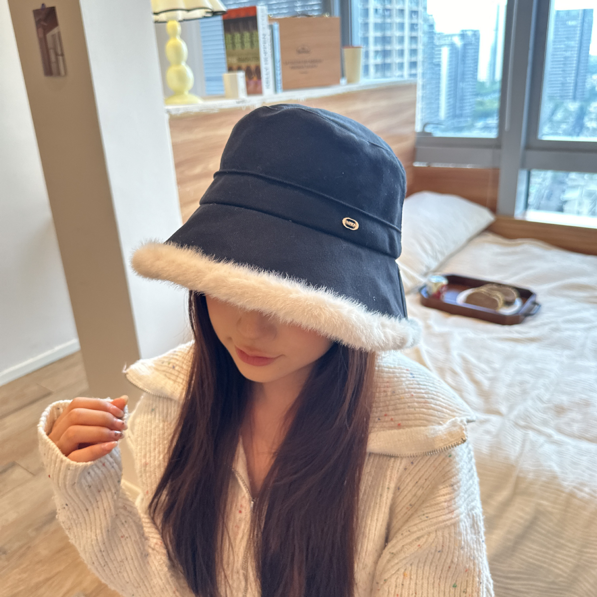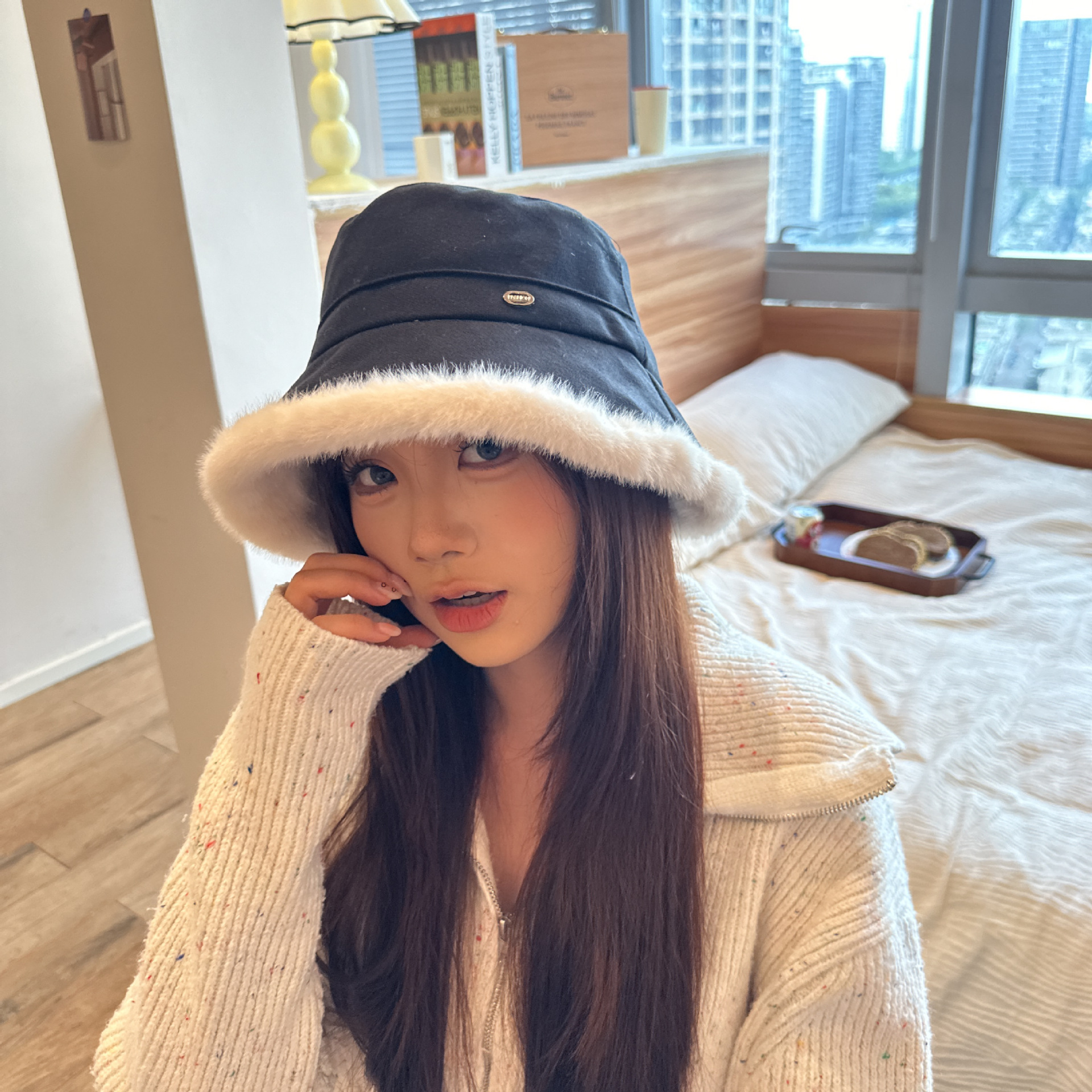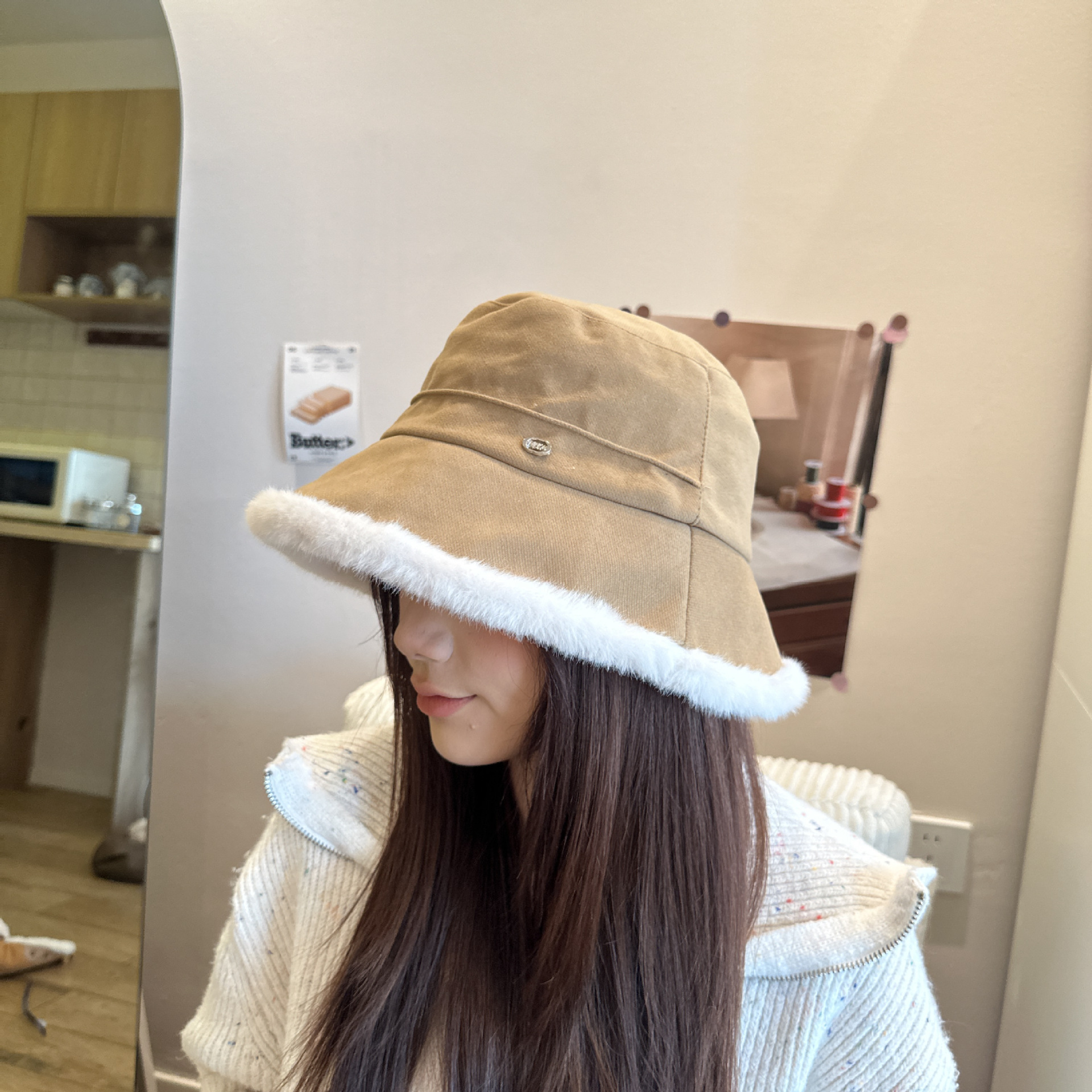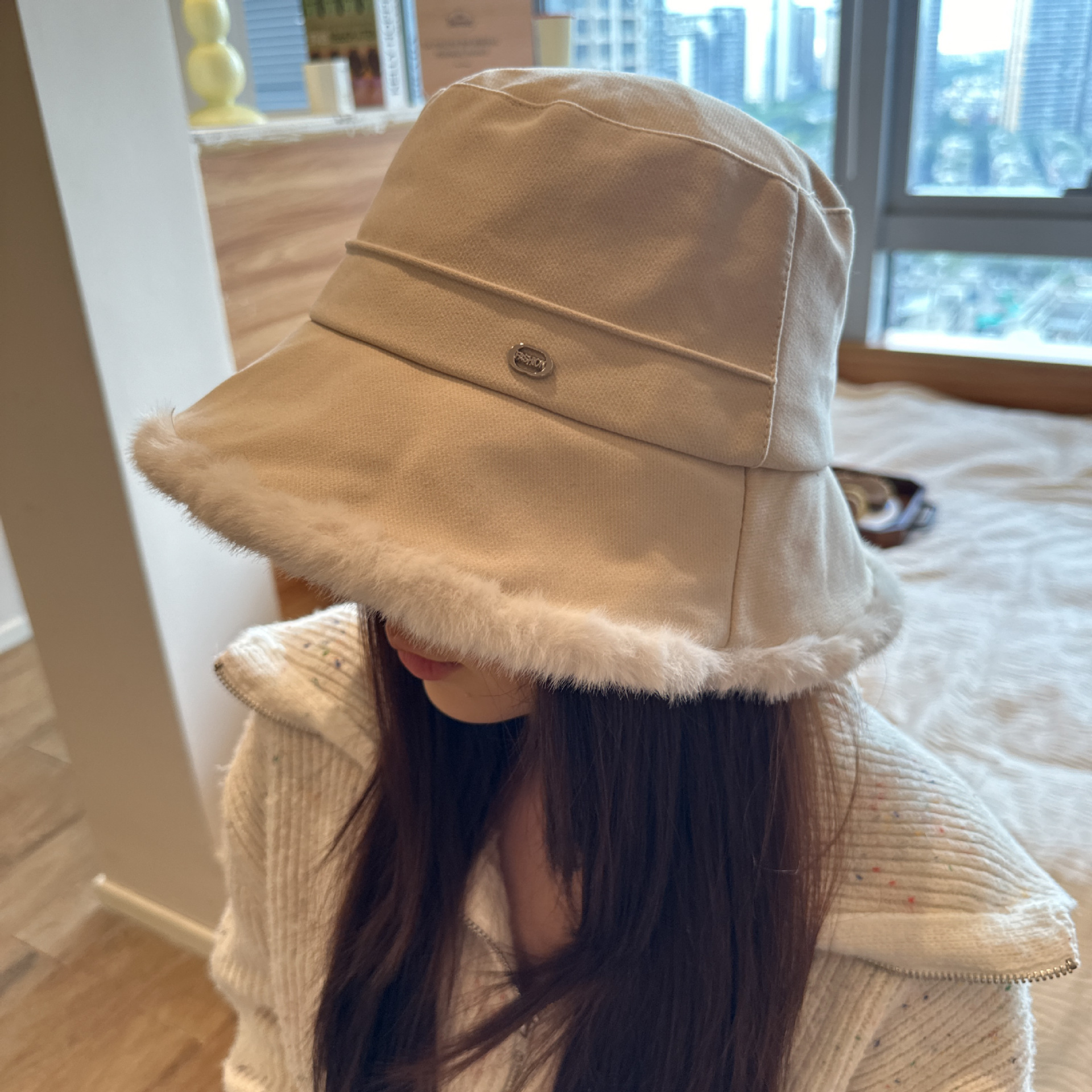 韩版毛绒渔夫帽女 秋冬季百搭高级感保暖加绒帽加厚防寒护耳盆帽