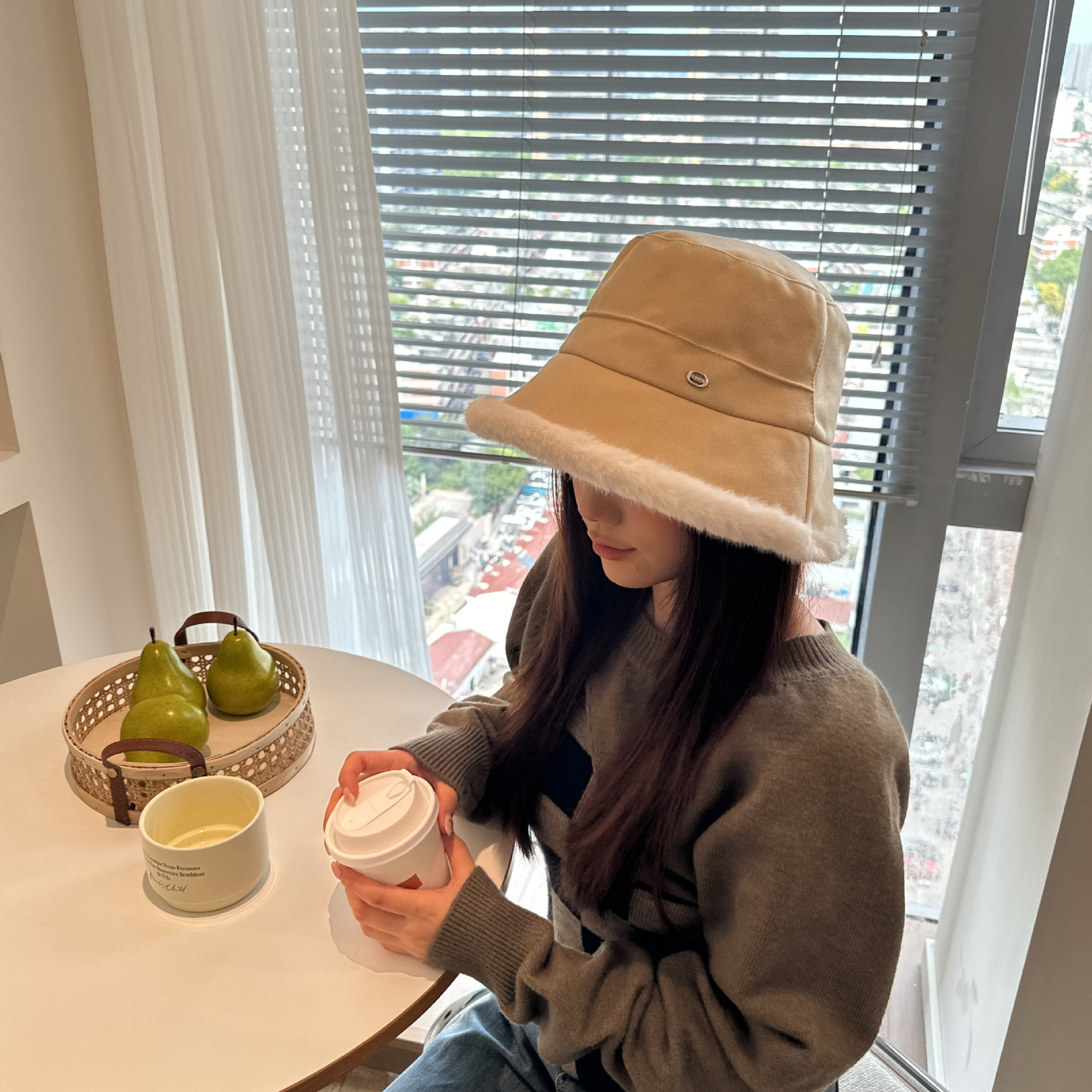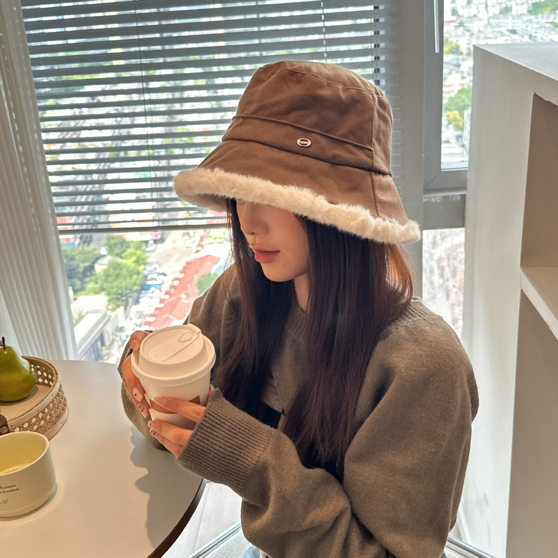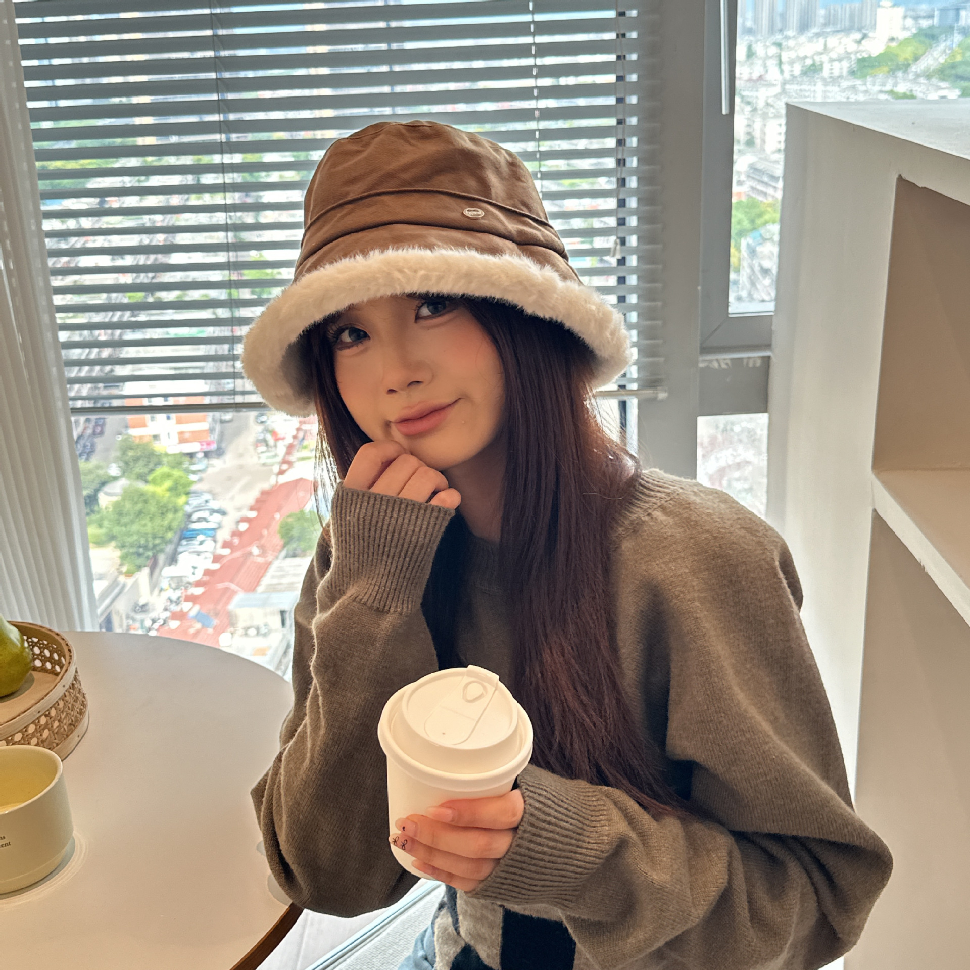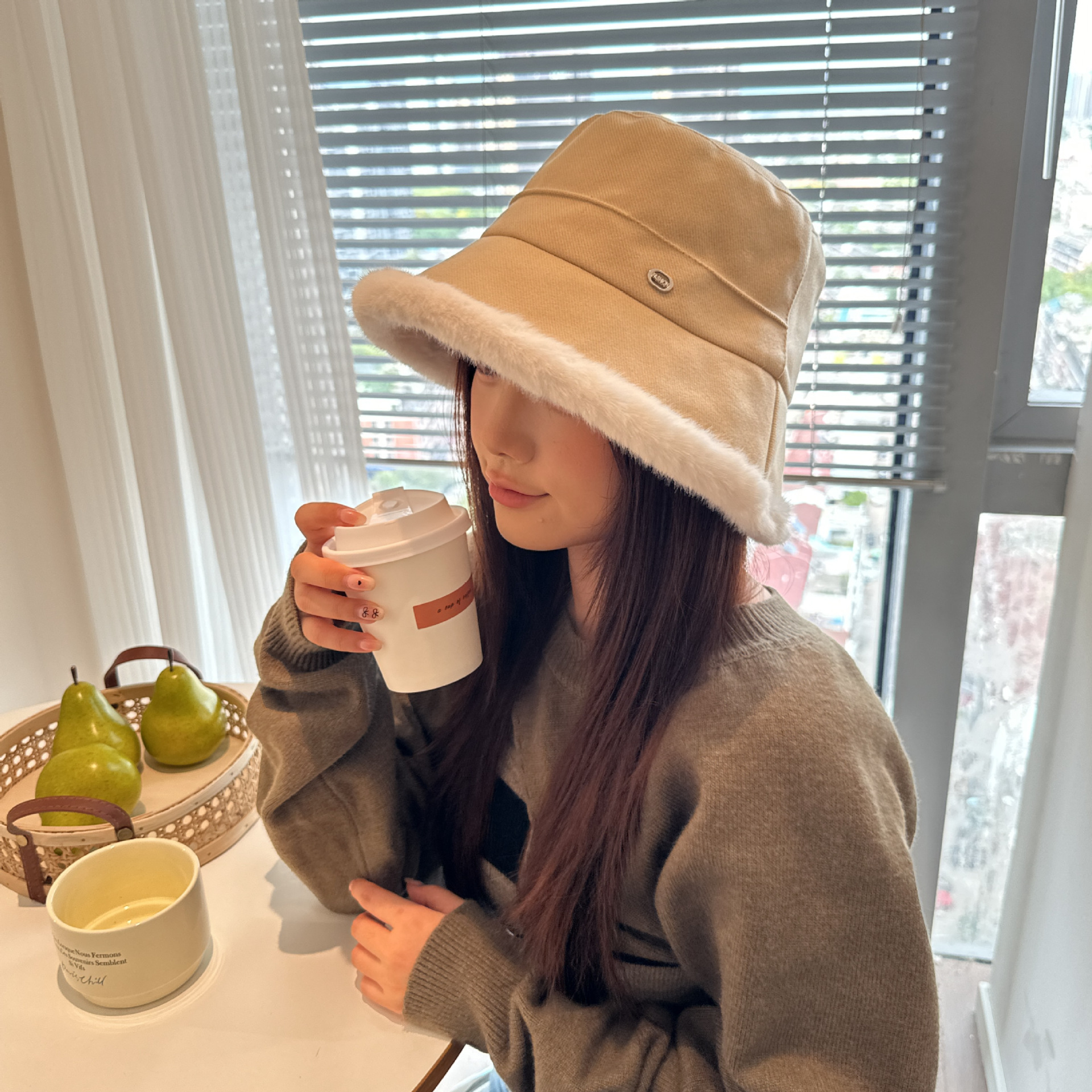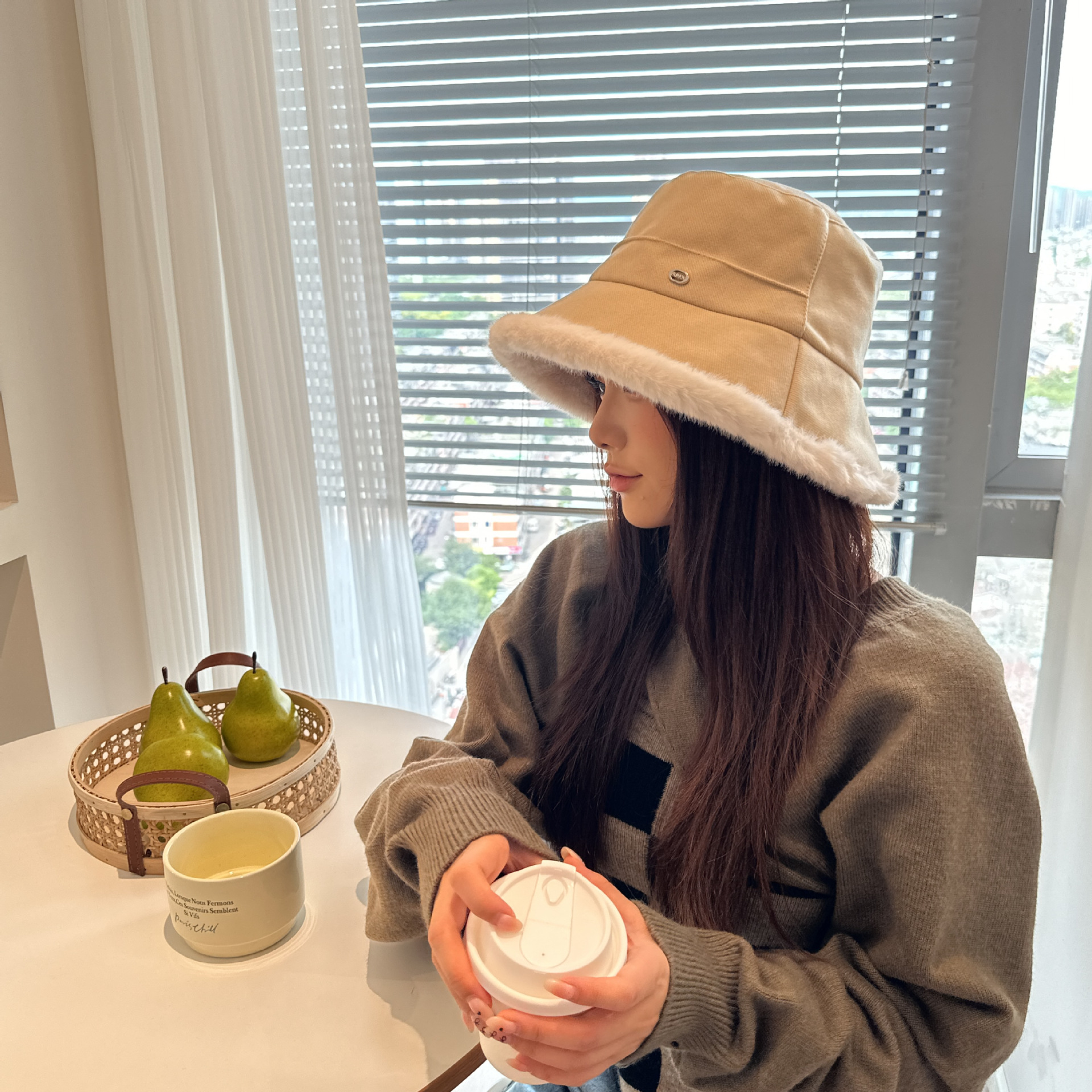韩版毛绒渔夫帽女 秋冬季百搭高级感保暖加绒帽加厚防寒护耳盆帽