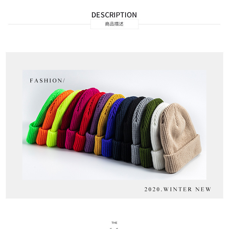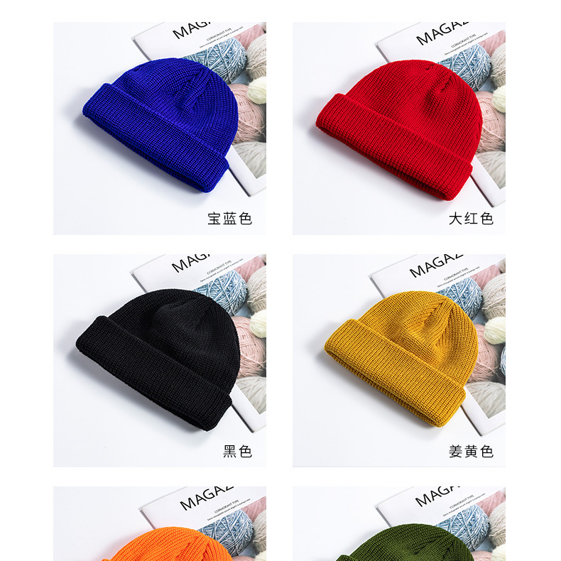 秋冬时尚毛线帽百搭男女学生瓜皮帽双层保暖户外防风毛线帽针织帽
