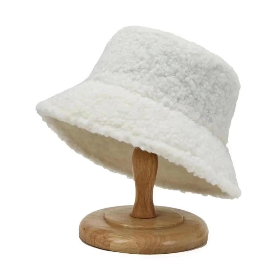 秋冬韩版羊羔毛保暖百搭渔夫帽 日系新款冬季户外保暖羊羔绒盆帽
