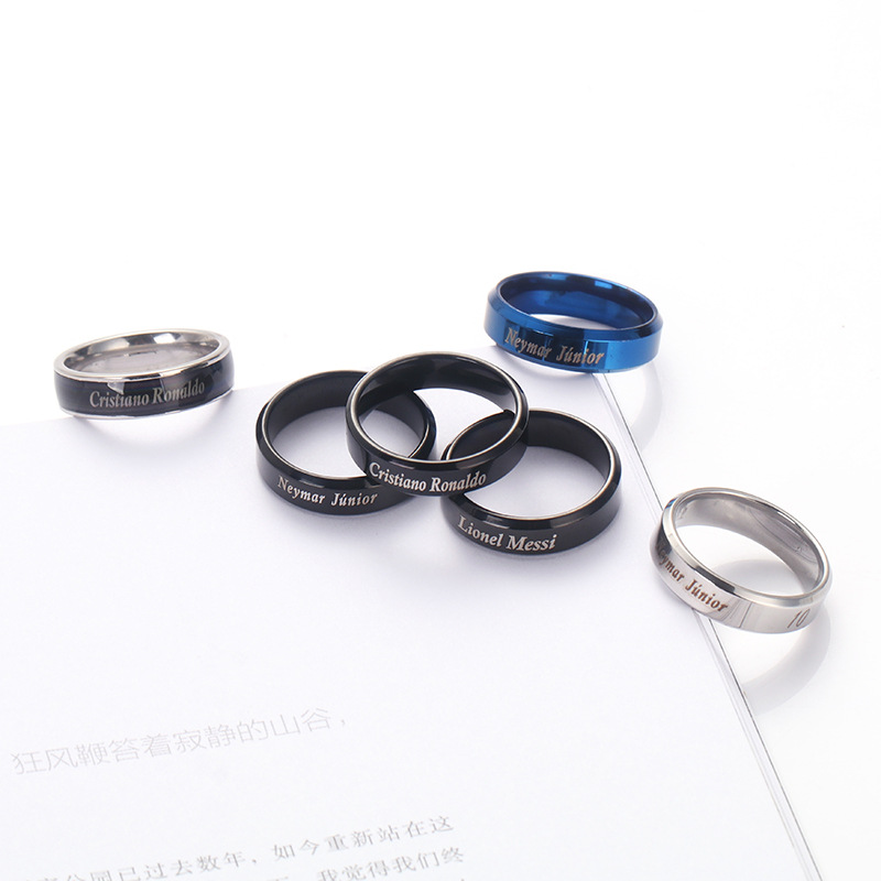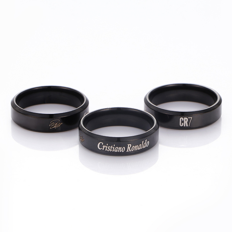 定刻字不锈钢戒指 梅西C罗内马尔钛钢项链足球球迷用品一件代发