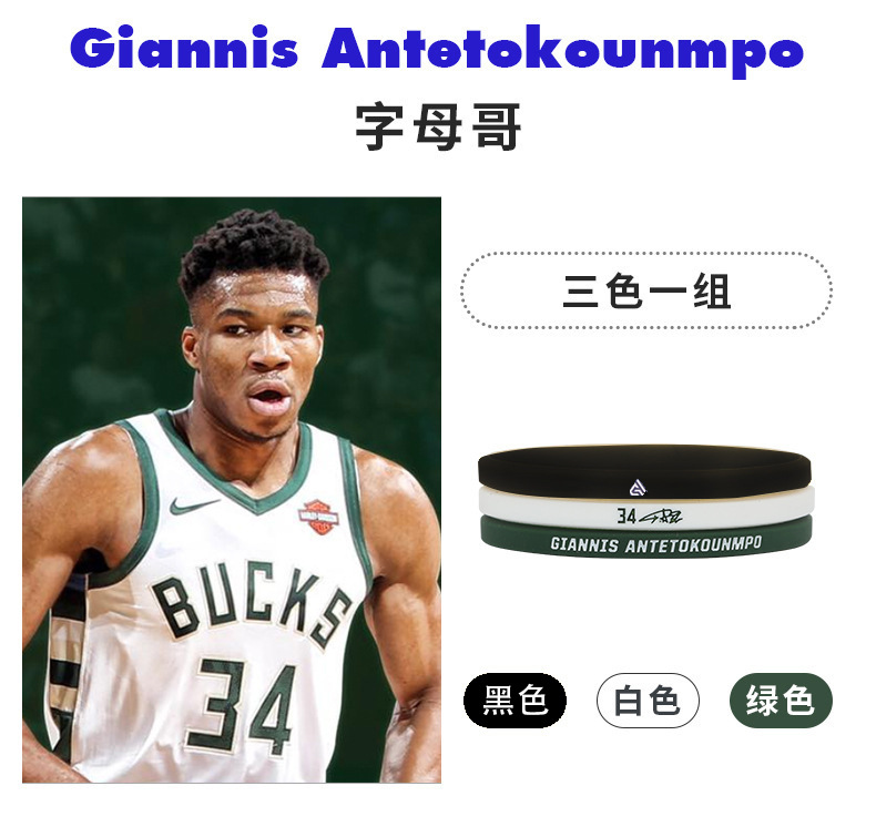 球星签名细款硅胶手环科比詹姆斯库里欧文哈登杜兰特篮球手环套装